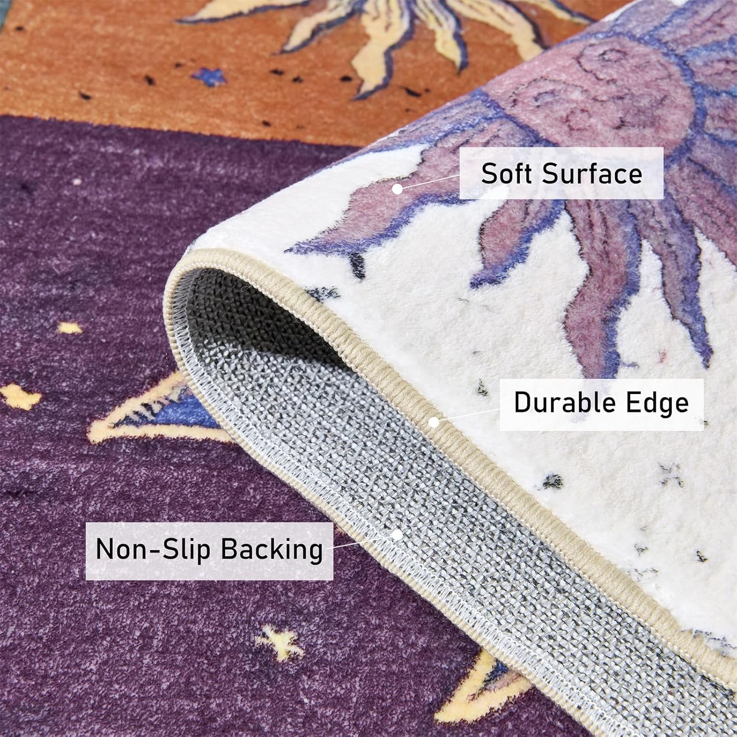 Alfombra de lana sintética de pelo bajo: cuenta con una superficie de alfombra de 0.1 (aprox. 0.3 cm). La alfombra caprichosa de Ouyattle es duradera, suave al tacto, cálida y hermosa, tiene una fuerte dureza, no se desprende, no se decolora y no tiene olor, creando un área acogedora para niños y tu familia