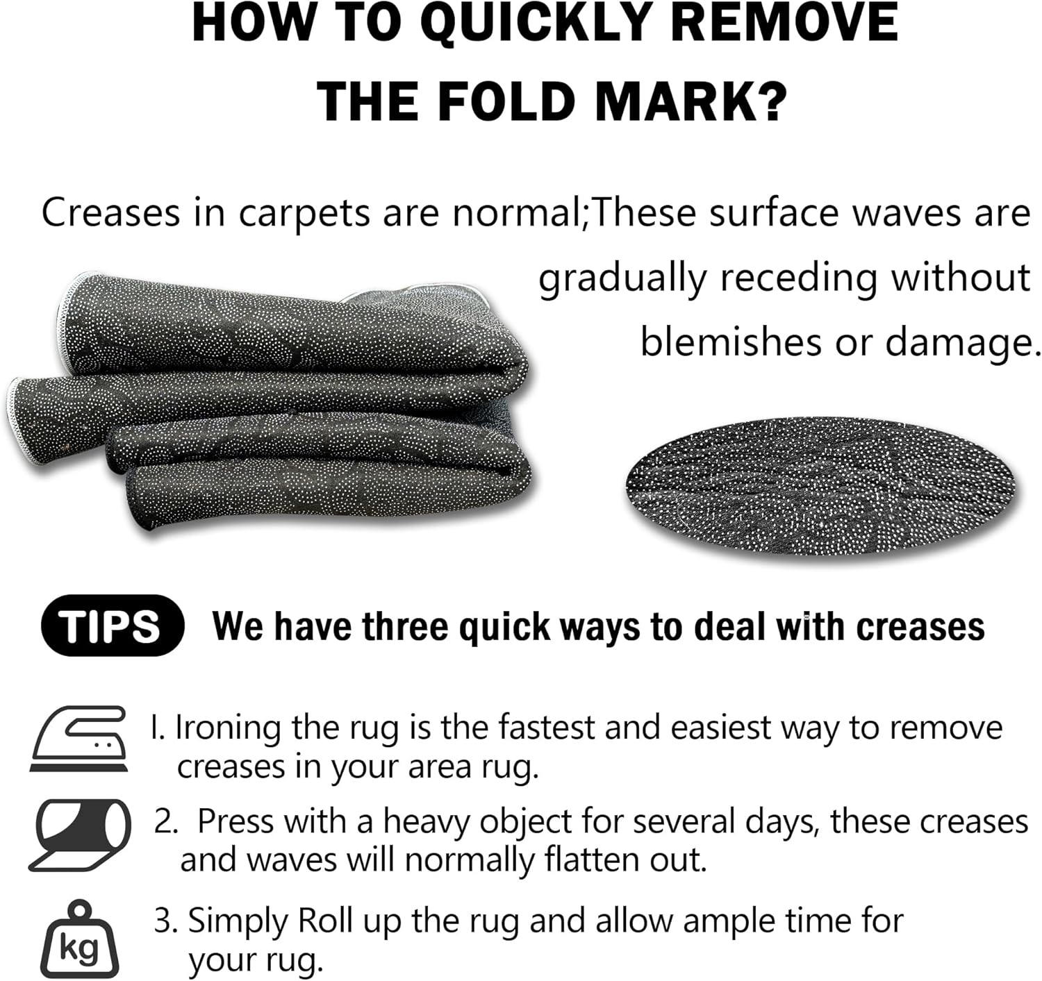 Atención especial: las alfombras Art son plegables. La alfombra puede tener un poco de arrugas y marcas cuando se desenrolla. Puedes usar una plancha para aplanarla rápidamente.