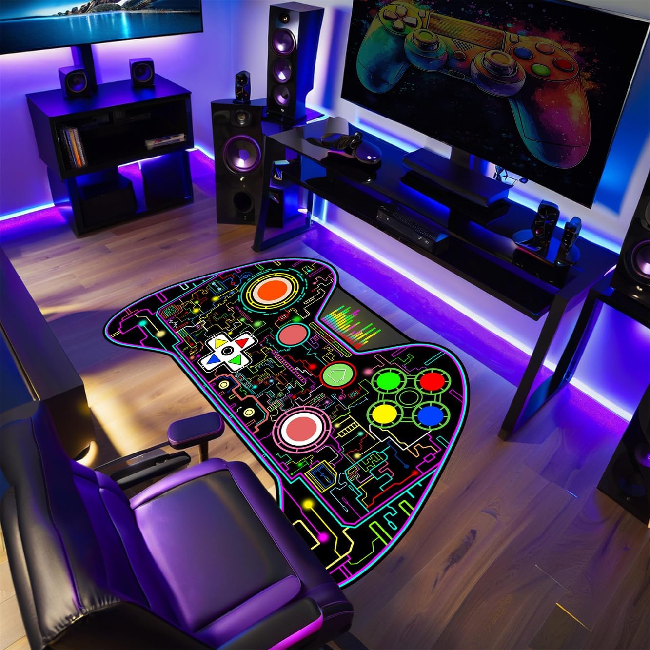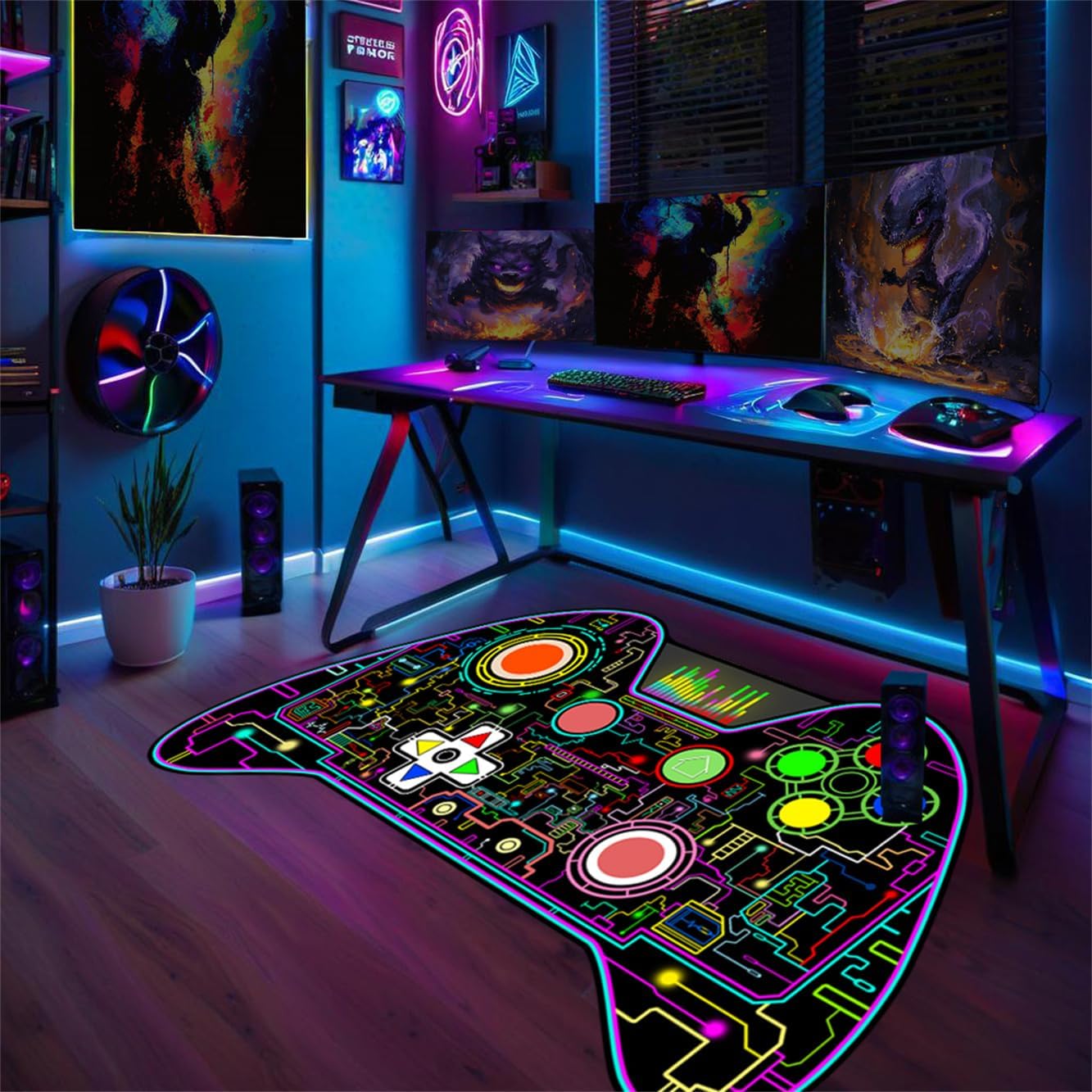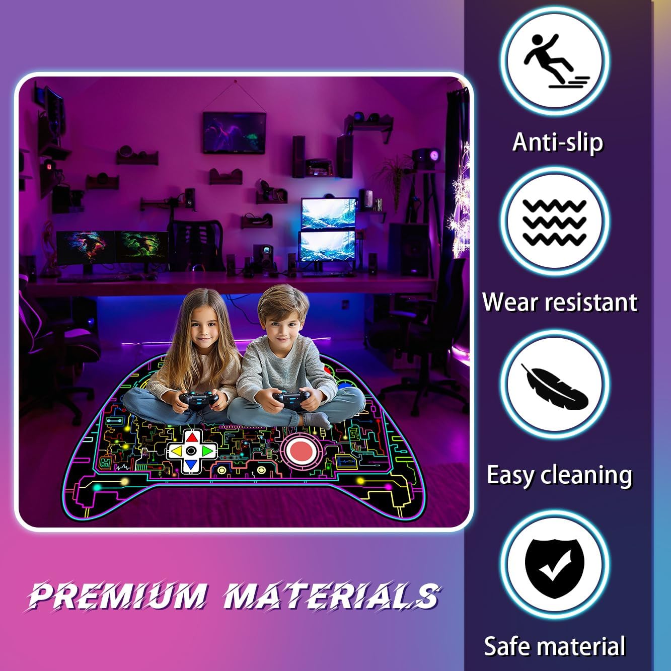 Diseño de patrón: esta alfombra con forma de gamepad cuenta con un patrón de gamepad que los niños aman, con colores brillantes y coloridos.