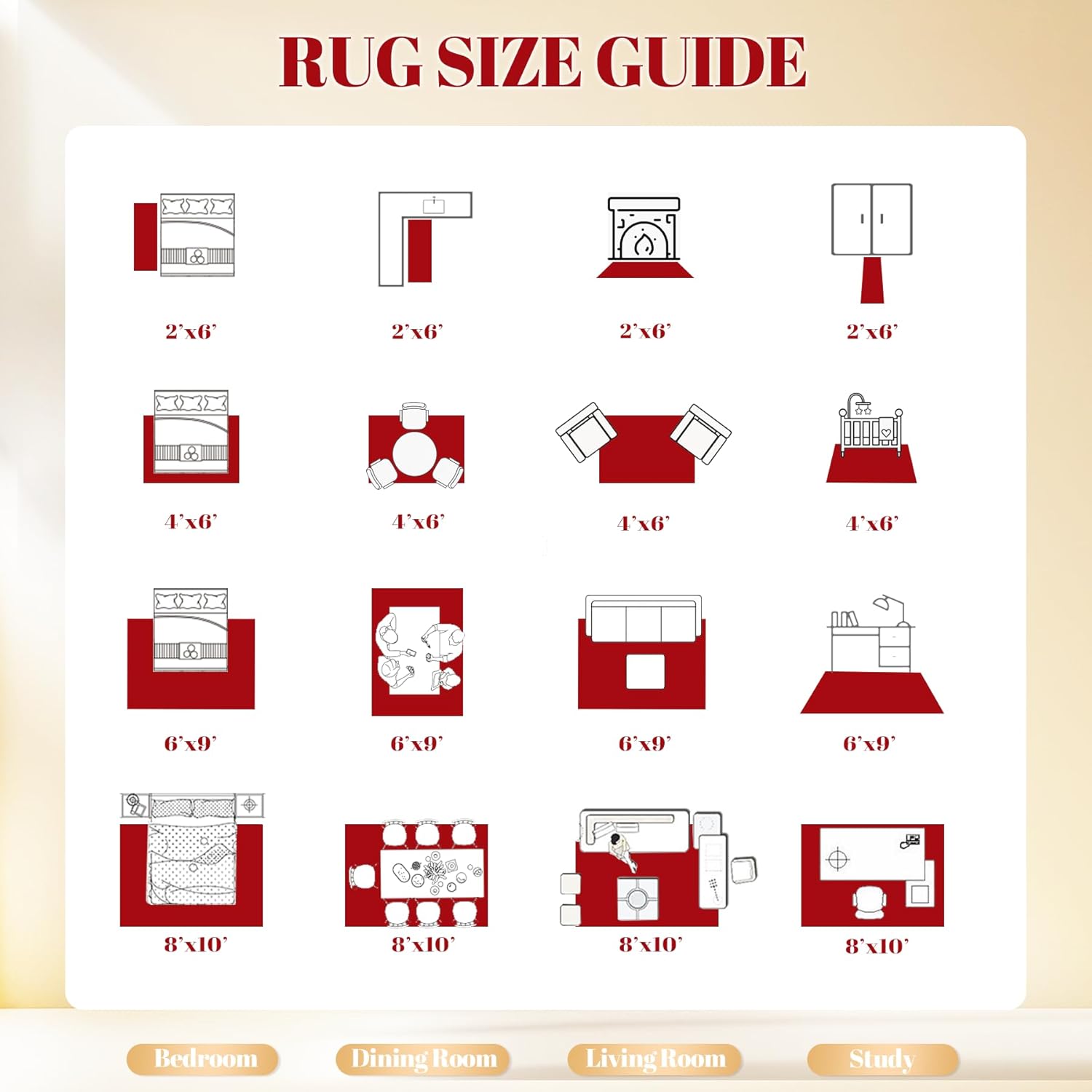 Parte trasera de alfombra antideslizante: la parte inferior de la alfombra para dormitorio de 4 x 6 (aprox. 182.9 cm) tiene goma de elastómero termoplástico (TPE) antideslizante, que puede mantener la alfombra en su lugar y es muy segura para los ancianos y los niños en casa; no tendrás que preocuparte por caídas o por tener que poner constantemente la alfombra en su lugar después de una fiesta.