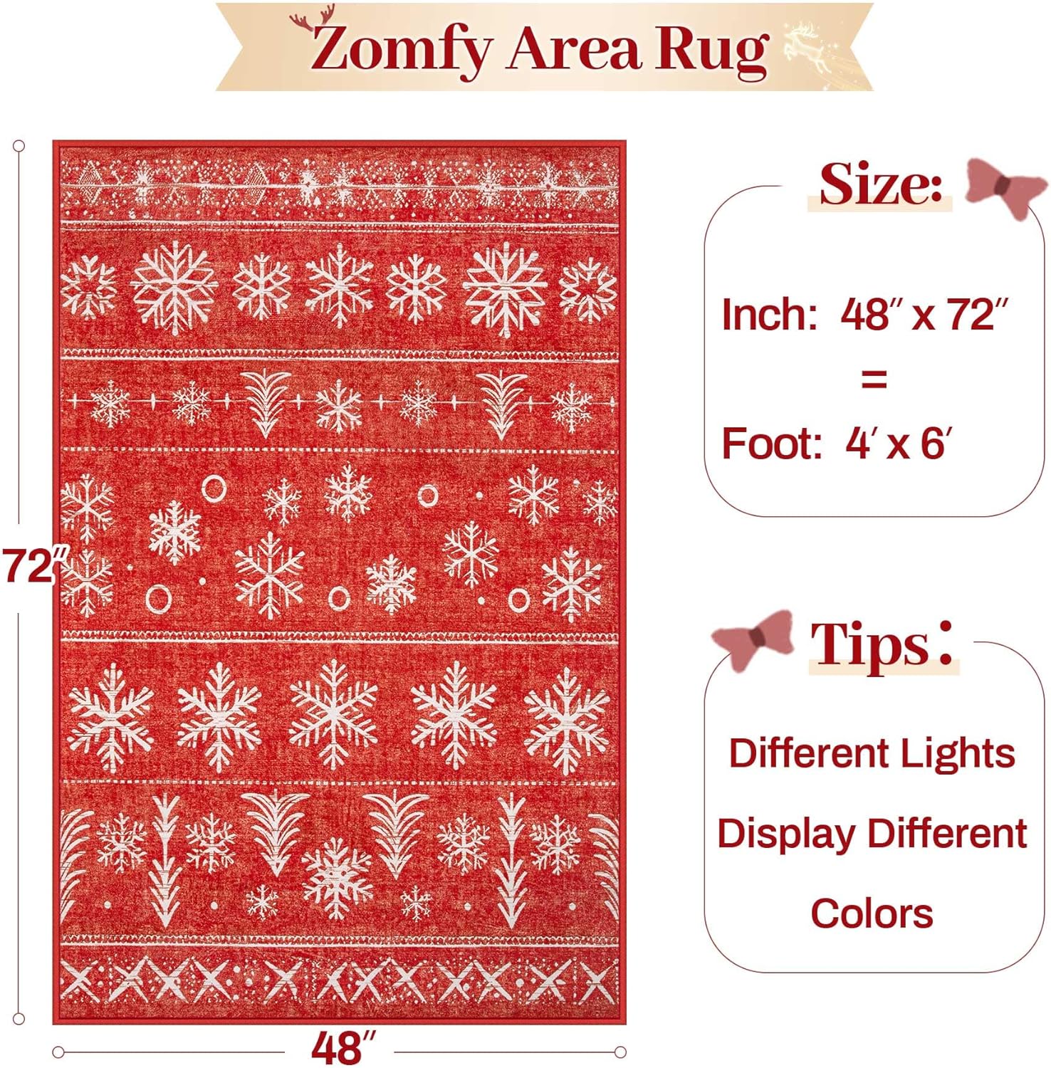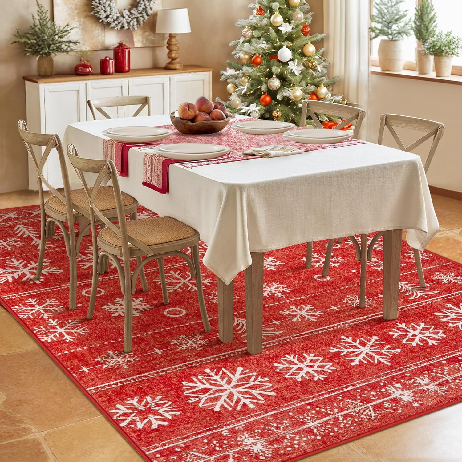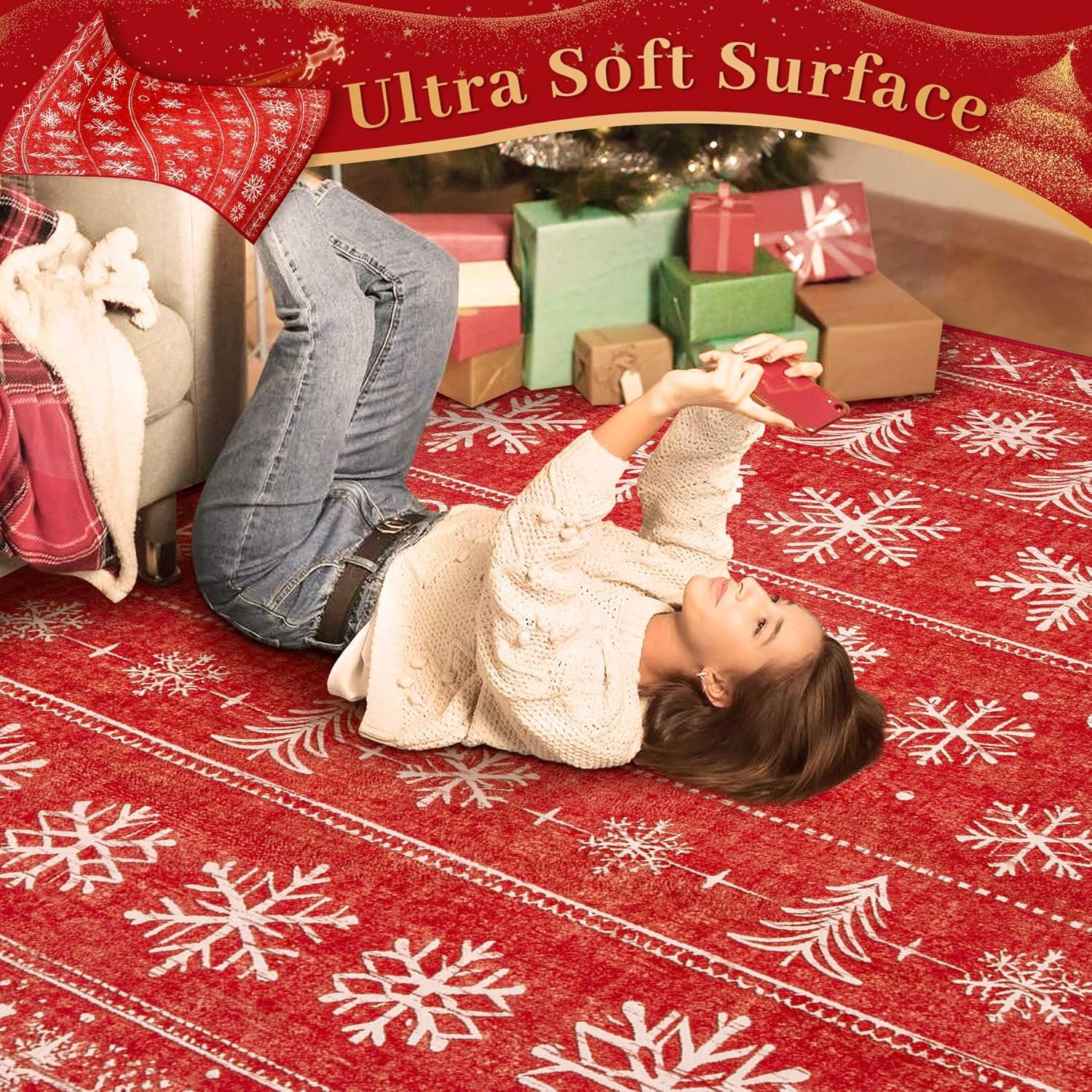 Alfombra de área navideña y a la moda: especialmente diseñada en un clásico color rojo de Navidad con patrón de copo de nieve y árbol de Navidad, para proporcionarte un sabor de cálida decoración del hogar, esta alfombra de Navidad es adecuada para sala de estar, dormitorio, cocina, comedor, estudio, habitación de los niños, baño y otros lugares que necesites.