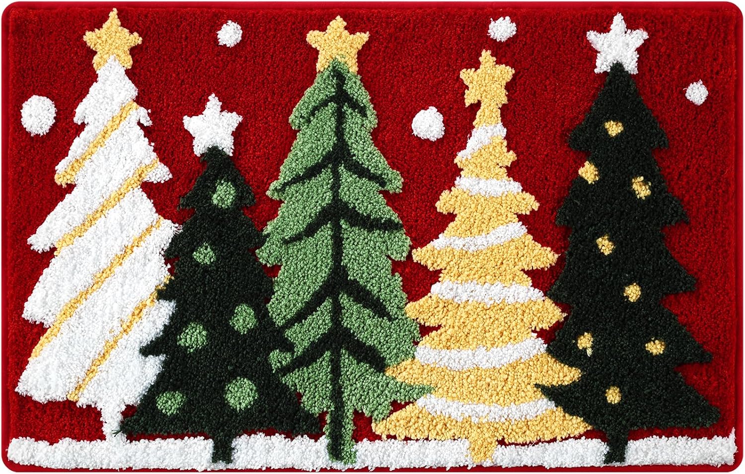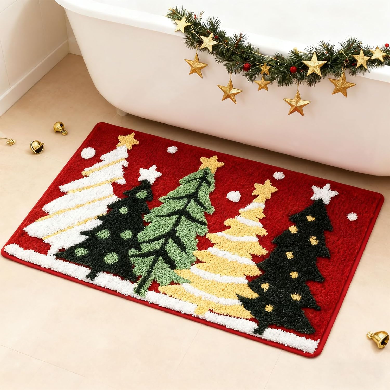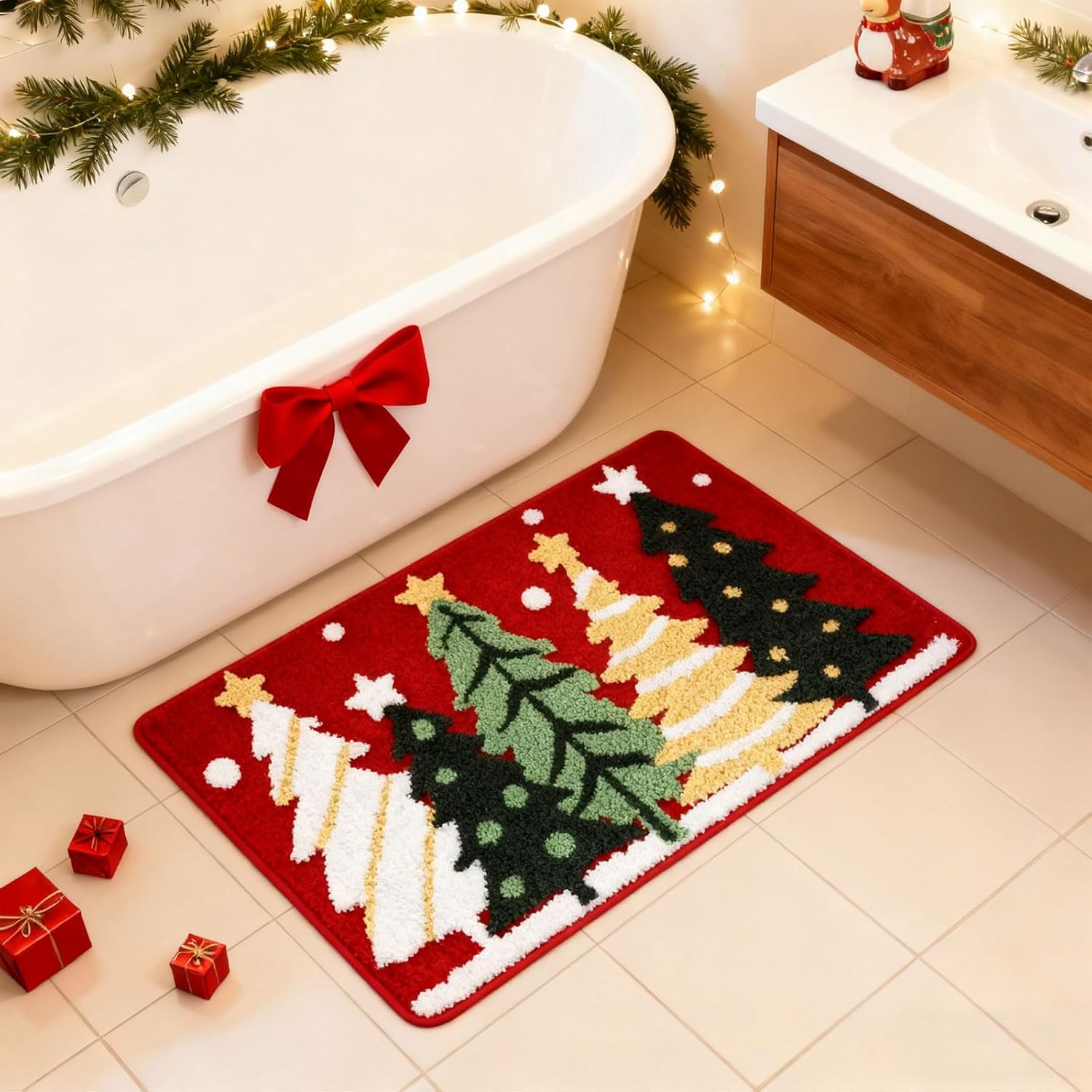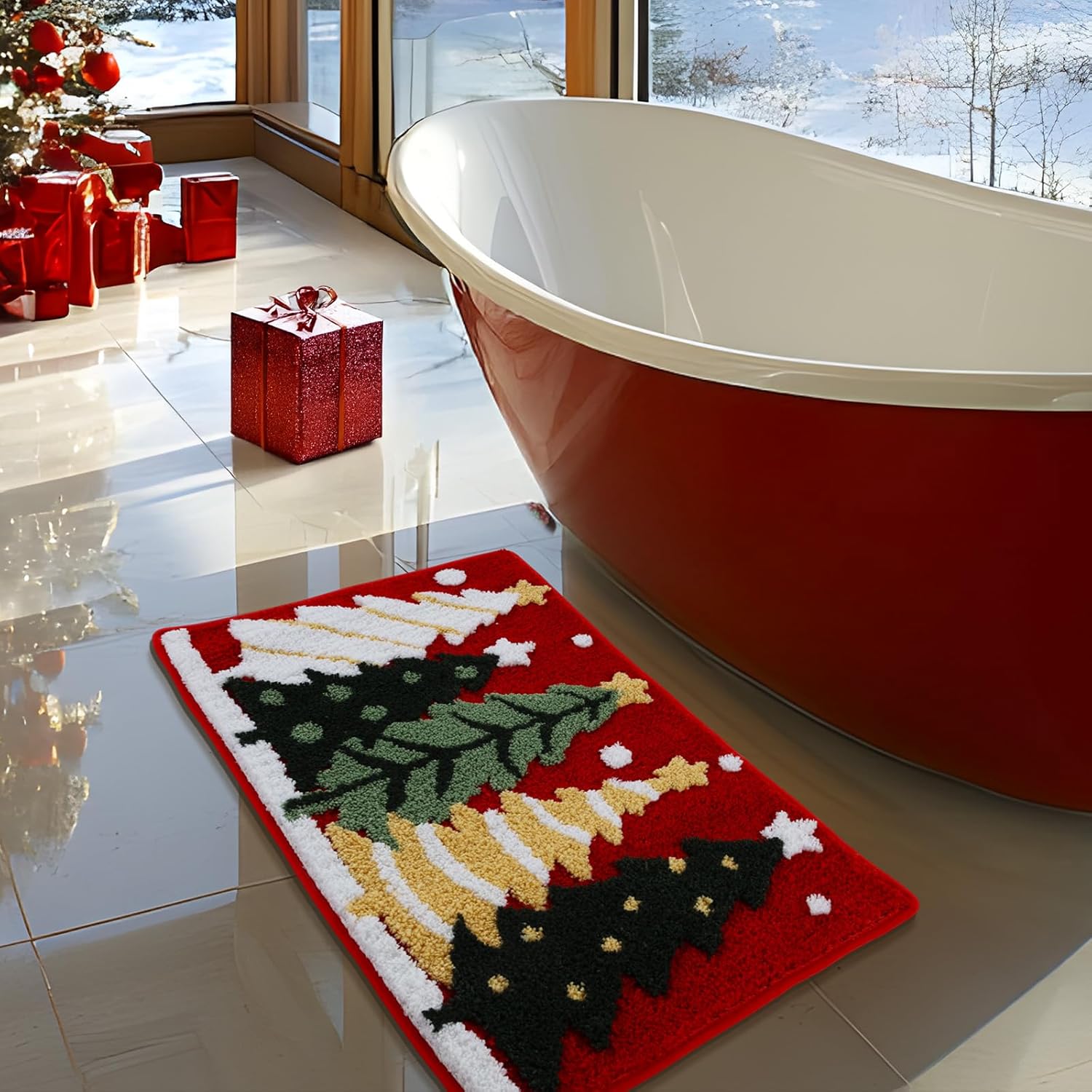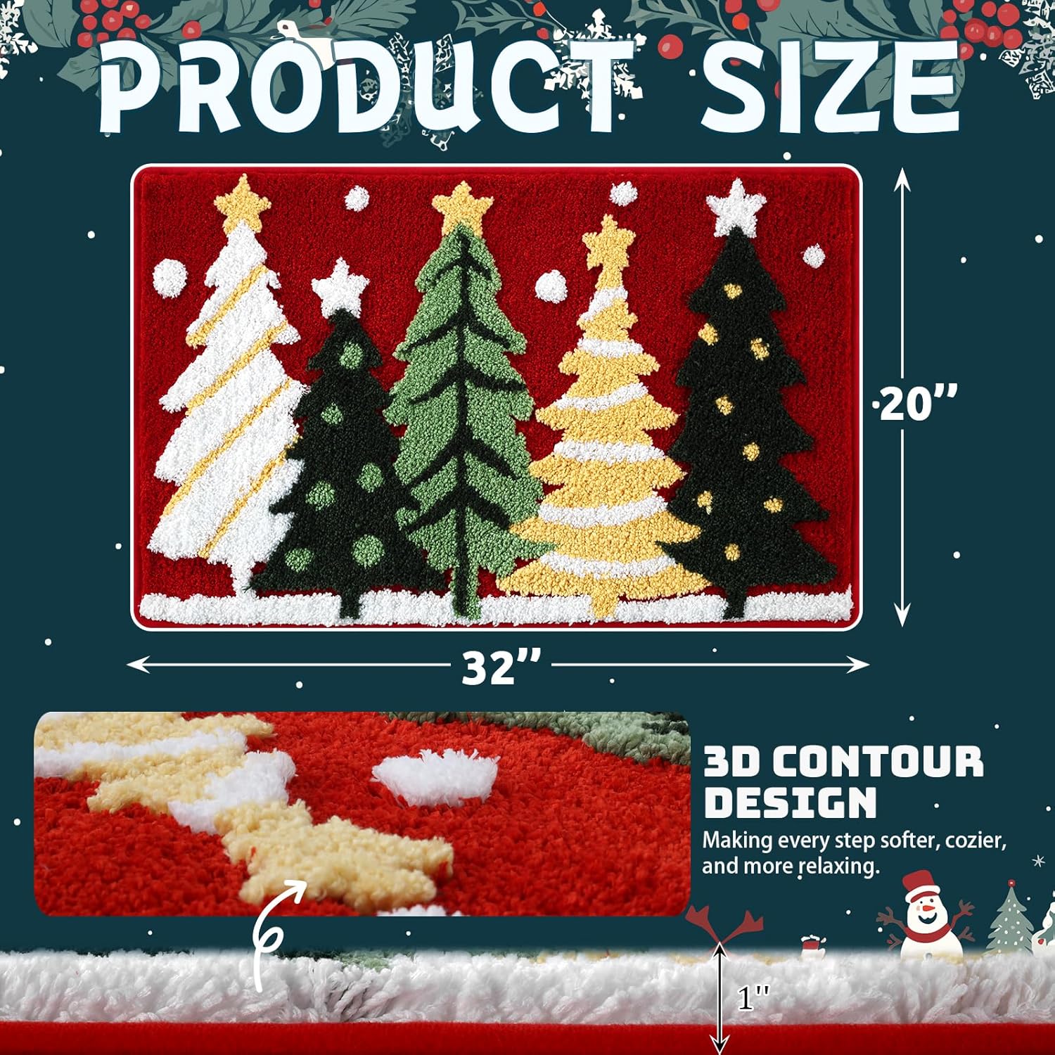 Alfombra de baño con árbol de Navidad de 20 x 32 pulgadas, suave y absorbente, tapete de baño con copos de nieve de Navidad, antideslizante, lavable, decoración de baño de Navidad, decoración roja de