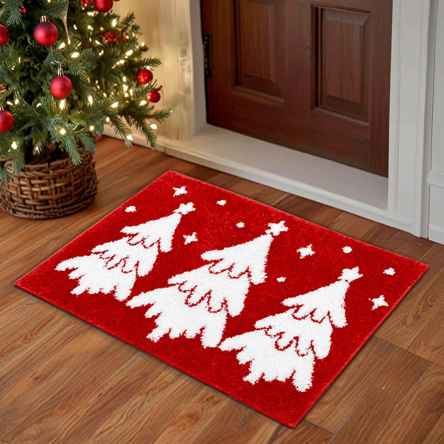 Suave y cómodo: esta alfombra de baño de pino de Navidad está hecha de microfibra de felpa de alta calidad, que es muy suave.