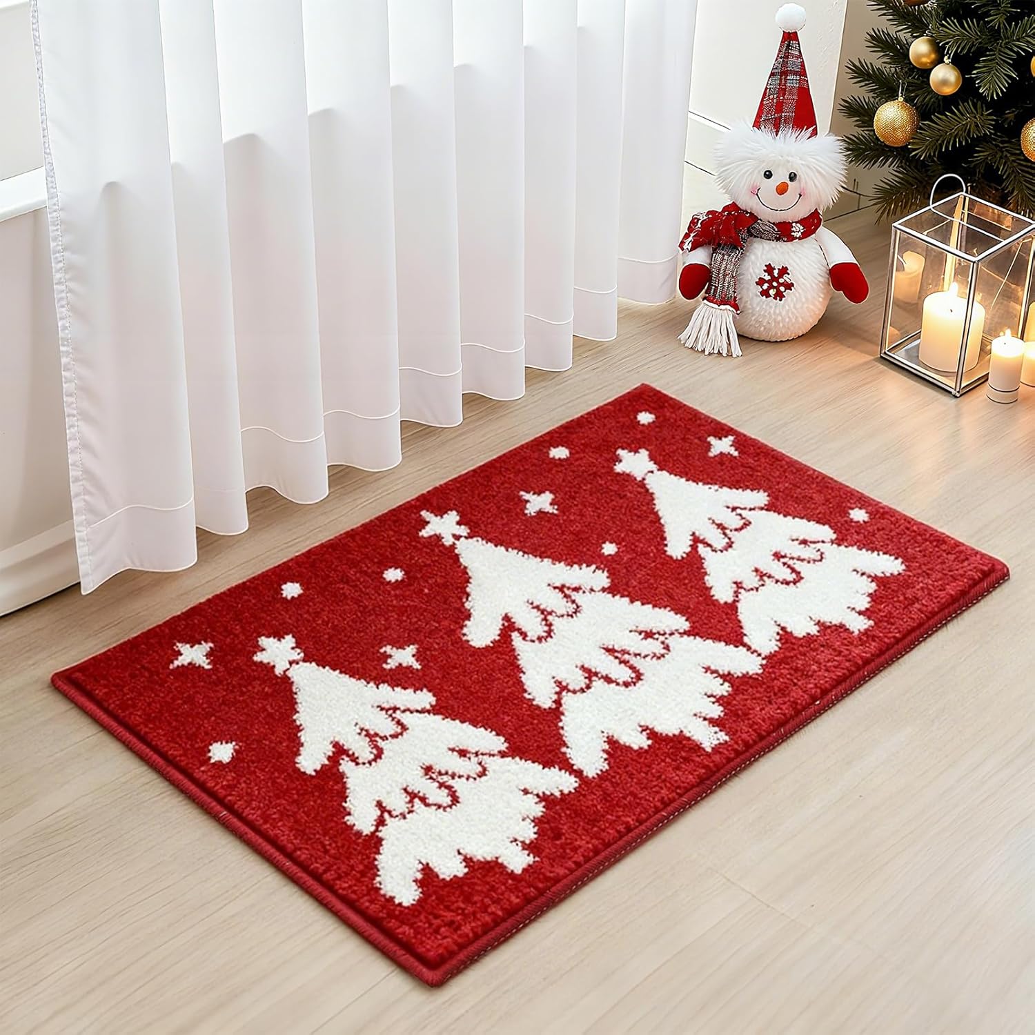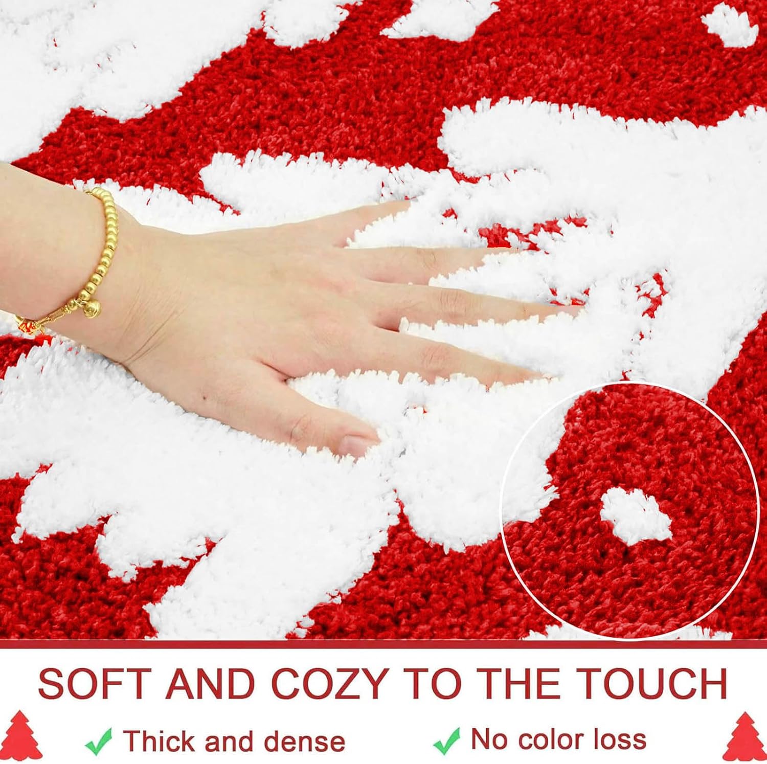 Multiusos: esta alfombra de Navidad tiene diseños bonitos y encantadores, perfectos para todo tipo de decoración del hogar, y se puede aplicar en el baño, tocador, fregadero, ducha, decoración de ducha de bañera, sala de estar, habitación de invitados, habitación de los niños, puerta y cocina.