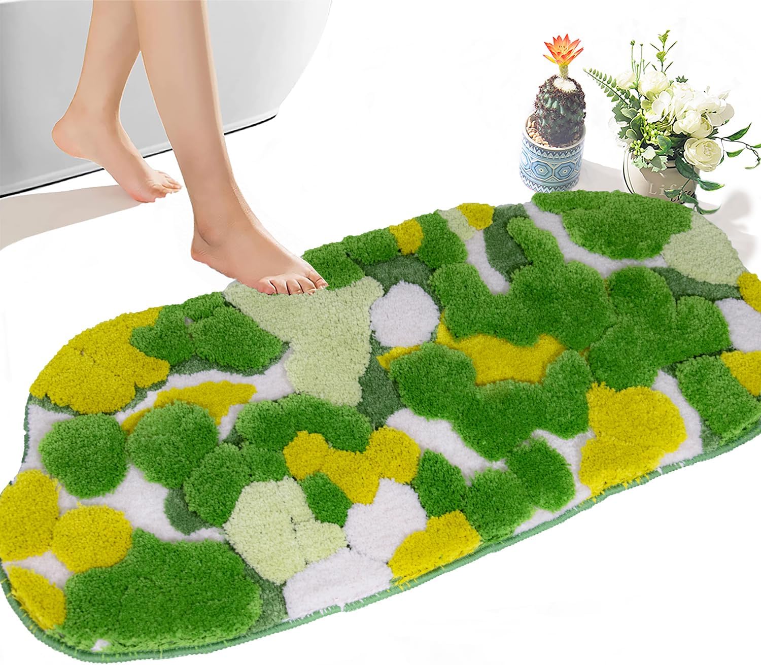 Diseño especial: la alfombra bohemia de baño natural que te sorprenderá. Esta bonita alfombra de camino de musgo verde primaveral recrea completamente la ecología natural, con pastizales vívidos y grandes detalles que alegrarán tu baño.