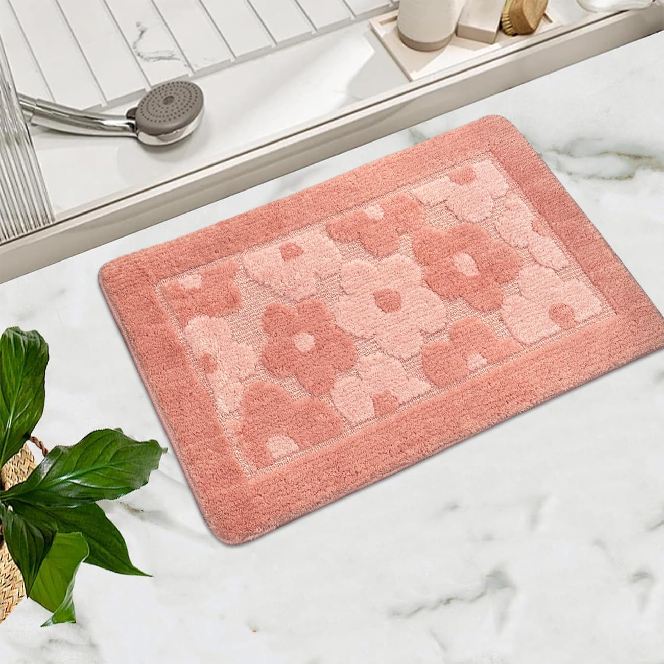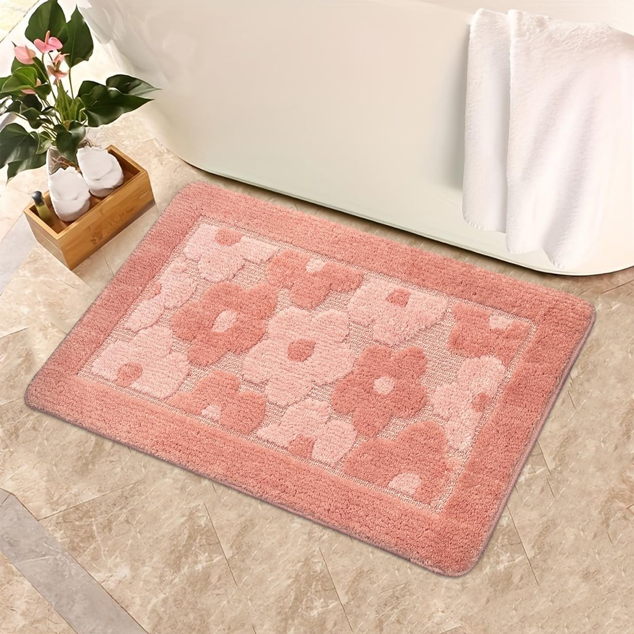 Alfombra de baño con flores rosadas, alfombras de baño florales, extra suaves, absorbentes de agua, antideslizantes, para baño, bañera, ducha, alfombra lavable y estética para puerta, 20 x 32