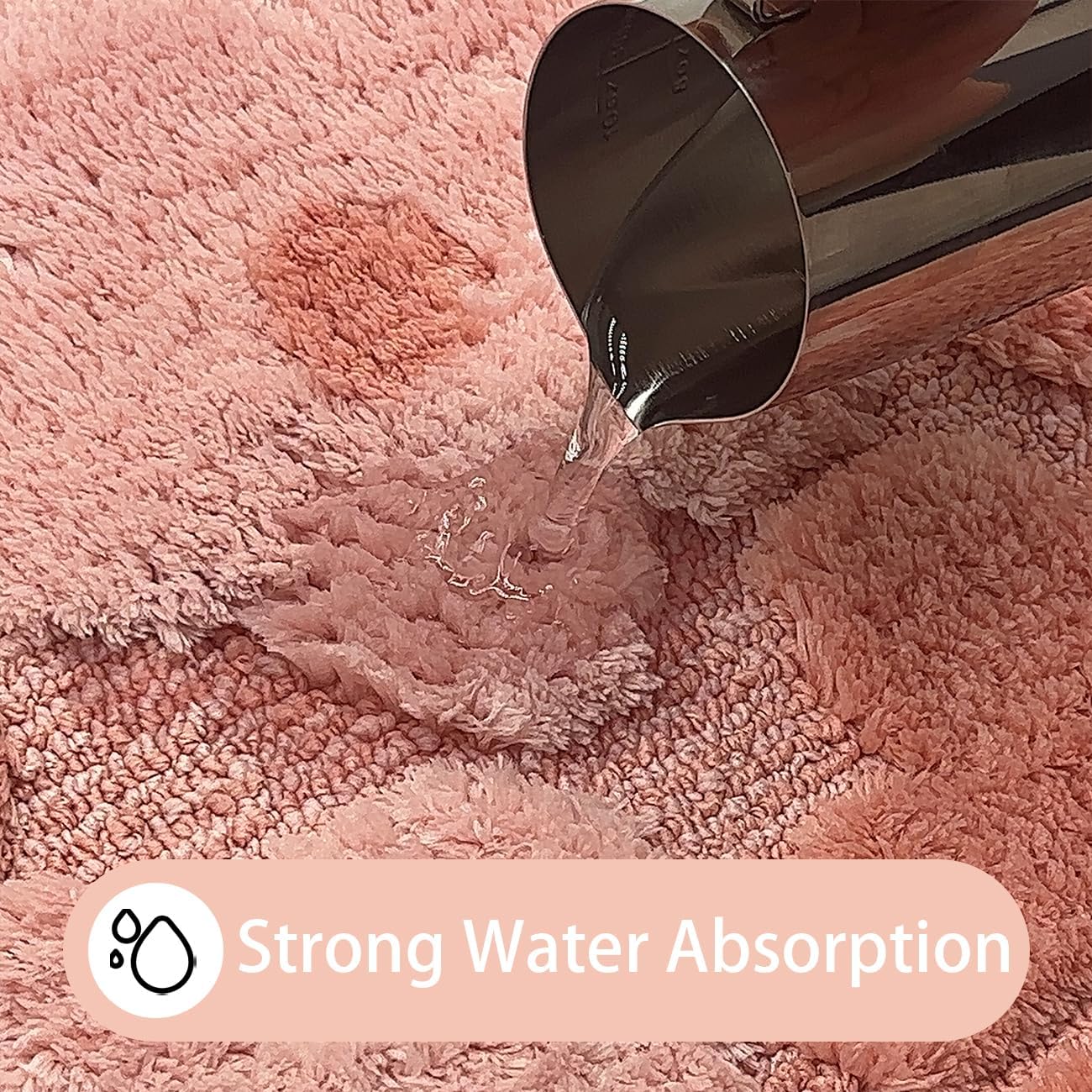 Absorbente de agua: alfombras de baño de flores con felpa suave y esponjosa. Suave al tacto y pisar. La felpa de 0.59 (aprox. 1.5 cm) de altura del pelo puede absorber el agua rápidamente y mantener el baño limpio y seco
