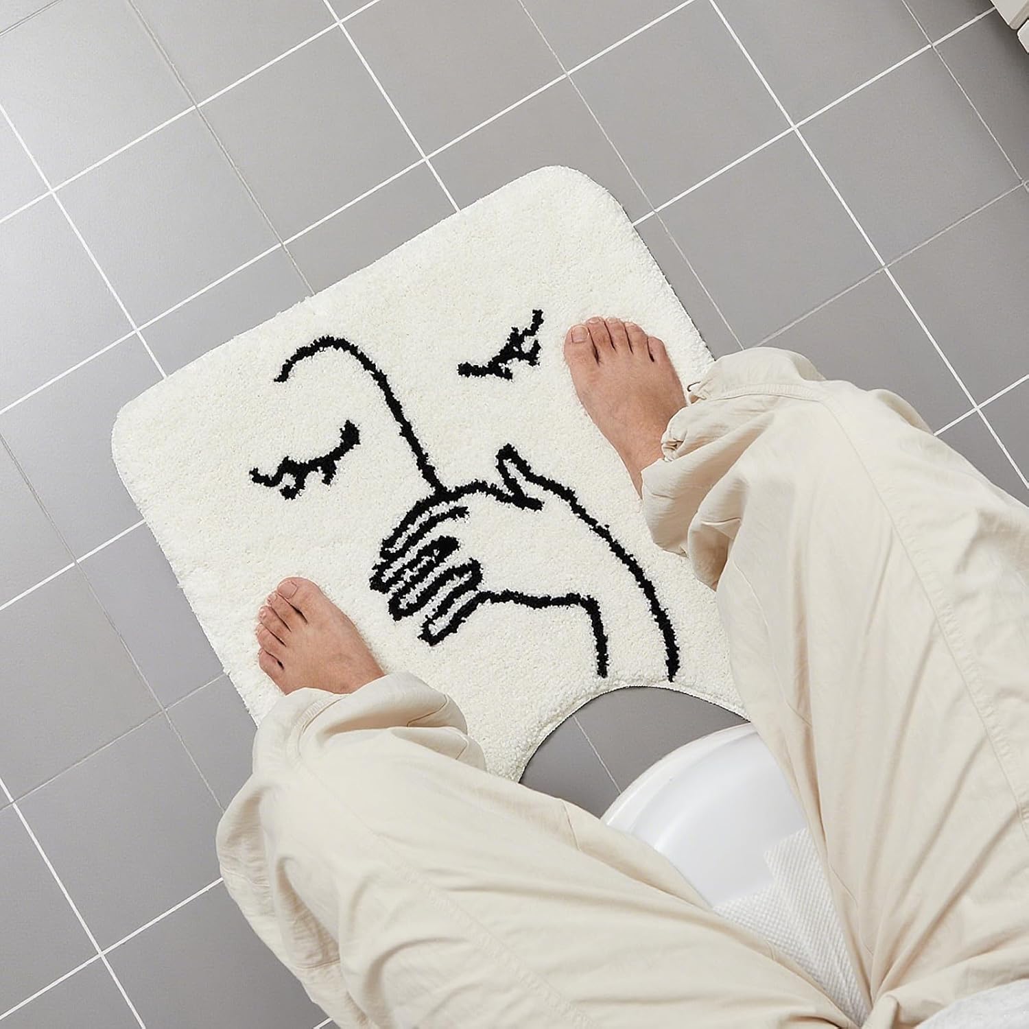 Tapete de inodoro antideslizante: la parte posterior del tapete de baño antideslizante está hecha de material de goma TPR para evitar resbalones. Para la tranquilidad de tu familia, coloca el tapete de baño antideslizante en un suelo seco y liso