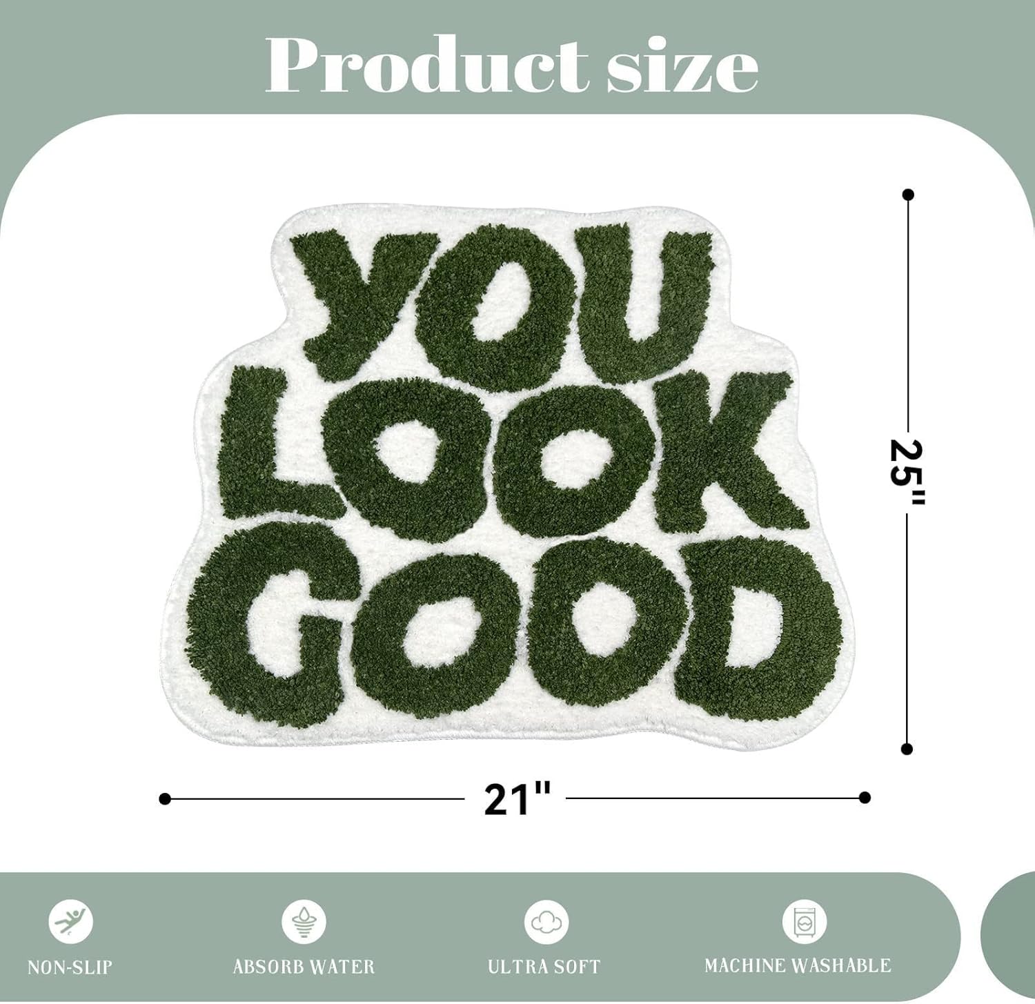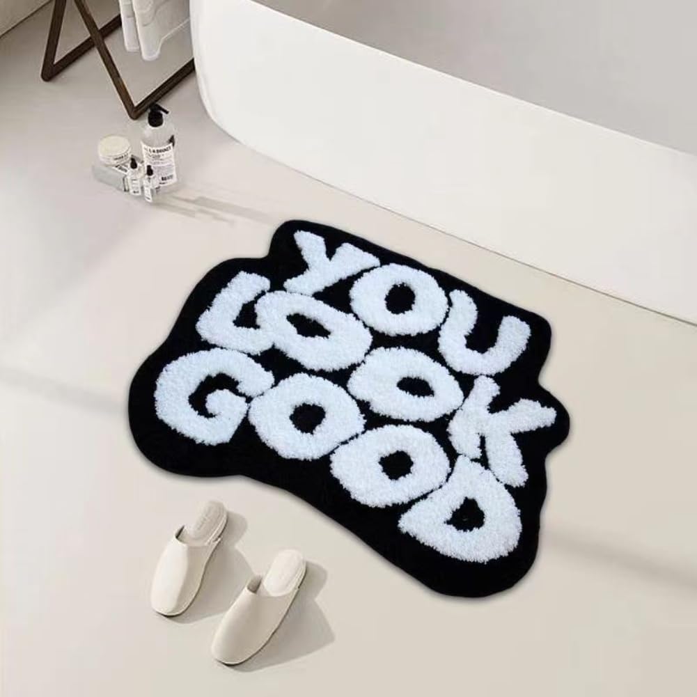 Alfombra de baño de 25 x 21 pulgadas, de microfibra suave y absorbente, con parte trasera de goma antideslizante, lavable a máquina, para suelo de baño, bañera y ducha (negro, te ves bien)