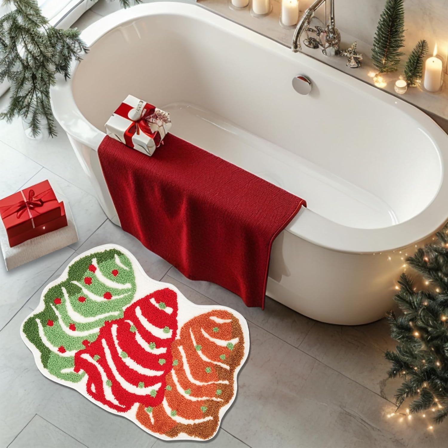 Tamaño: la alfombra de Navidad mide 18 x 28 (aprox. 71.1 cm), que es un tamaño estándar ideal para cualquier baño.