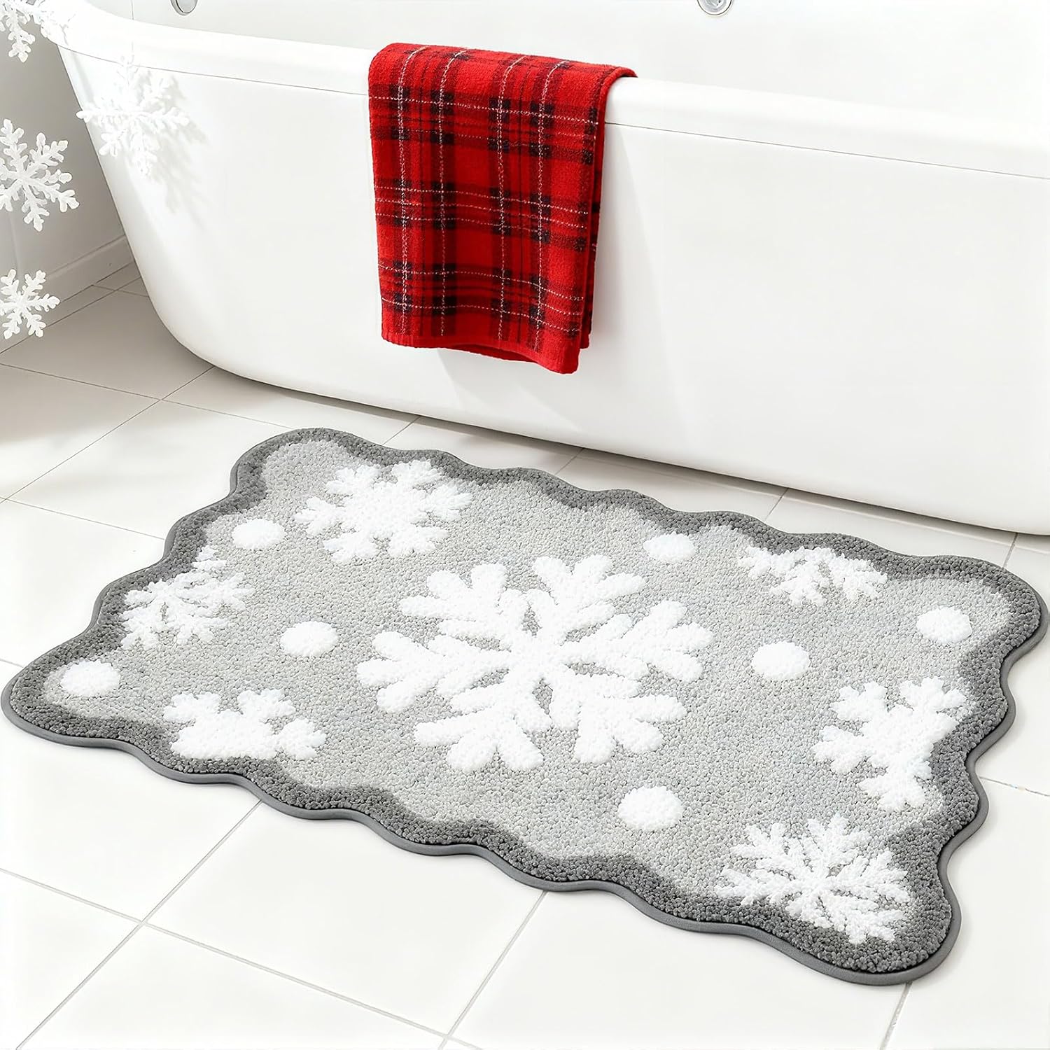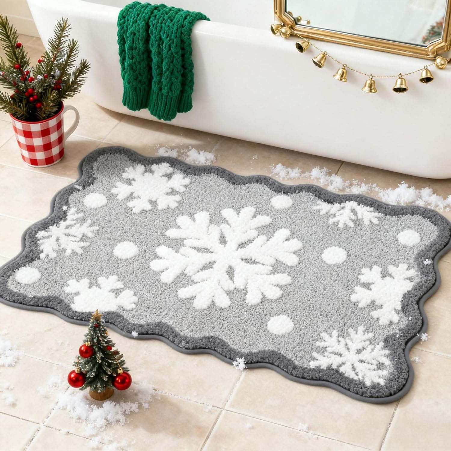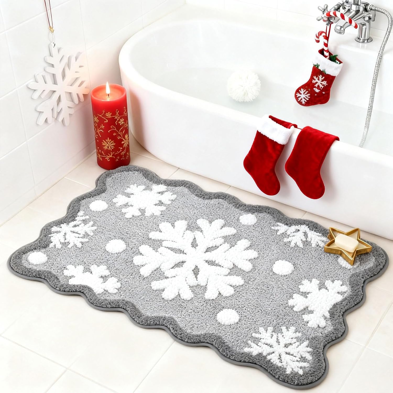 Perfecto para la decoración del hogar: la alfombra de baño decorativa de copo de nieve cuenta con un diseño encantador y festivo de invierno, aportando un espíritu festivo acogedor a tu hogar y deleitando a tus invitados. También es un maravilloso regalo de Navidad para amigos y familiares.