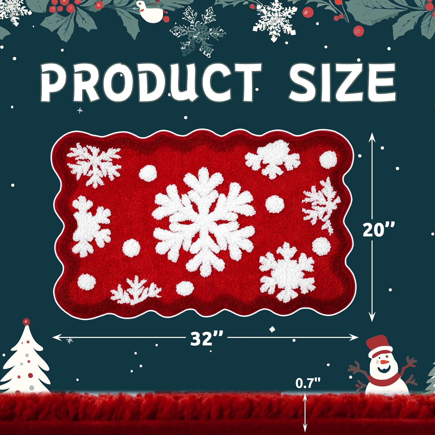 Alfombra de baño de copo de nieve de Navidad de 20 x 32 pulgadas, suave y absorbente, alfombra de baño roja de Navidad, antideslizante, lavable, decoración de baño de Navidad, decoración de