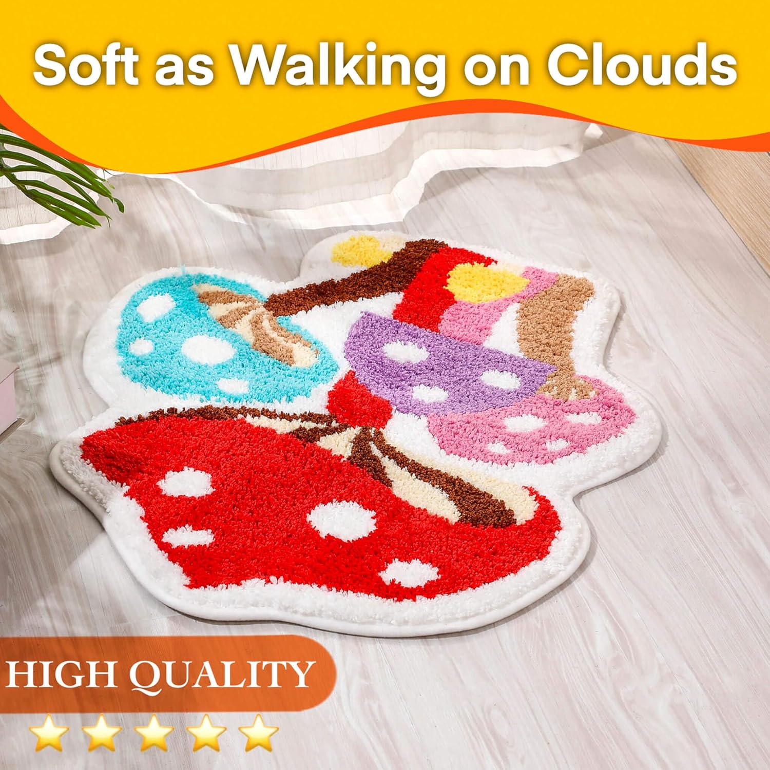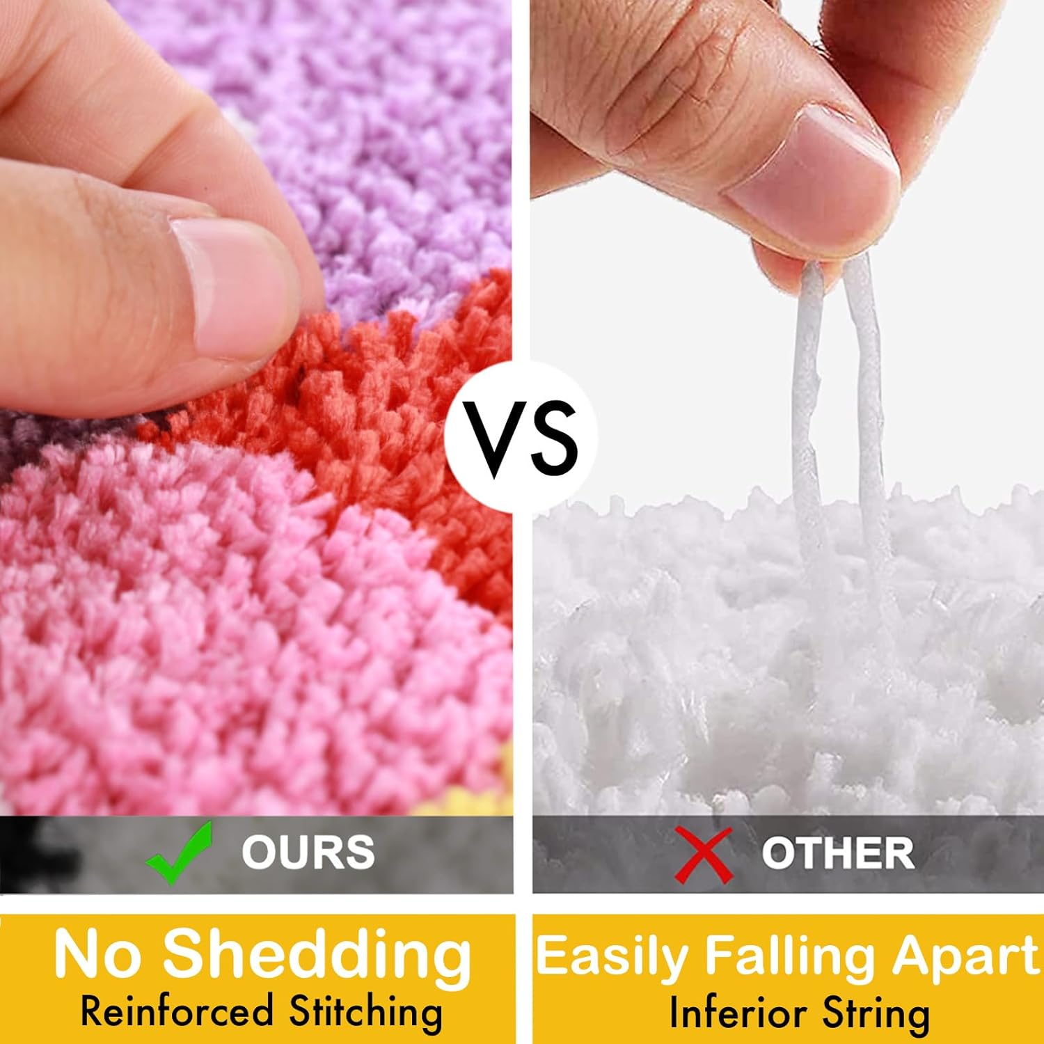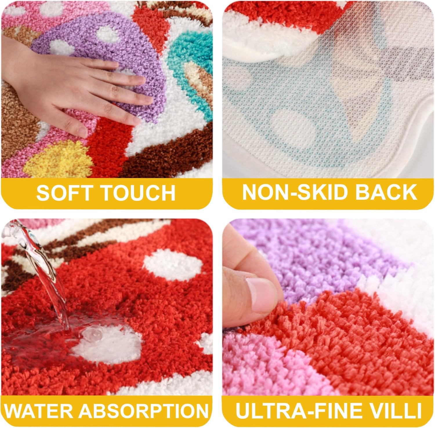 Ultra absorbente: nuestra bonita alfombra de baño de hongos coloridos está hecha de 100% microfibra de alta calidad, que es súper suave y absorbe el agua rápidamente. Las microfibras densas y gruesas mantienen el suelo de tu baño limpio y seco cuando sales de la ducha, proporcionando una sensación cómoda y cálida.