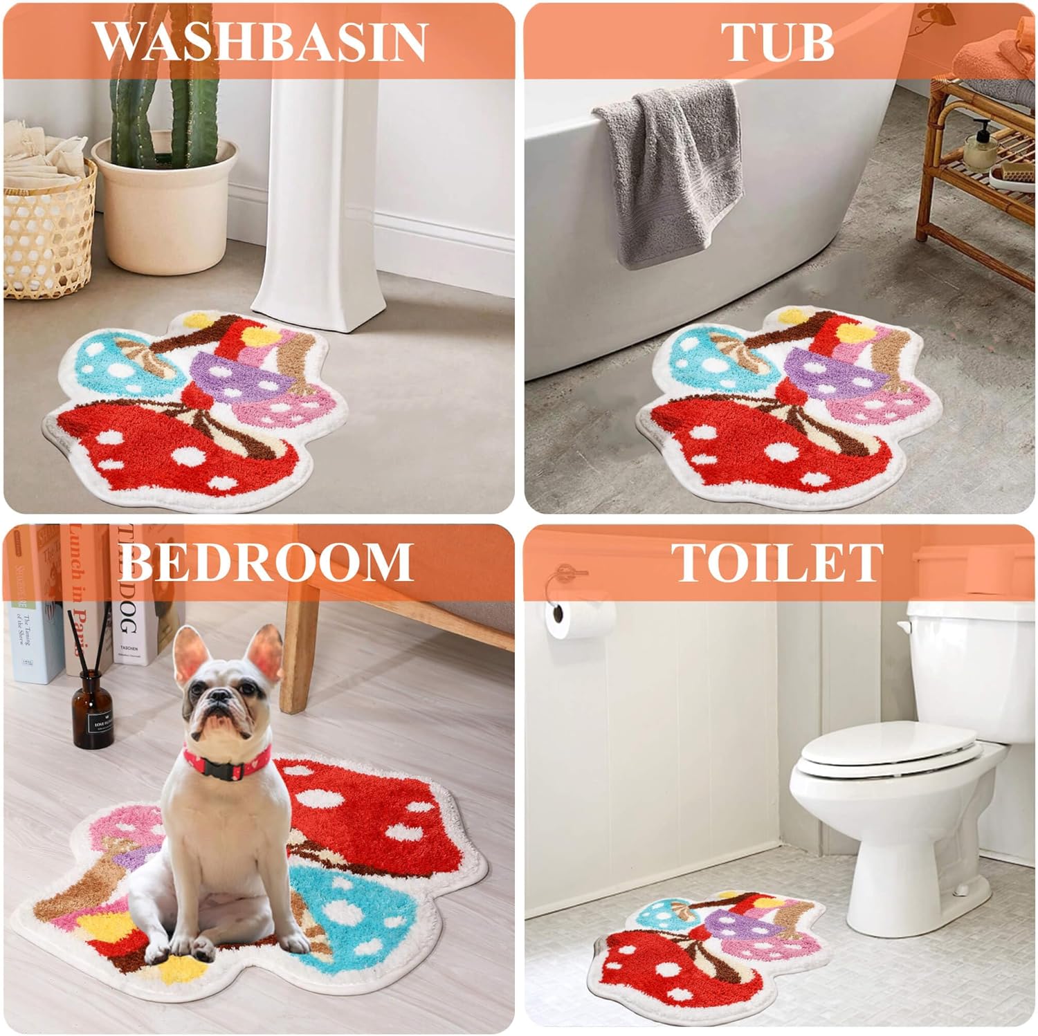 Diseño único de seta: la alfombrilla de baño antideslizante con forma de hongo arcoíris es francamente adorable y seguramente se convertirá en el punto focal de cualquier habitación. Tamaño pequeño y delicado pero súper lindo. Nunca te cansarás de mirarlo. Aporta una sensación táctil cómoda, te hace sentir suave como caminar sobre las nubes, añade encanto adicional al baño.