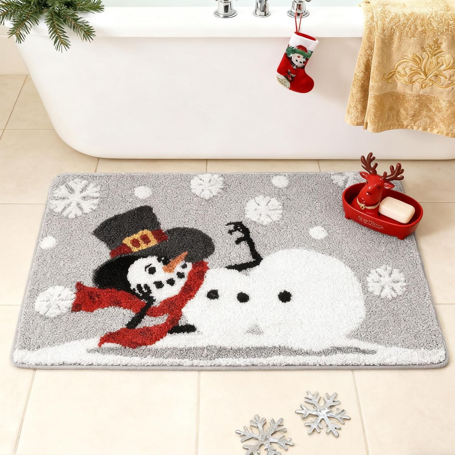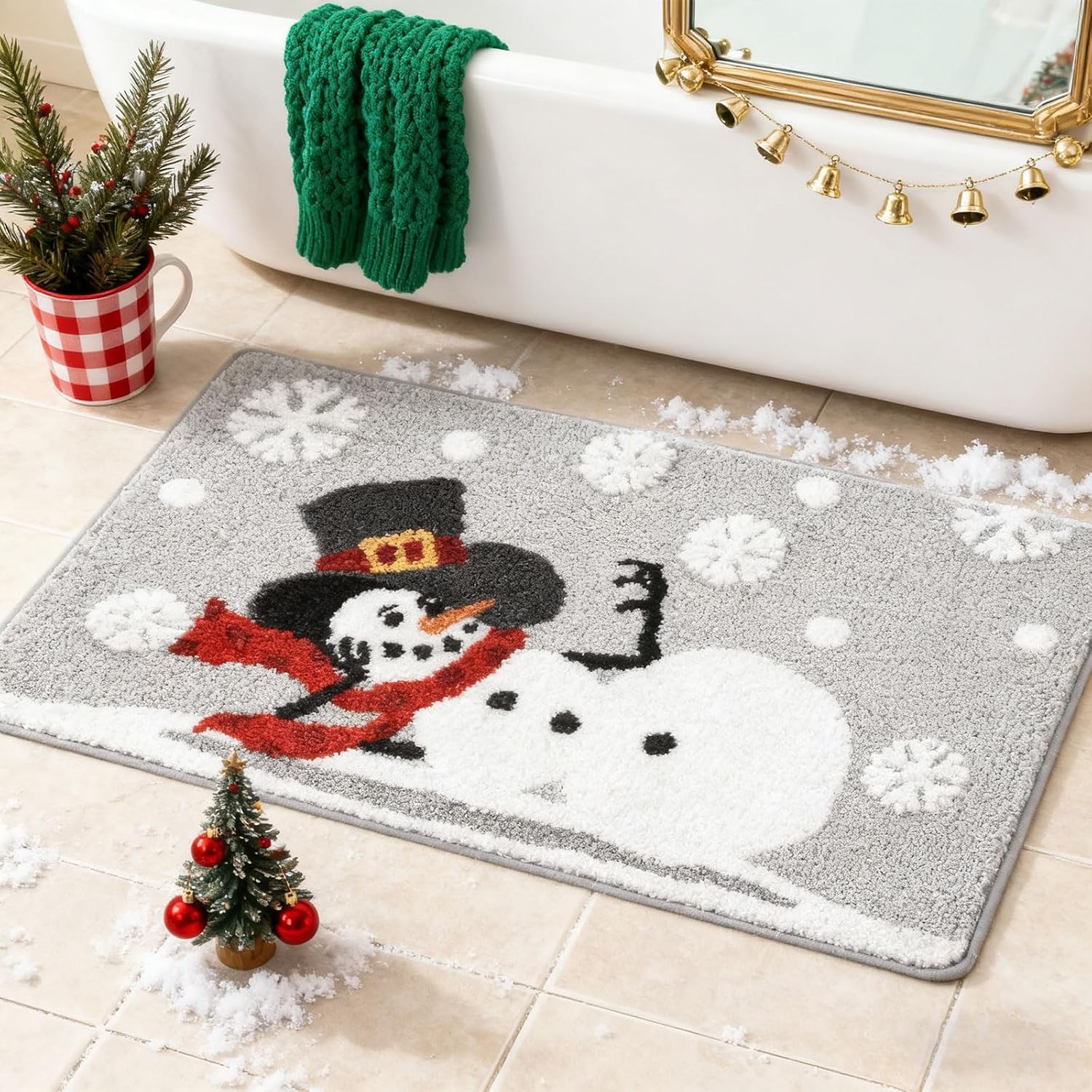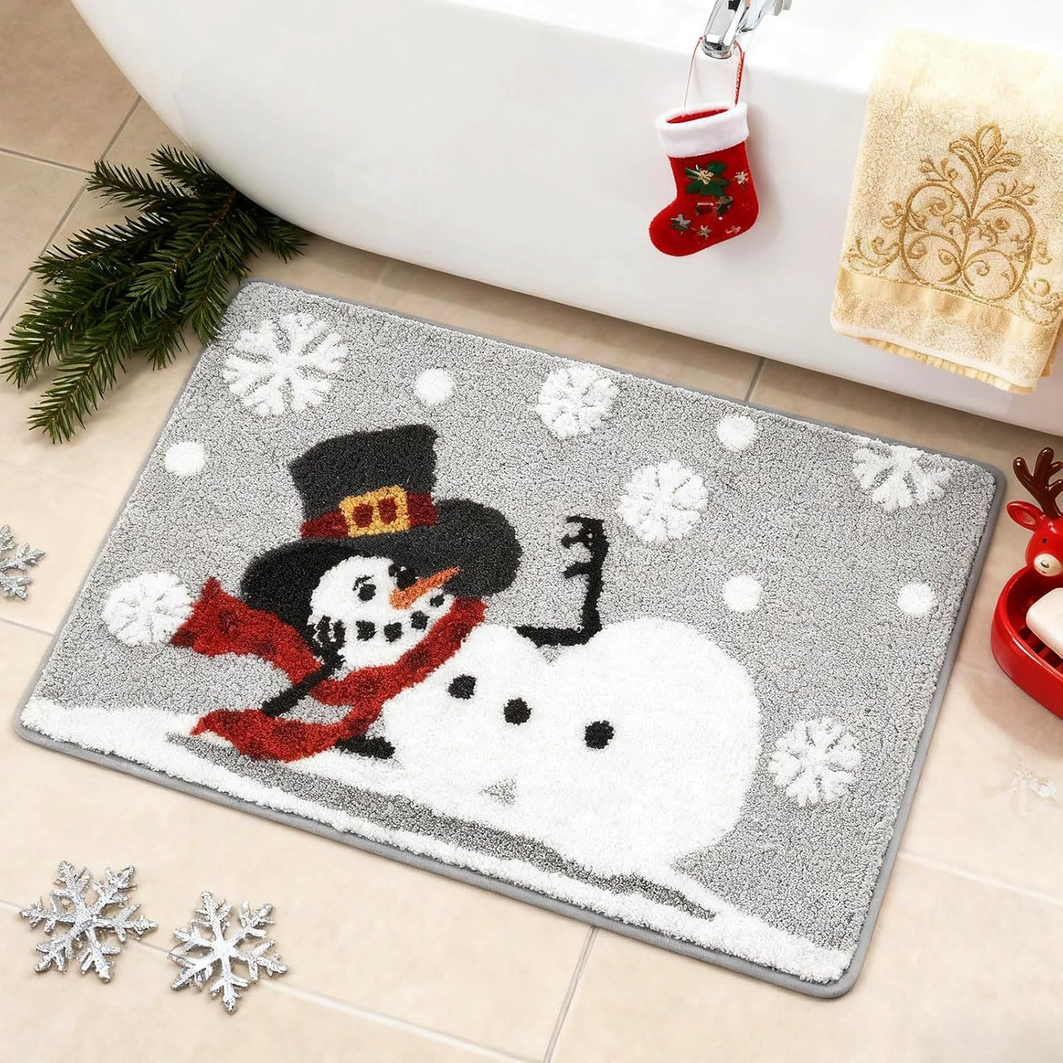 Altamente absorbente: diseñada para absorber rápidamente la humedad, esta alfombra de Navidad ayuda a mantener los suelos de tu baño secos y limpios, evitando resbalones y charcos después de una ducha o baño.