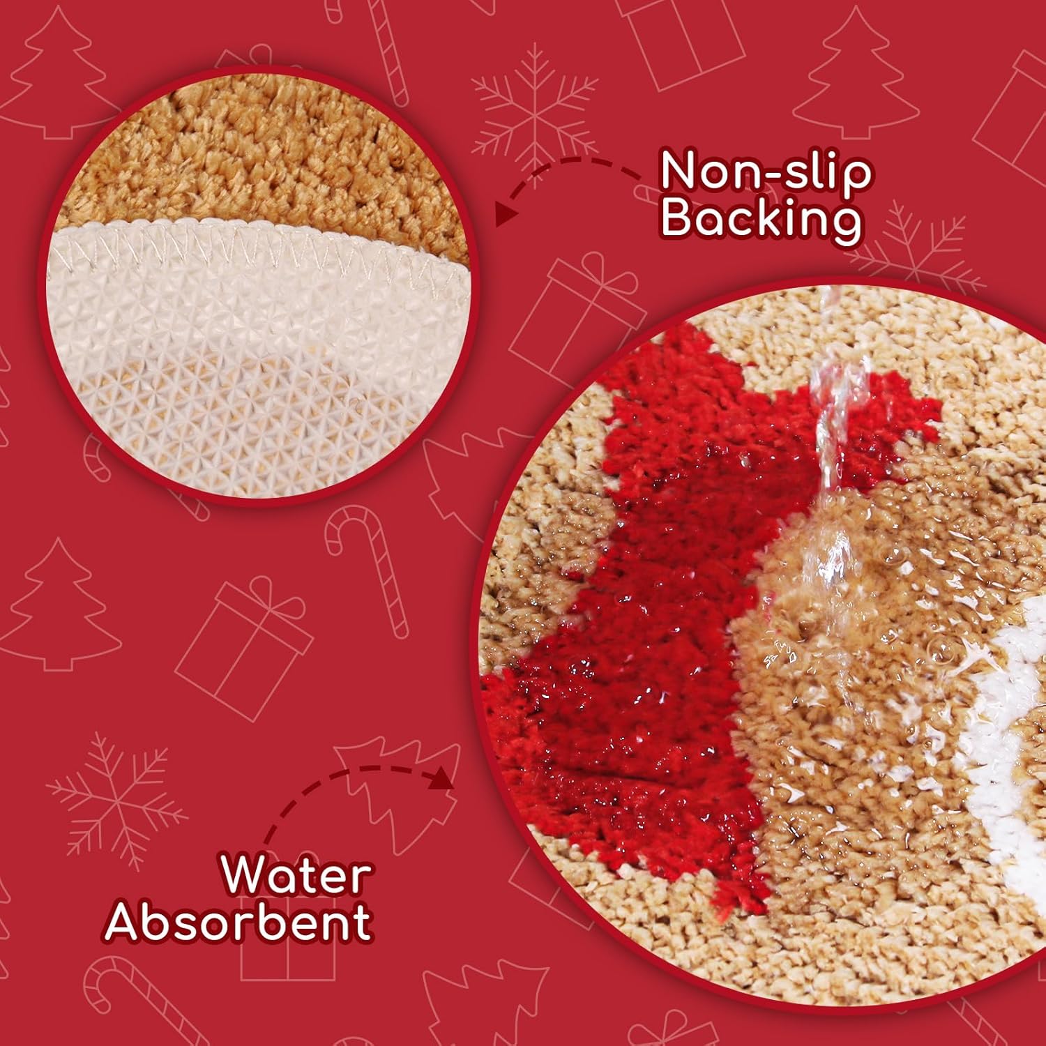 Material suave y absorbente: nuestra alfombra de baño Chirstmas está hecha con tela de felpa de alta calidad que se siente suave bajo los pies y absorbe rápidamente el agua, manteniendo el suelo de tu baño seco y cómodo.