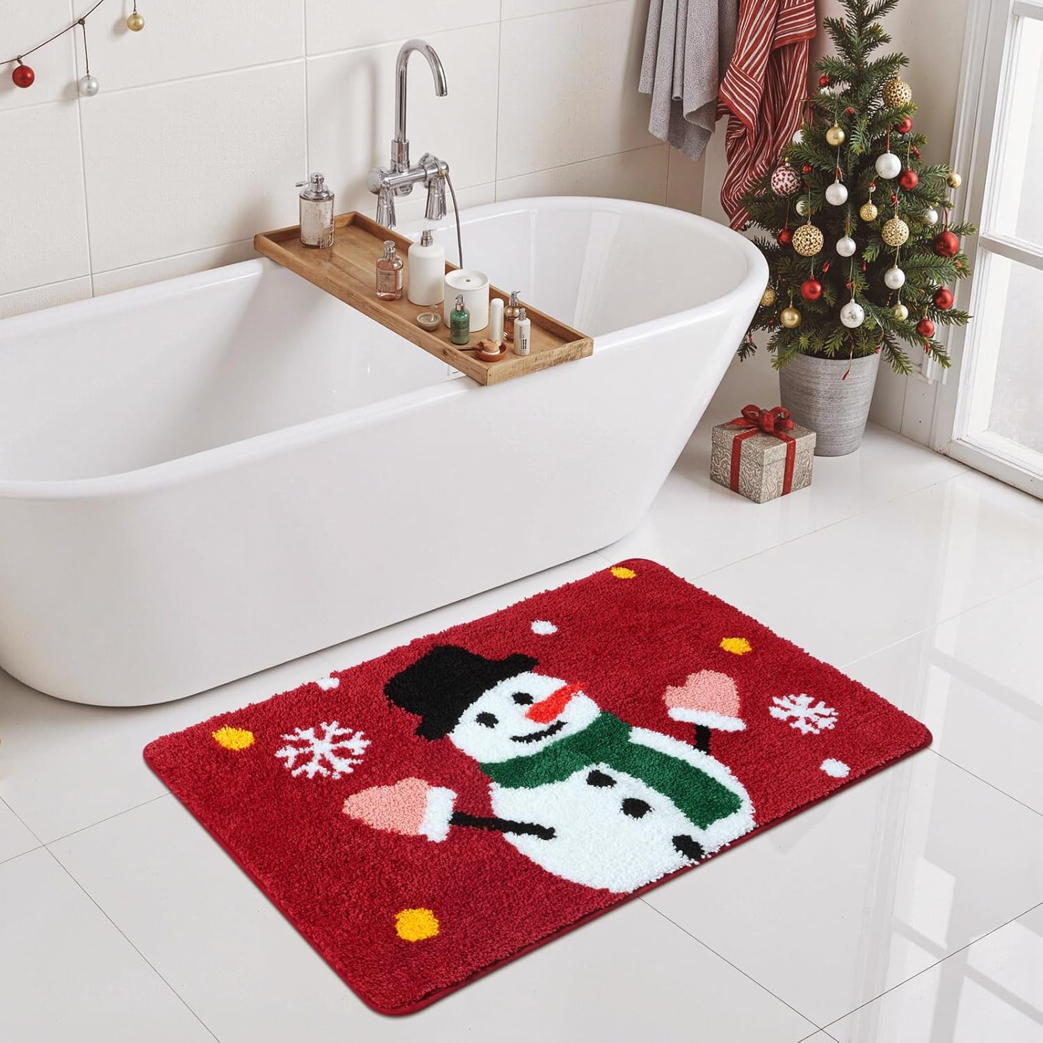Alfombra de baño de muñeco de nieve de Navidad de 32 x 20 pulgadas, decoración de baño de Navidad, absorbente y bonita, alfombra de baño de invierno y Navidad, alfombra de baño suave, antideslizante