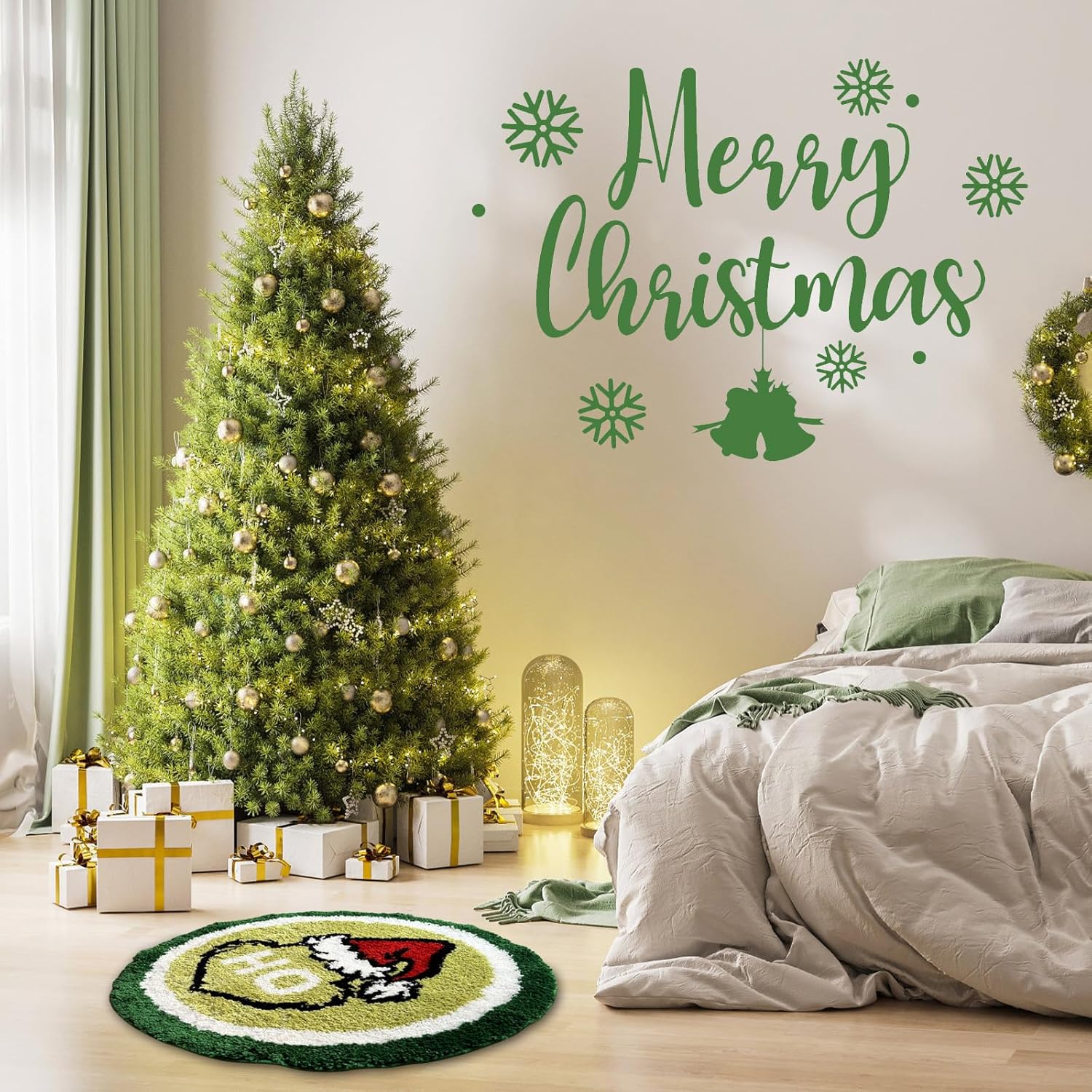 Alfombra de baño de Navidad, alfombra de baño verde con texto en inglés “Merry Christmas”, decoración navideña, súper suave, absorbente, alfombra de Navidad antideslizante para baño, cocina