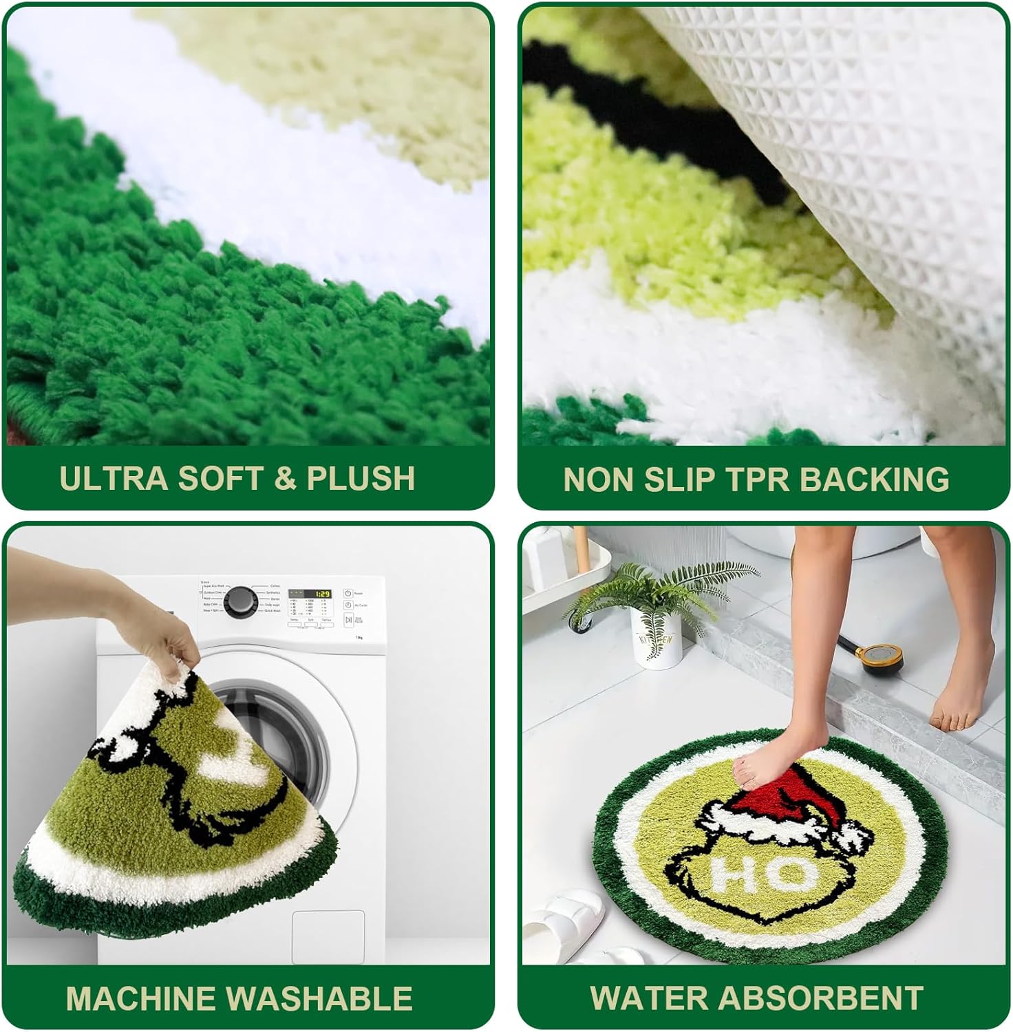 Alfombra de baño ampliamente utilizada: tamaño 24 x 24 (aprox. 61.0 cm) en redondo, esta alegre alfombra de Navidad no es solo para el baño, el diseño clásico de Navidad lo hace ideal para usar en toda tu casa, o como alfombra decorativa en la cocina, entrada, sala de estar, habitaciones de invitados con temática navideña, casas de vacaciones u hoteles para difundir alegría festiva.