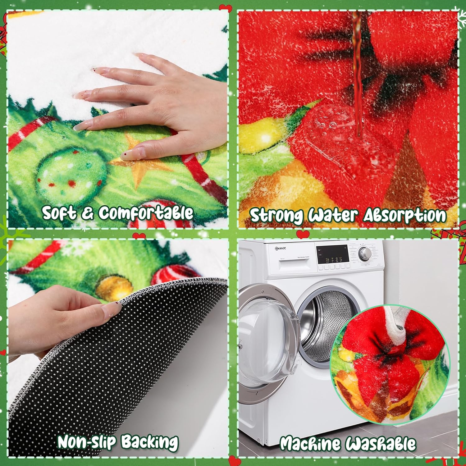 【Animación festiva】Lleva la magia de la Navidad a tu hogar con esta hermosa alfombra de baño verde. Con colores clásicos de vacaciones y una encantadora estética de granja, añade instantáneamente un toque cálido y festivo a tu baño, cocina o espacio vital.