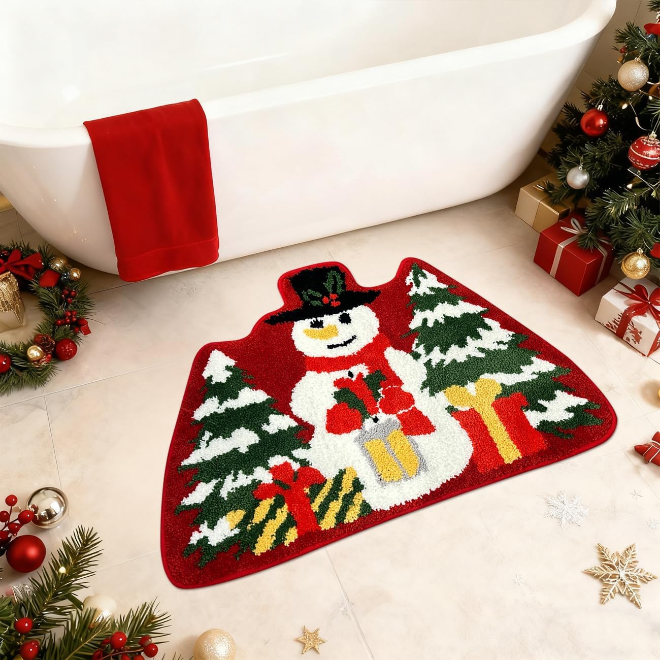 [Alfombra de Navidad]: ¿Buscas una alfombra de baño de Navidad? Lindas alfombras con diseño navideño y colores brillantes. 20 x 32 (aprox. 81.3 cm), adecuado para baño, bañera, fregadero, ducha, tapete para puerta de inodoro, alfombra pequeña junto a la cama de dormitorio, entrada de sala de estar y alfombra decorativa de dormitorio