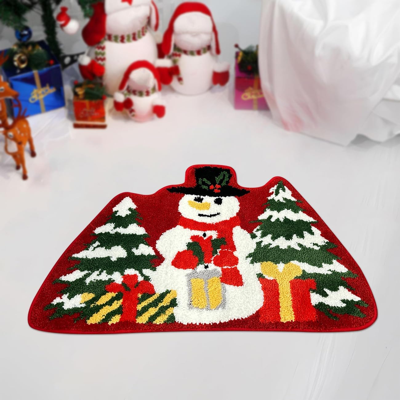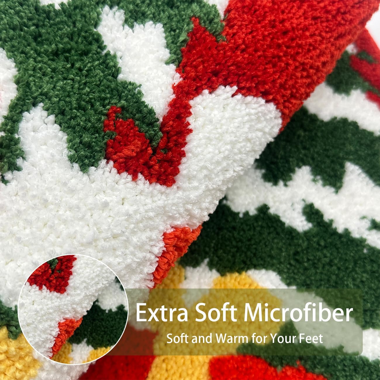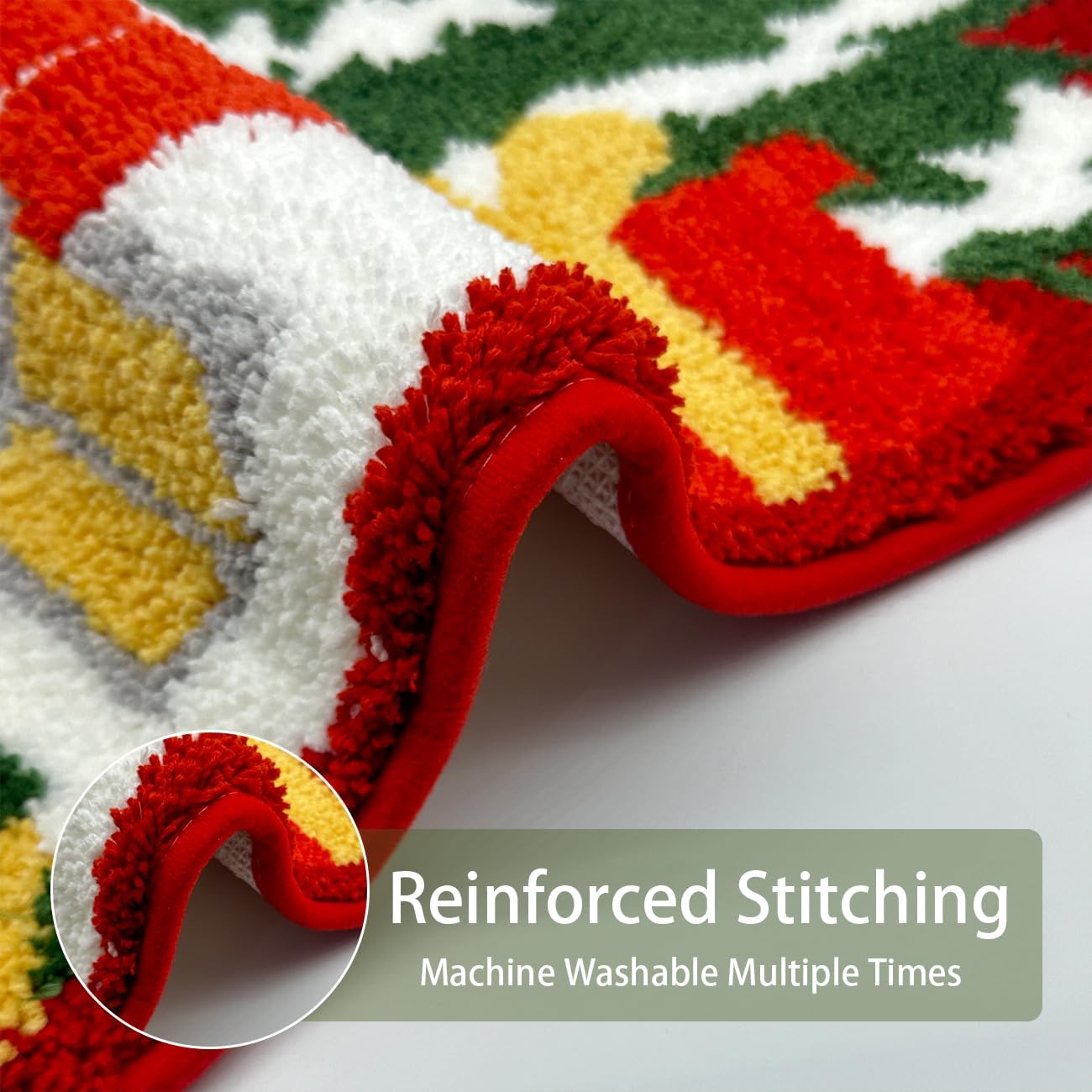 Microfibra extrasuave: la alfombra de baño de Navidad está hecha de poliéster suave y microfibra. Superficie de felpa extra suave que proporciona suavidad y calidez a tus pies. El diseño navideño y el color brillante también proporcionan una alfombra de decoración navideña para el espacio del hogar