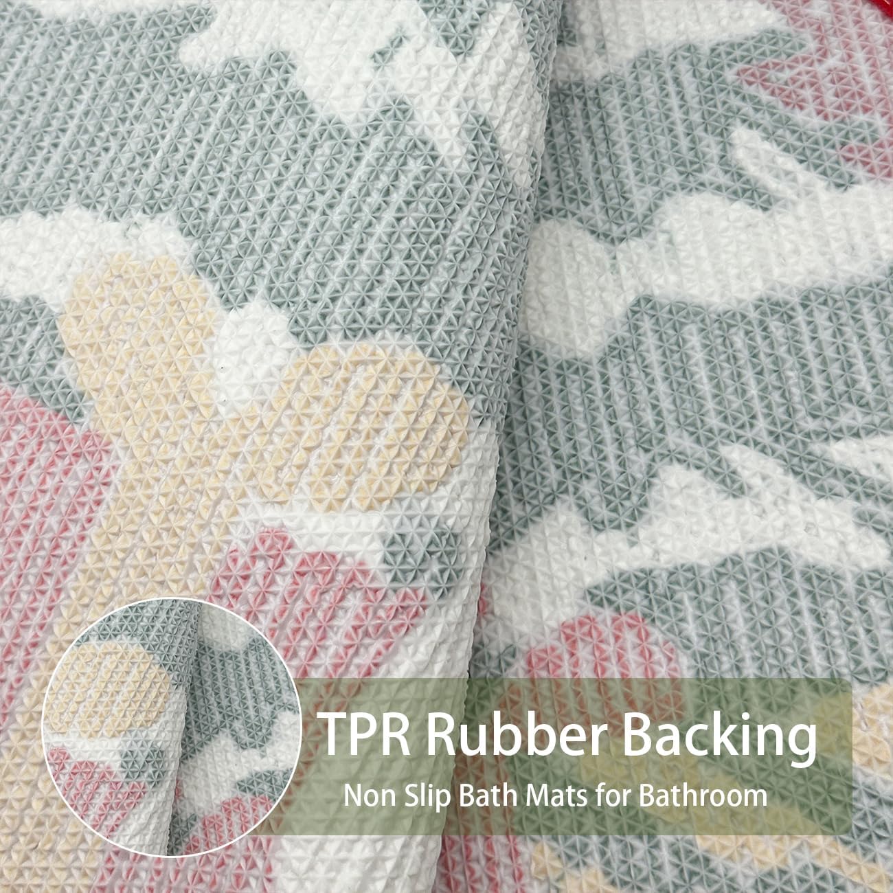 [Base antideslizante de goma TPR]: tapetes de baño antideslizantes con respaldo de goma TPR para baño, bañera, fregadero de cocina. La parte trasera de goma TPR tiene un fuerte efecto antideslizante y se puede lavar (no secar en secadora ni planchar). La parte inferior de goma mantendrá el fuerte efecto antideslizante y un uso duradero