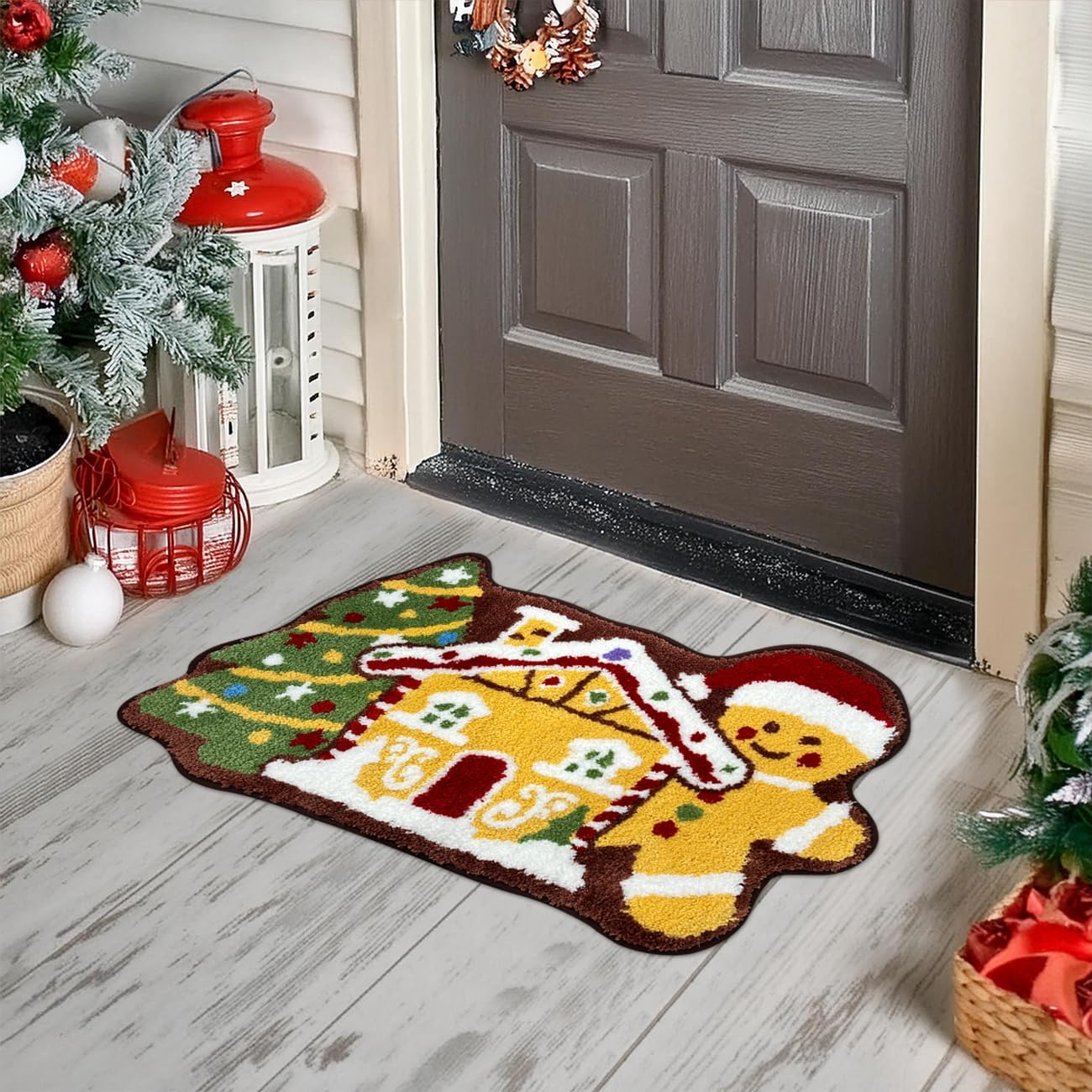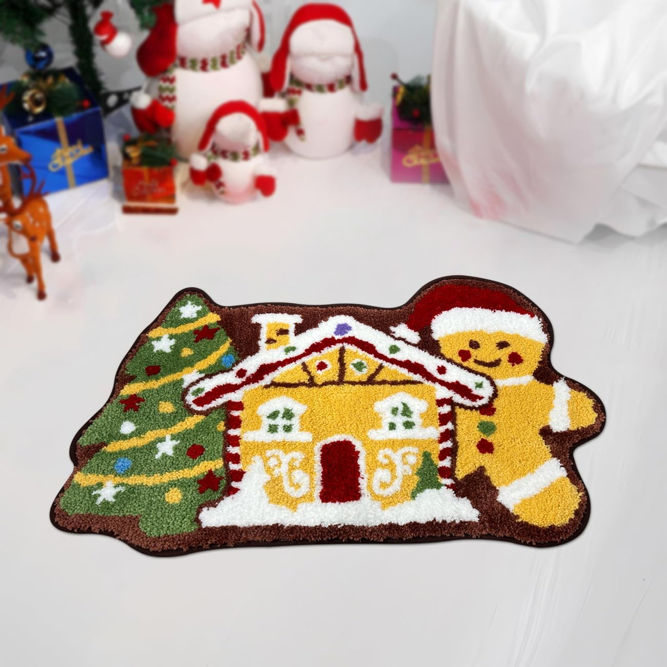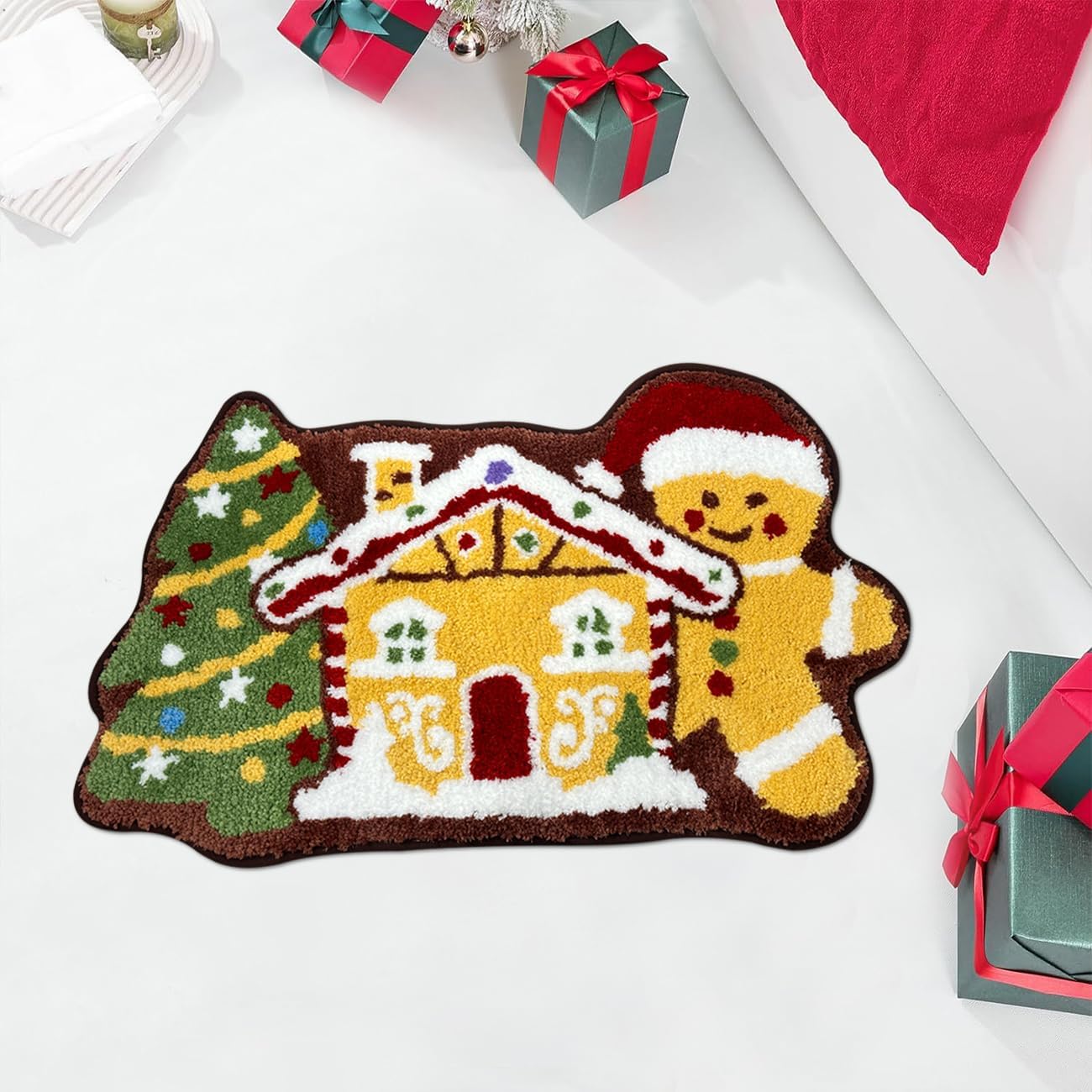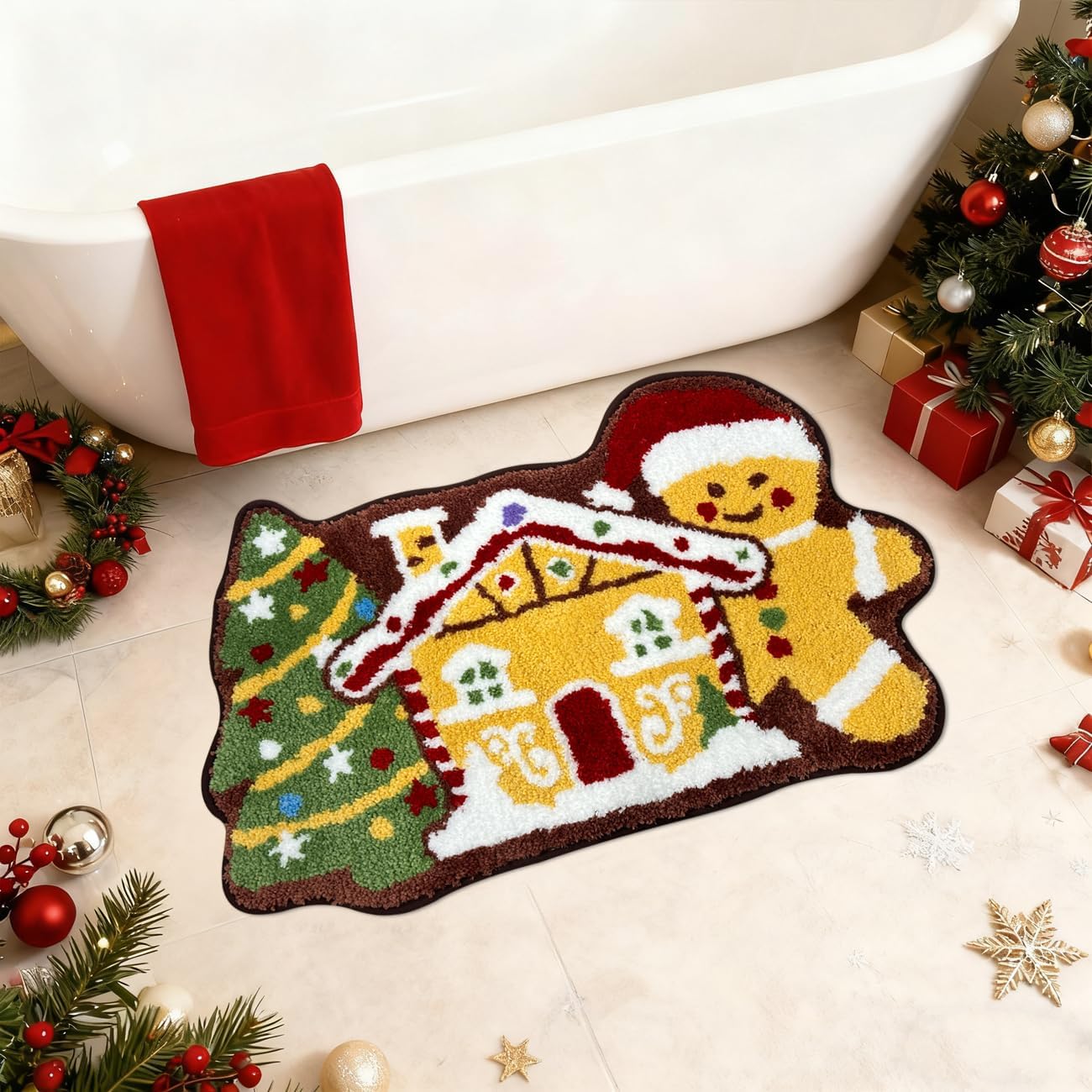 Alfombra de baño de Navidad con árbol de Navidad, bonita casa de jengibre, copetuda, suave, absorbente, antideslizante, de secado rápido, para baño, bañera, inodoro, decoración de Navidad