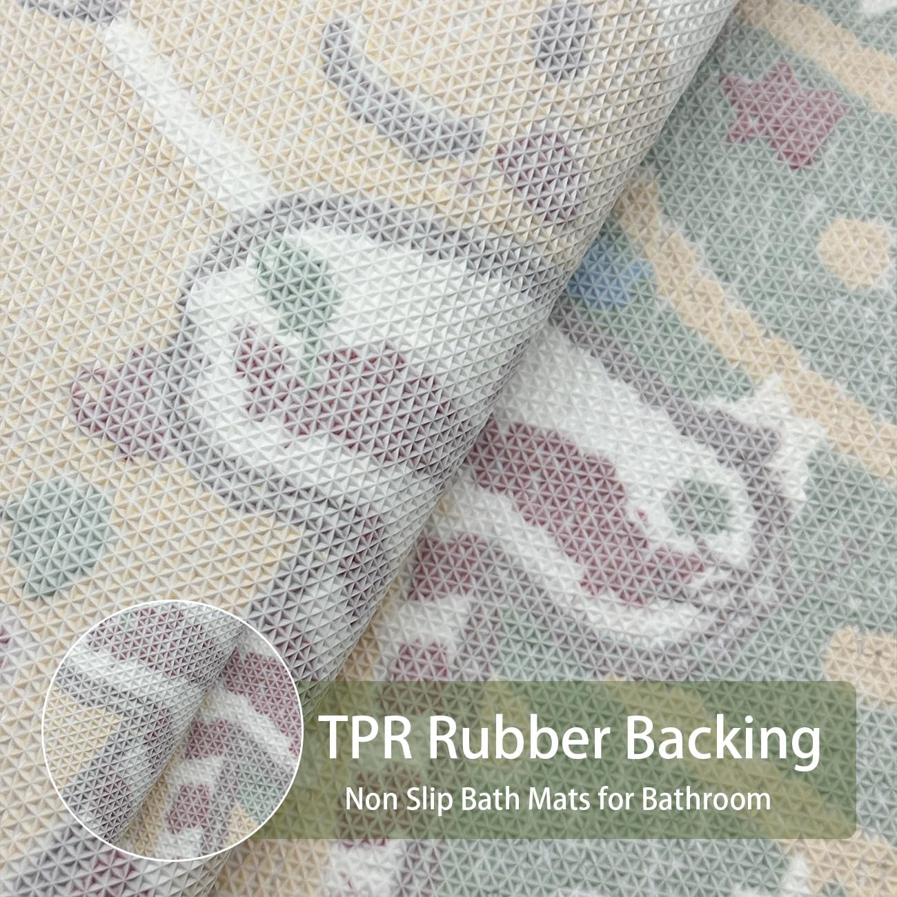 [Base antideslizante de goma TPR]: tapetes de baño antideslizantes con respaldo de goma TPR para baño, bañera, fregadero de cocina. La parte trasera de goma TPR tiene un fuerte efecto antideslizante y se puede lavar (no secar en secadora ni planchar). La parte inferior de goma mantendrá el fuerte efecto antideslizante y un uso duradero