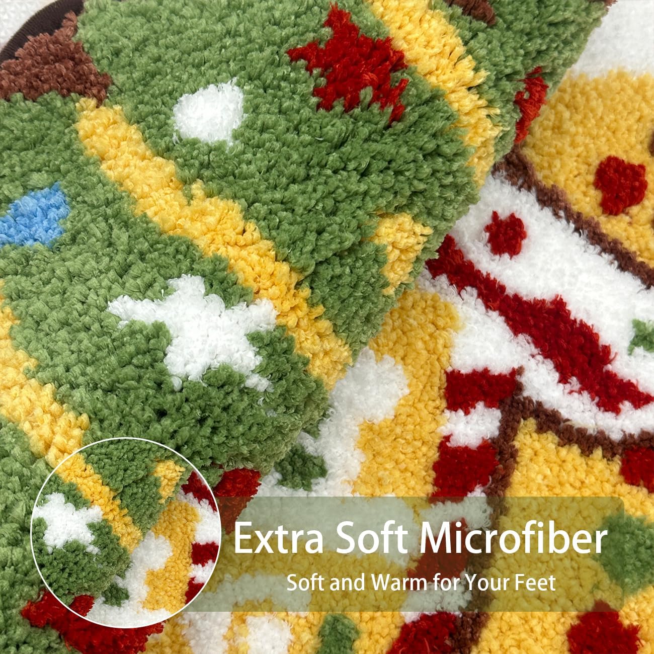 Microfibra extrasuave: la alfombra de baño de Navidad está hecha de poliéster suave y microfibra. Superficie de felpa extra suave que proporciona suavidad y calidez a tus pies. El diseño navideño y el color brillante también proporcionan una alfombra de decoración navideña para el espacio del hogar