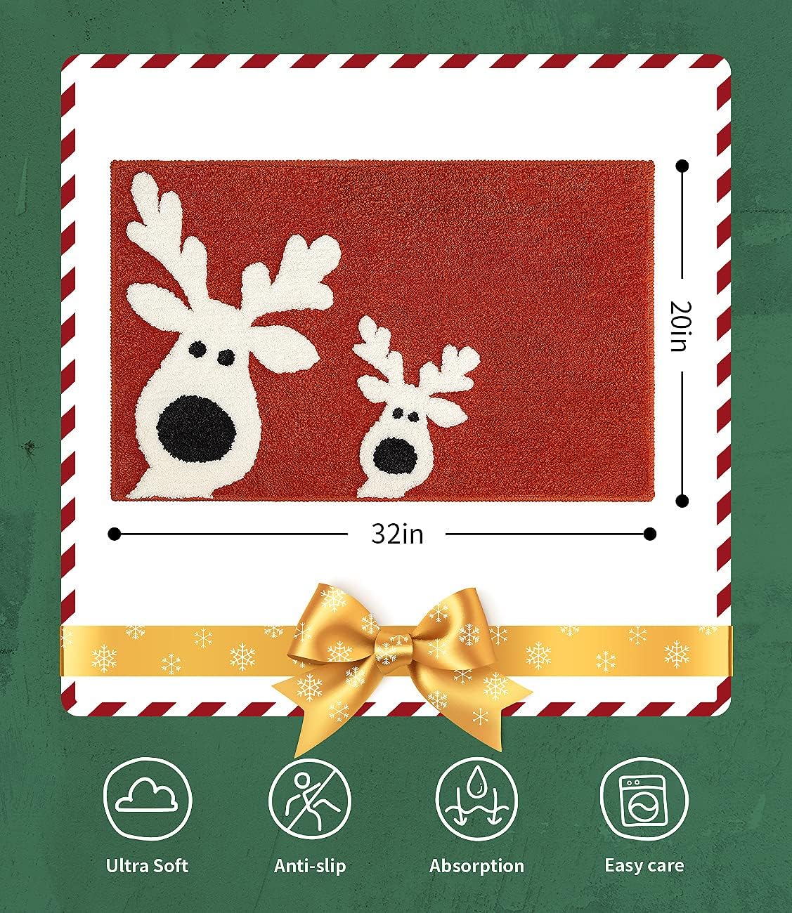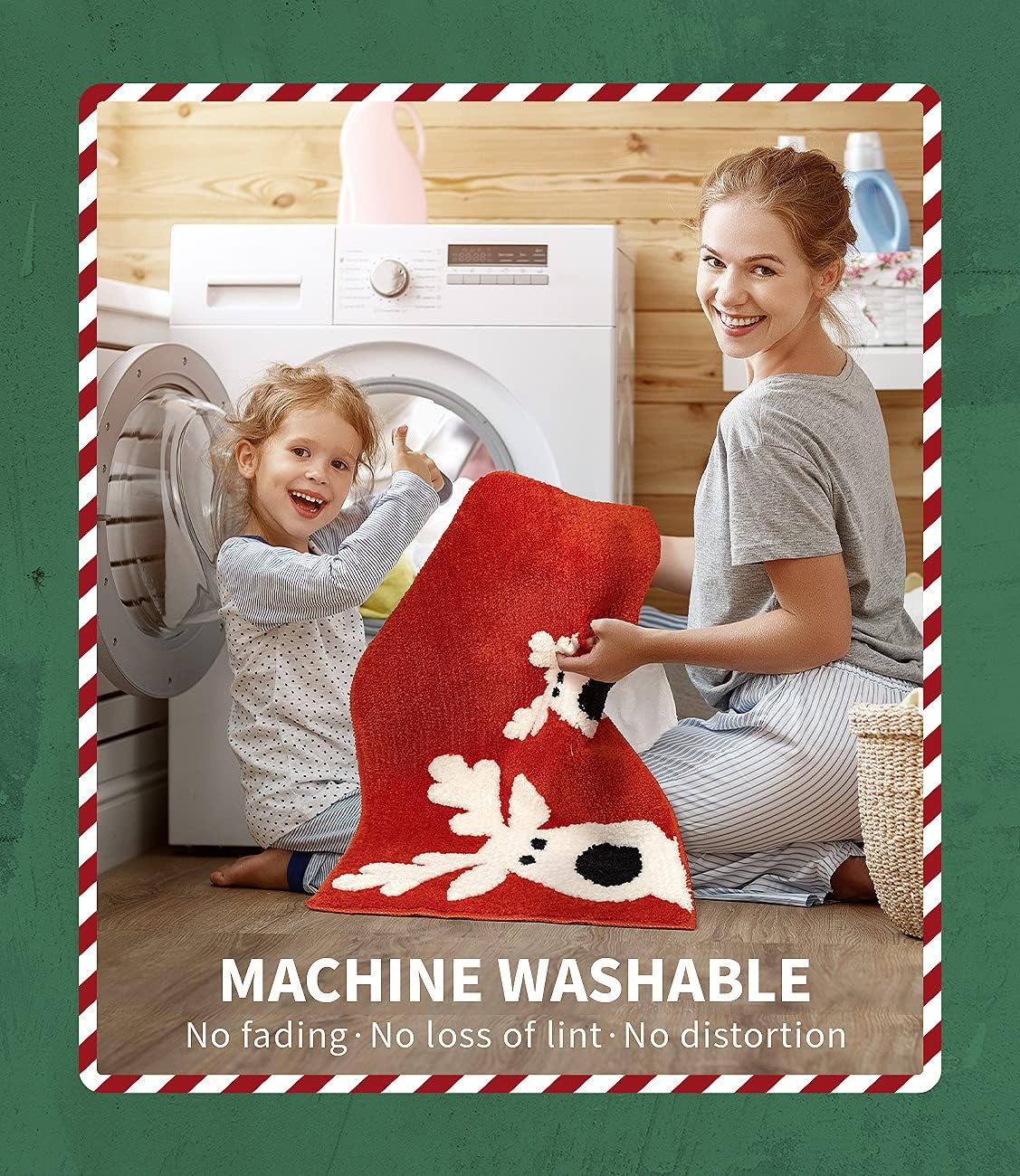 Decoración vibrante: el divertido tapete le da un hermoso elemento de decoración navideña a tu baño. También se puede utilizar como felpudo de baño, tapete de interior, lavandería, dormitorio, sala de estar, alfombra de cocina.