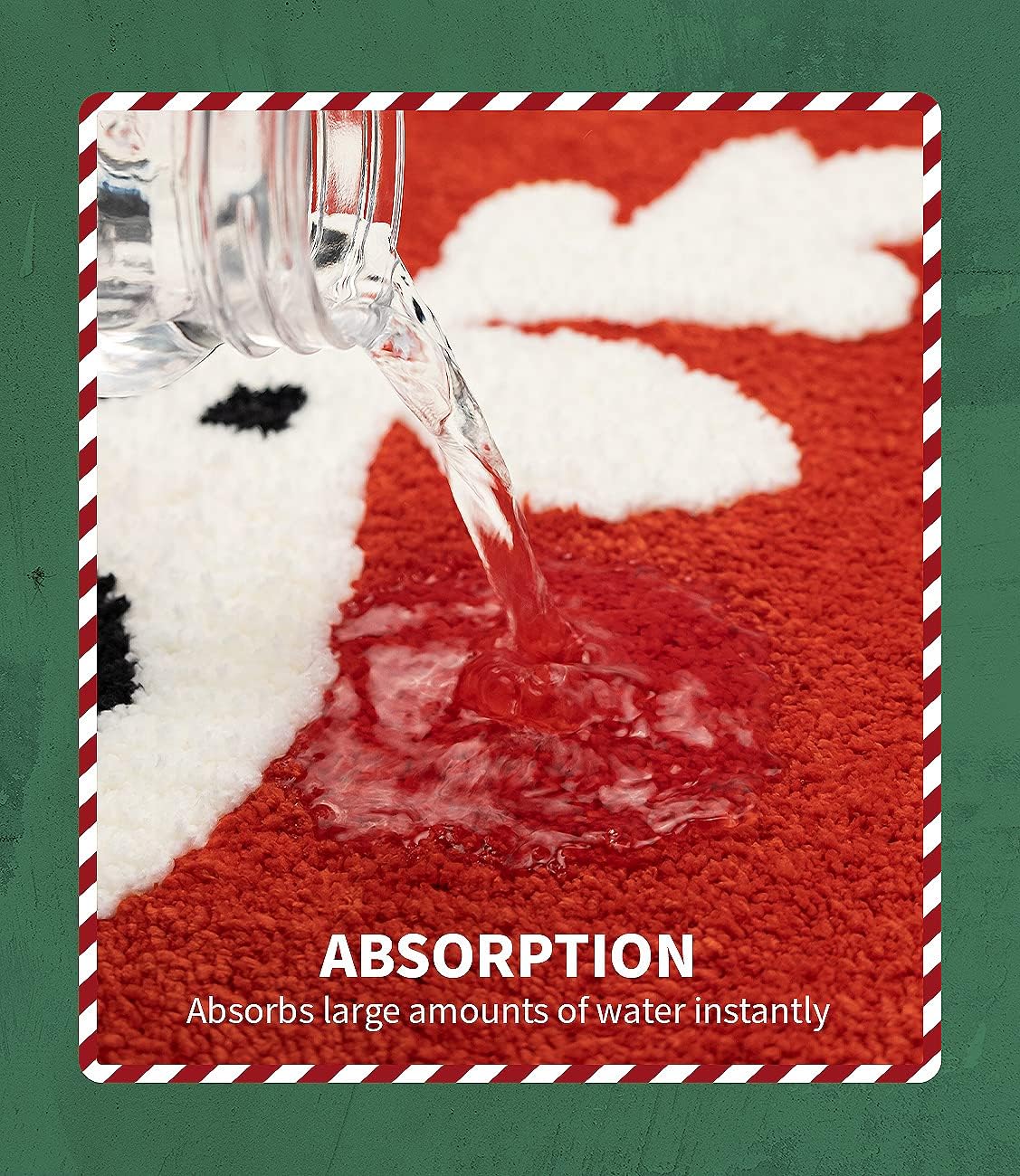 Horneado antideslizante: la parte inferior de las alfombras de baño de Navidad está hecha de TPR, tiene un buen efecto en el baño resbaladizo. Más estable y más seguro para niños y ancianos. Aviso: Mantén seca la parte inferior de la alfombra. El agua debajo de la alfombra de baño puede hacer que se deslice.