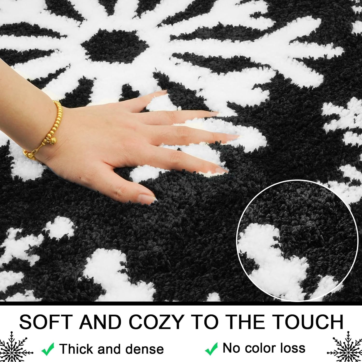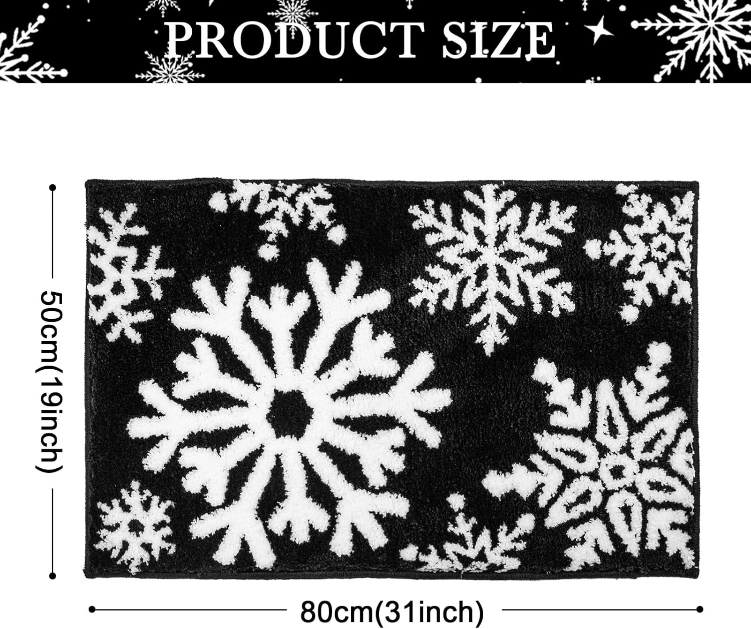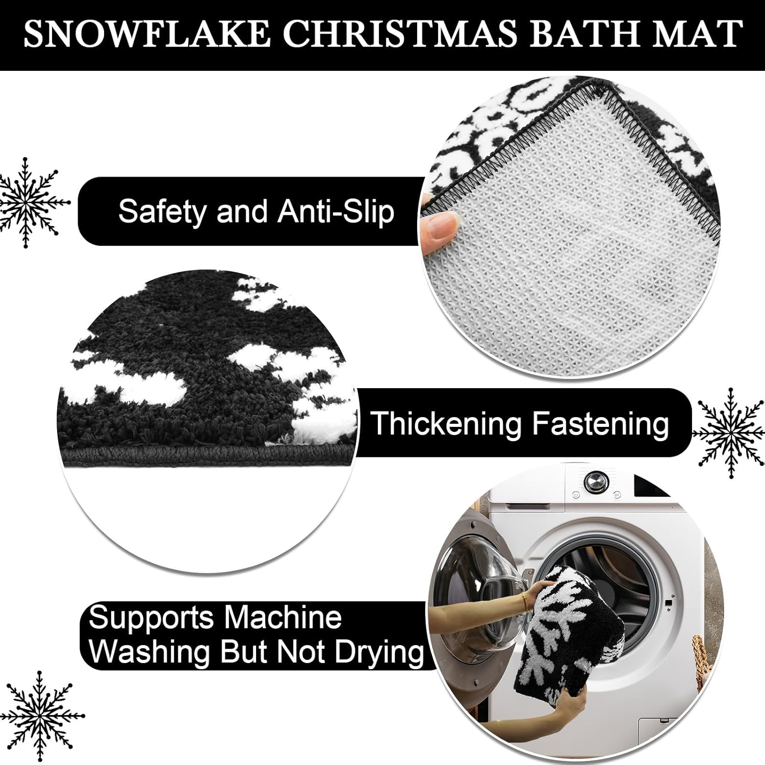 Absorbente y antideslizante: el tapete de baño de Navidad con copos de nieve negro puede absorber el agua rápidamente; la parte trasera antideslizante está hecha de caucho termoplástico que garantiza la estabilidad y evita el desplazamiento y el deslizamiento, incluso en condiciones húmedas.