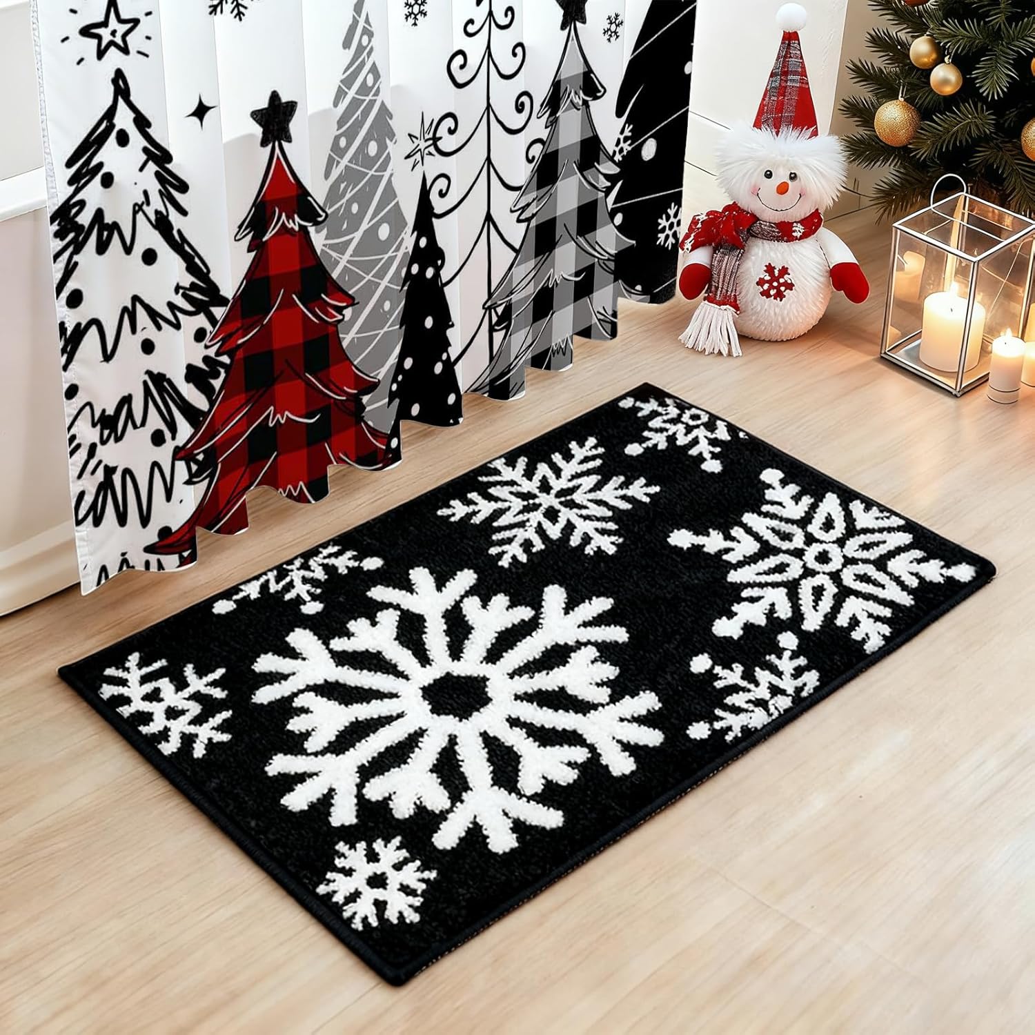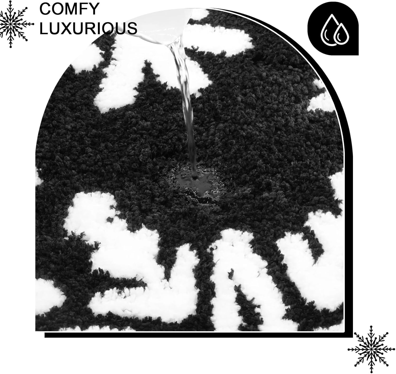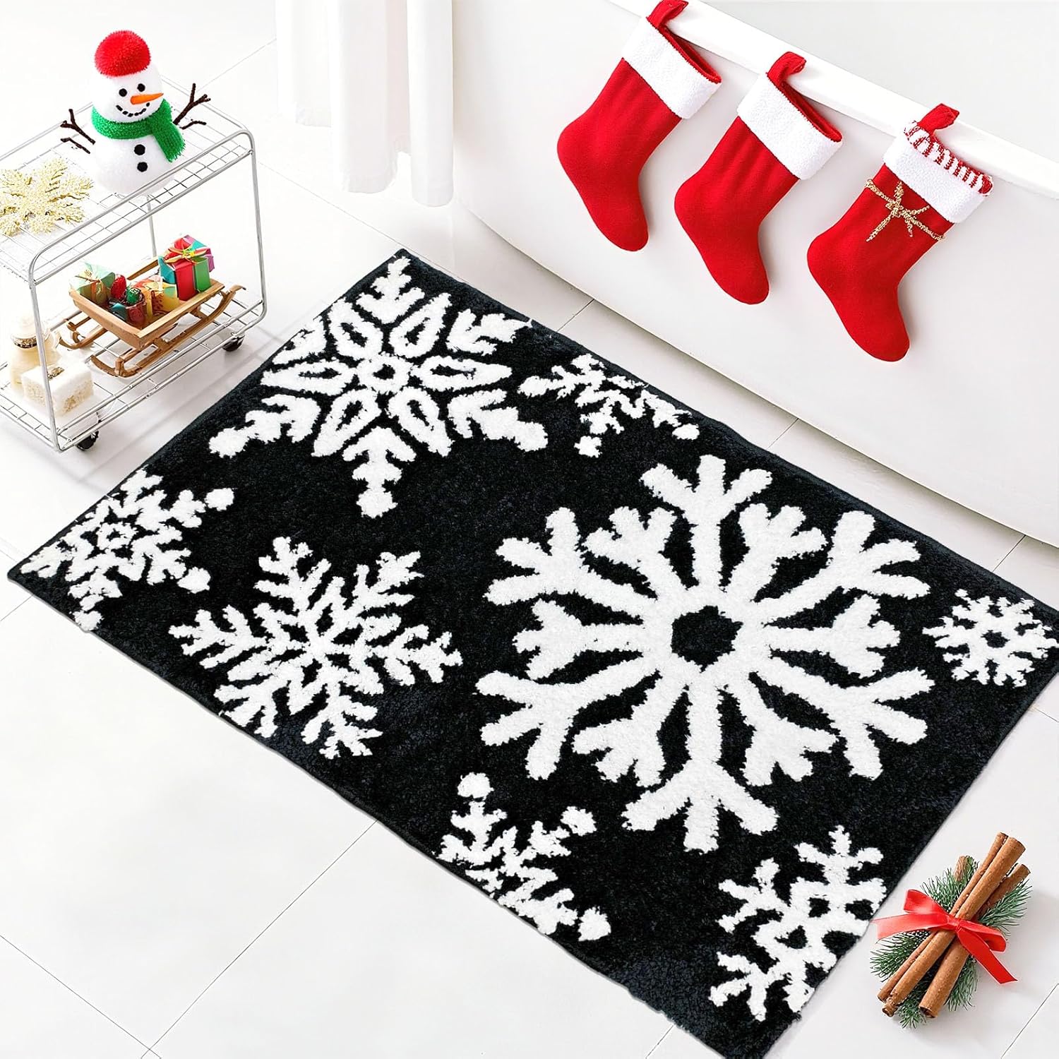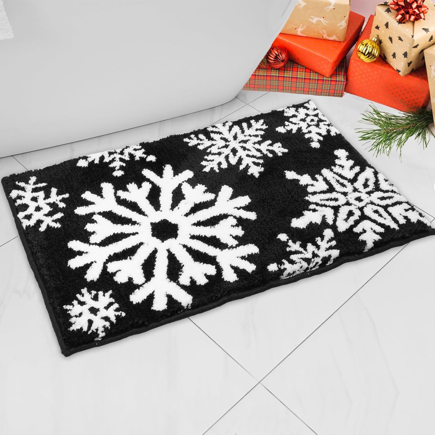 Absorbente y antideslizante: el tapete de baño de Navidad con copos de nieve negro puede absorber el agua rápidamente; la parte trasera antideslizante está hecha de caucho termoplástico que garantiza la estabilidad y evita el desplazamiento y el deslizamiento, incluso en condiciones húmedas.