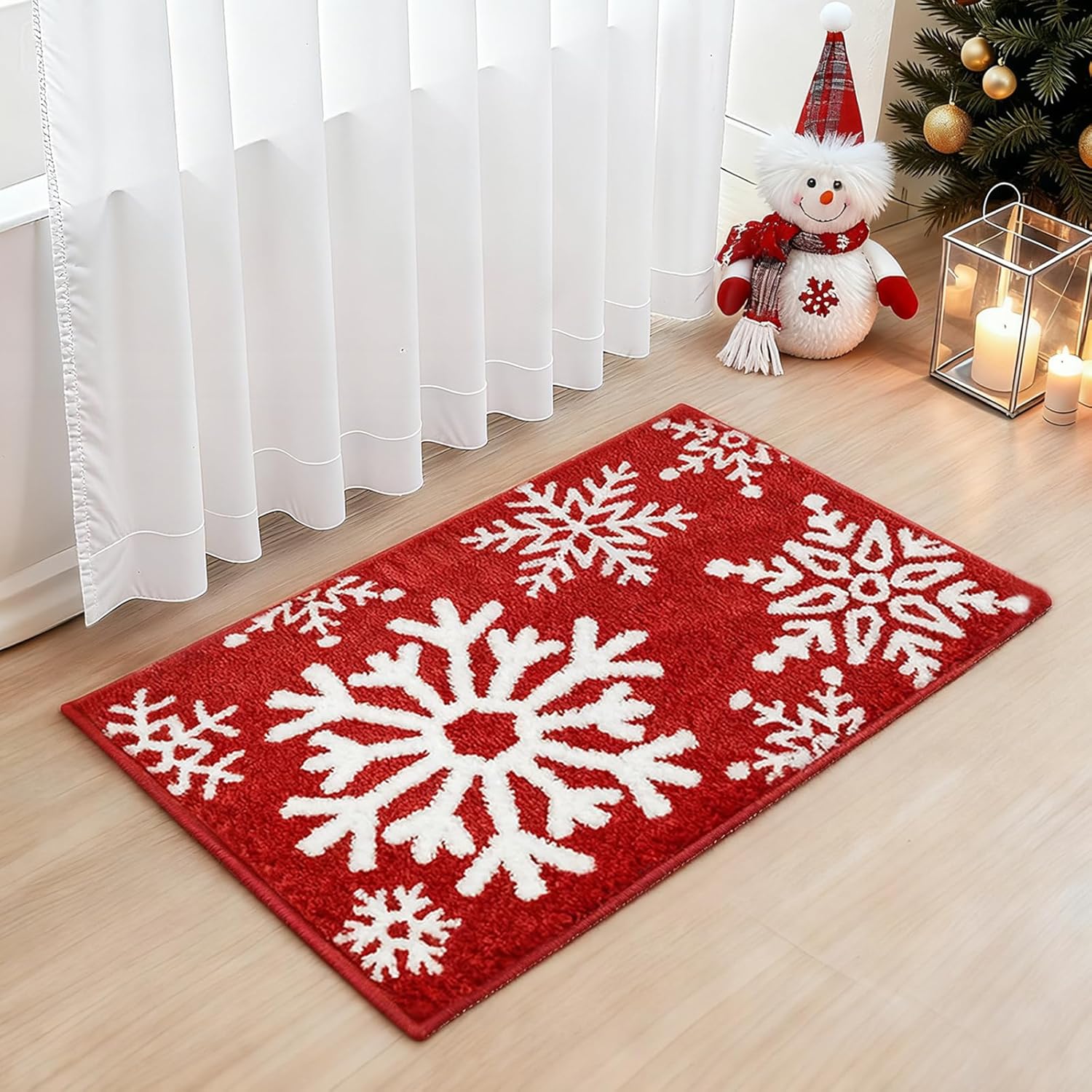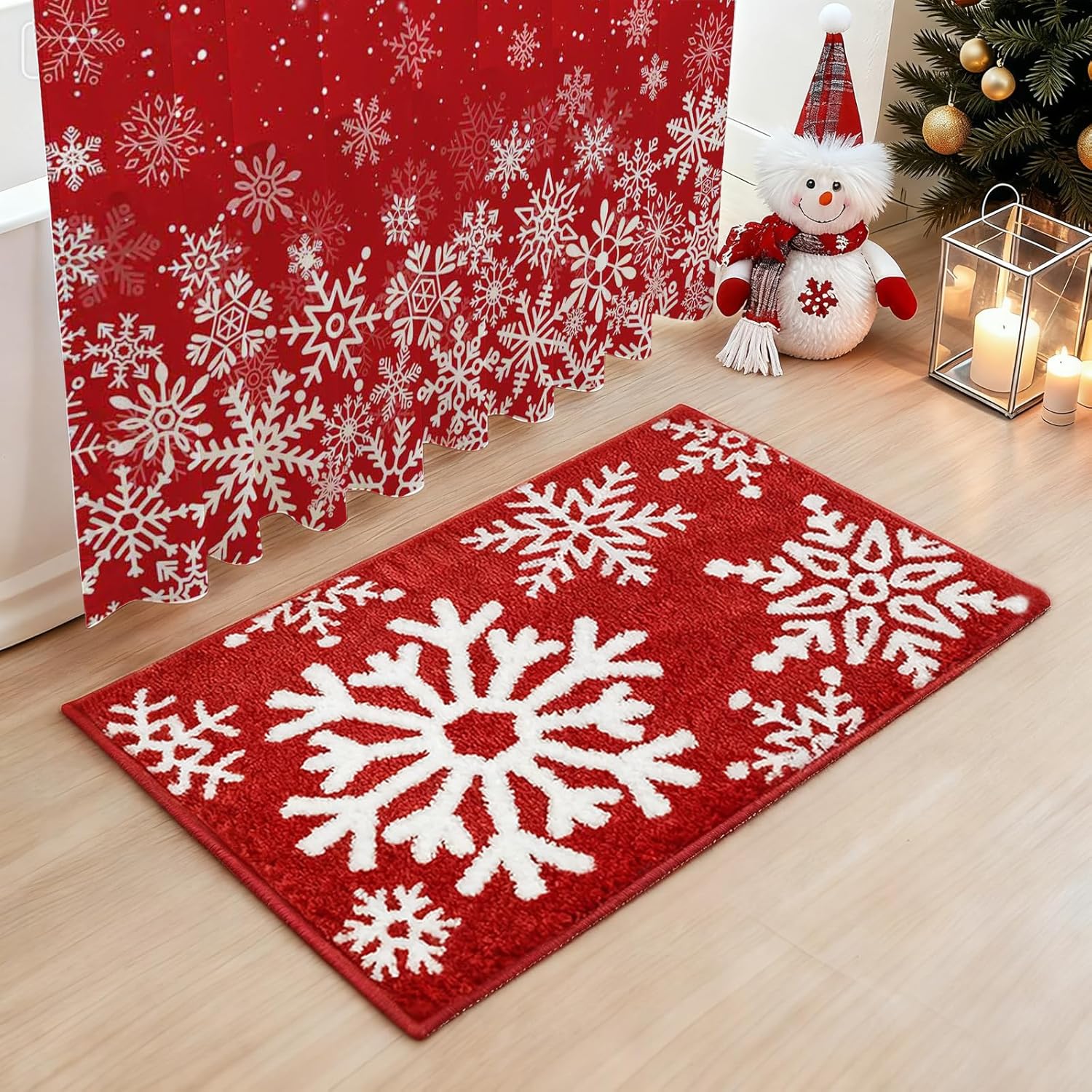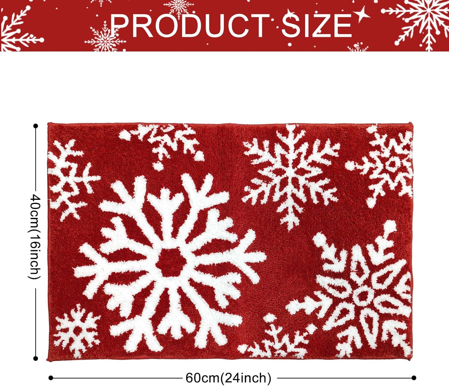 Absorbente y antideslizante: la alfombra de baño de Navidad de copo de nieve rojo puede absorber el agua rápidamente; el respaldo antideslizante está hecho de TPR que garantiza la estabilidad y evita el desplazamiento y el deslizamiento, incluso en condiciones húmedas.
