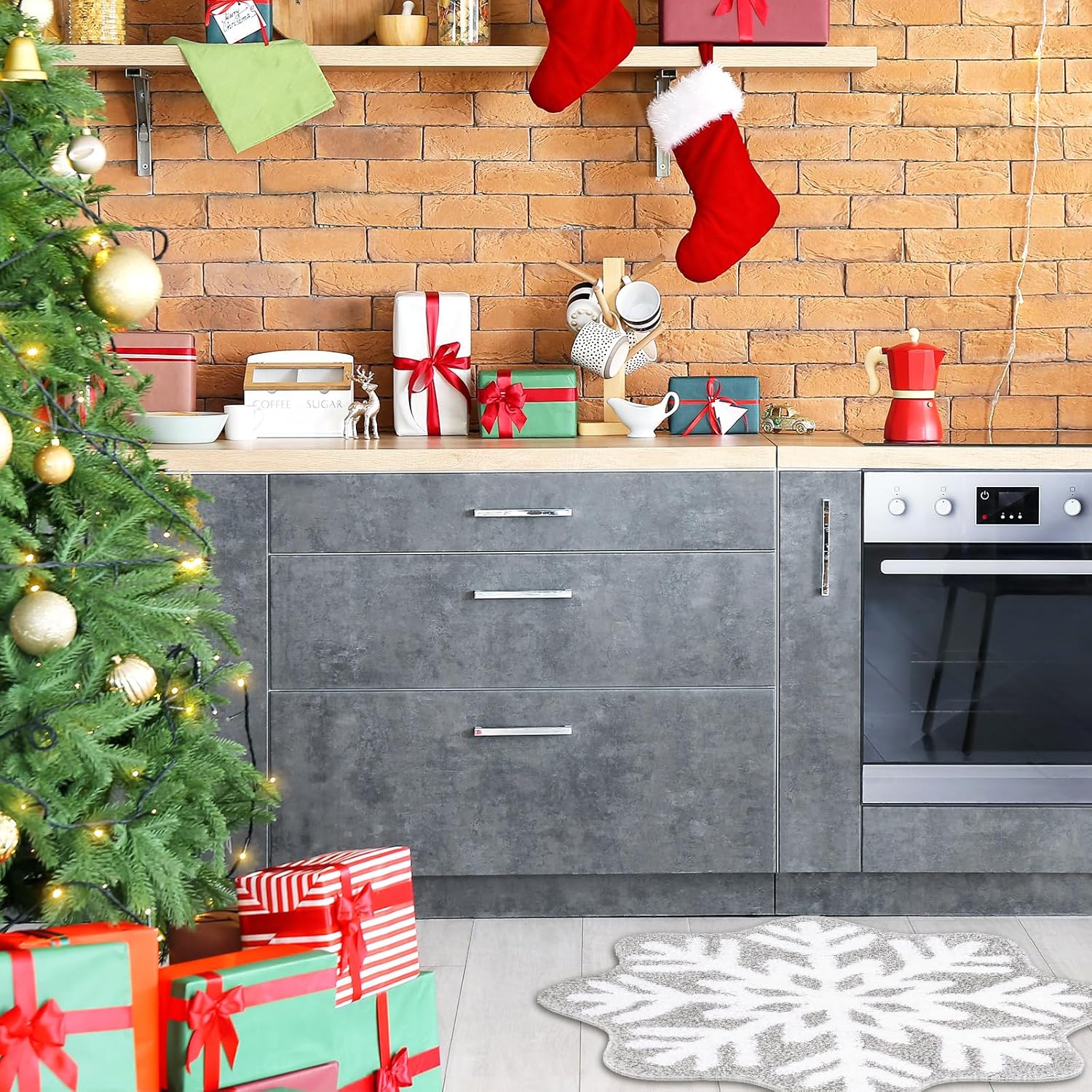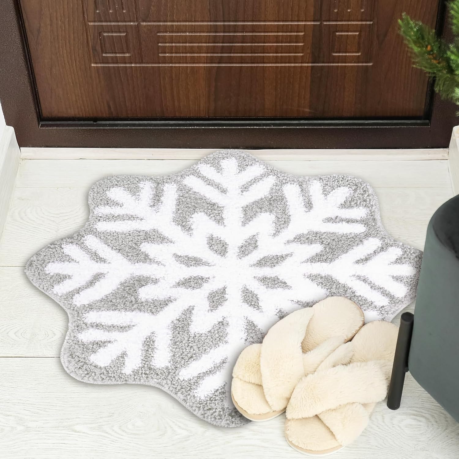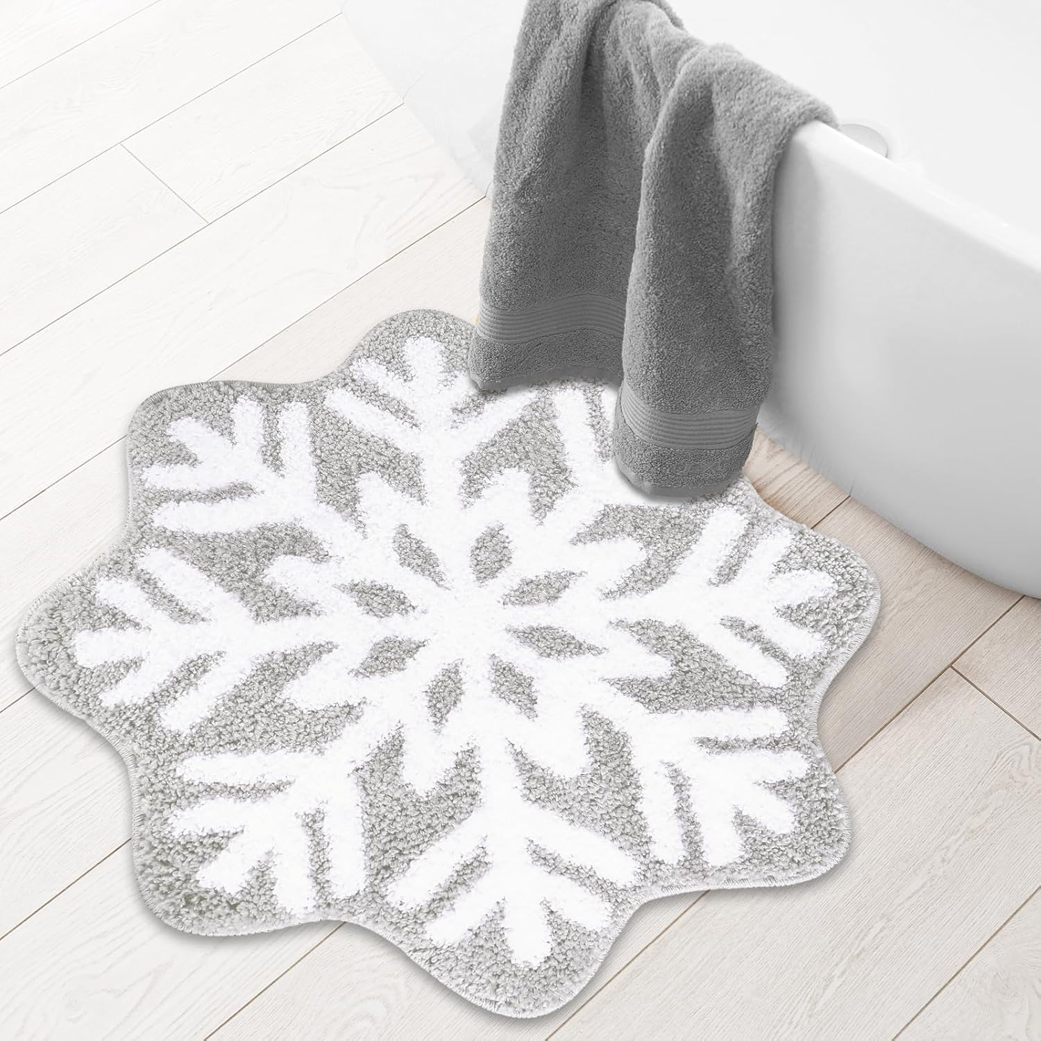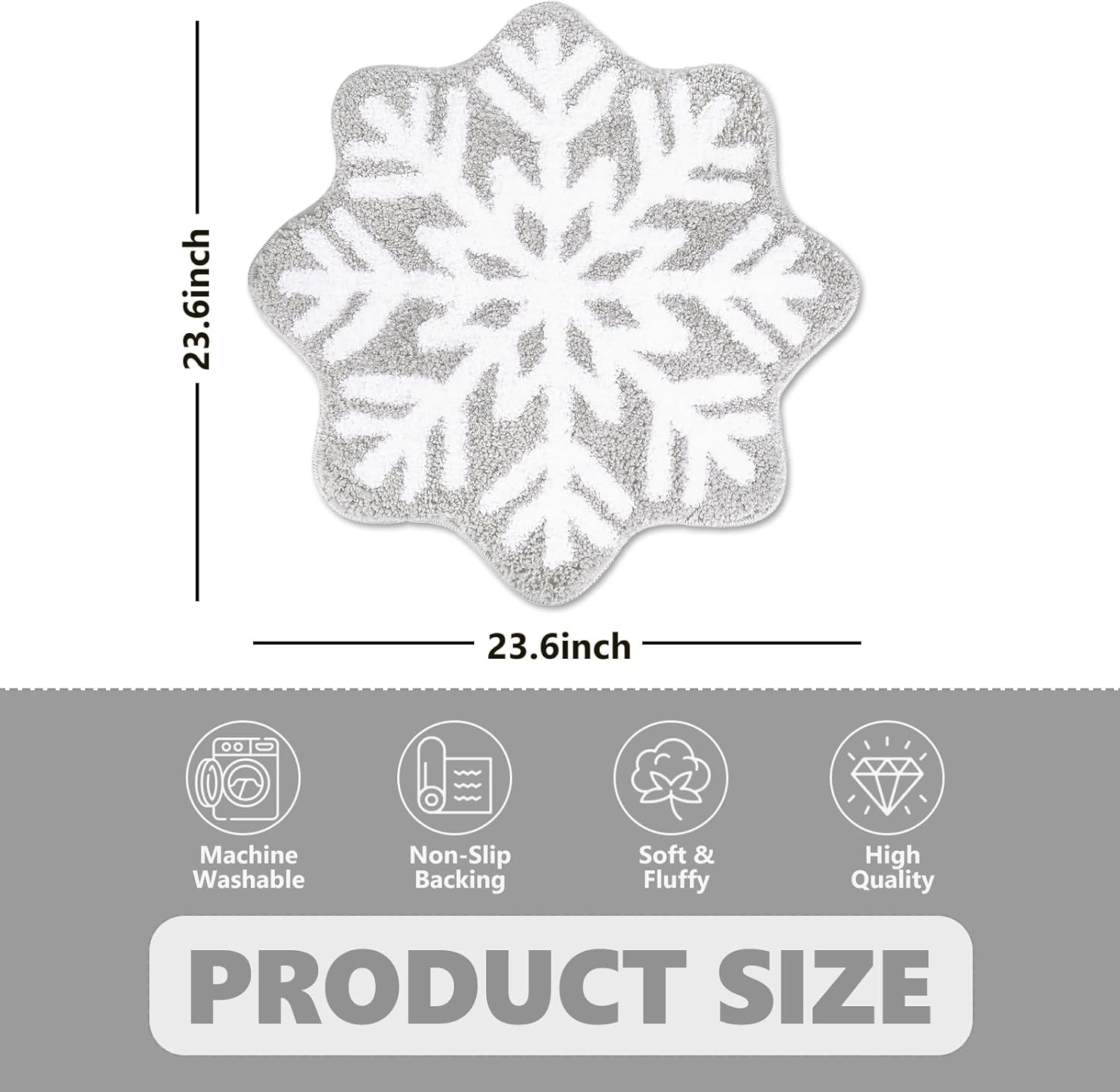 Diseño delicado: nuestra alfombra de baño copetuda adopta el tema de Navidad, diseñada en patrón de copo de nieve gris, exquisito y llamativo, que creará un ambiente festivo para tu hogar o fiesta