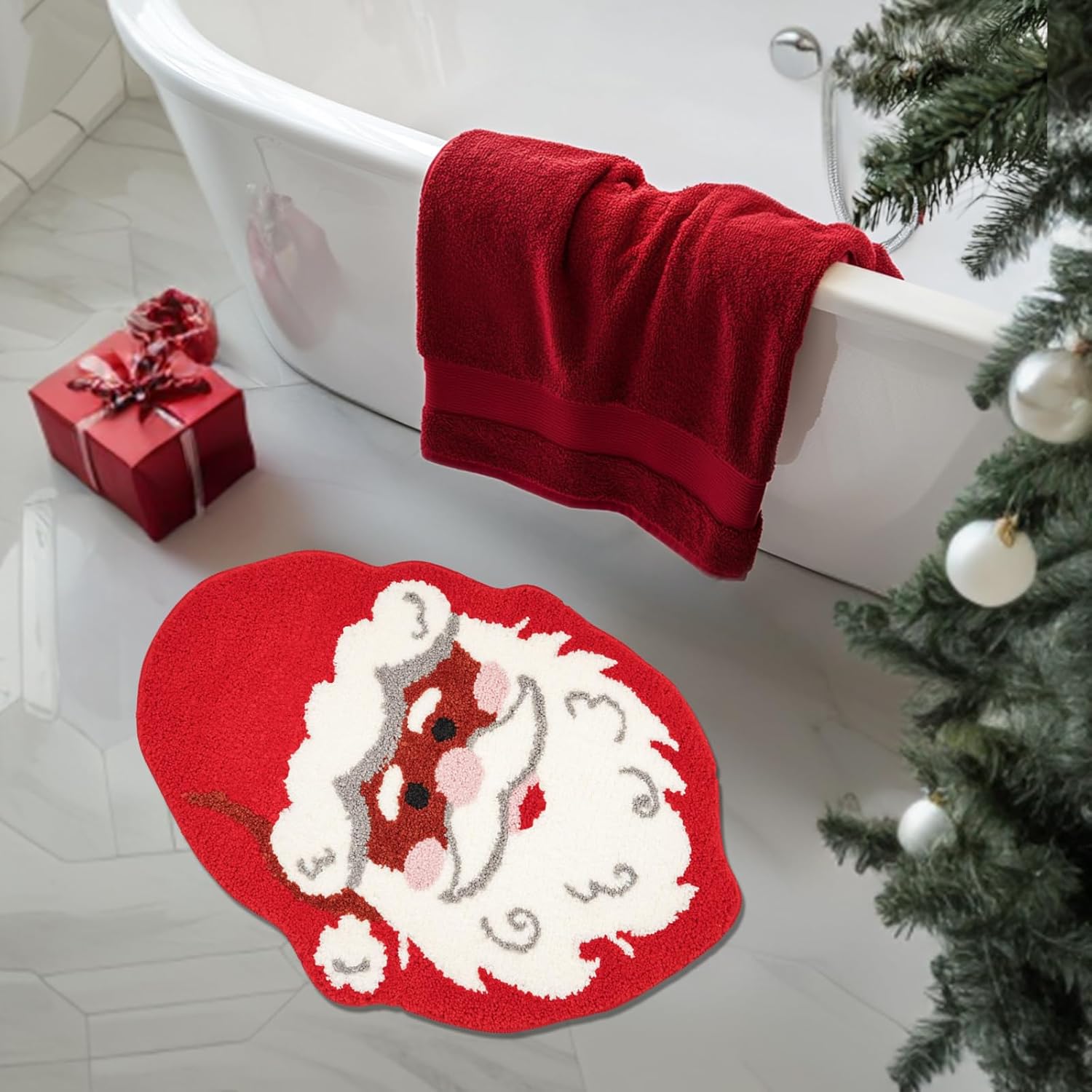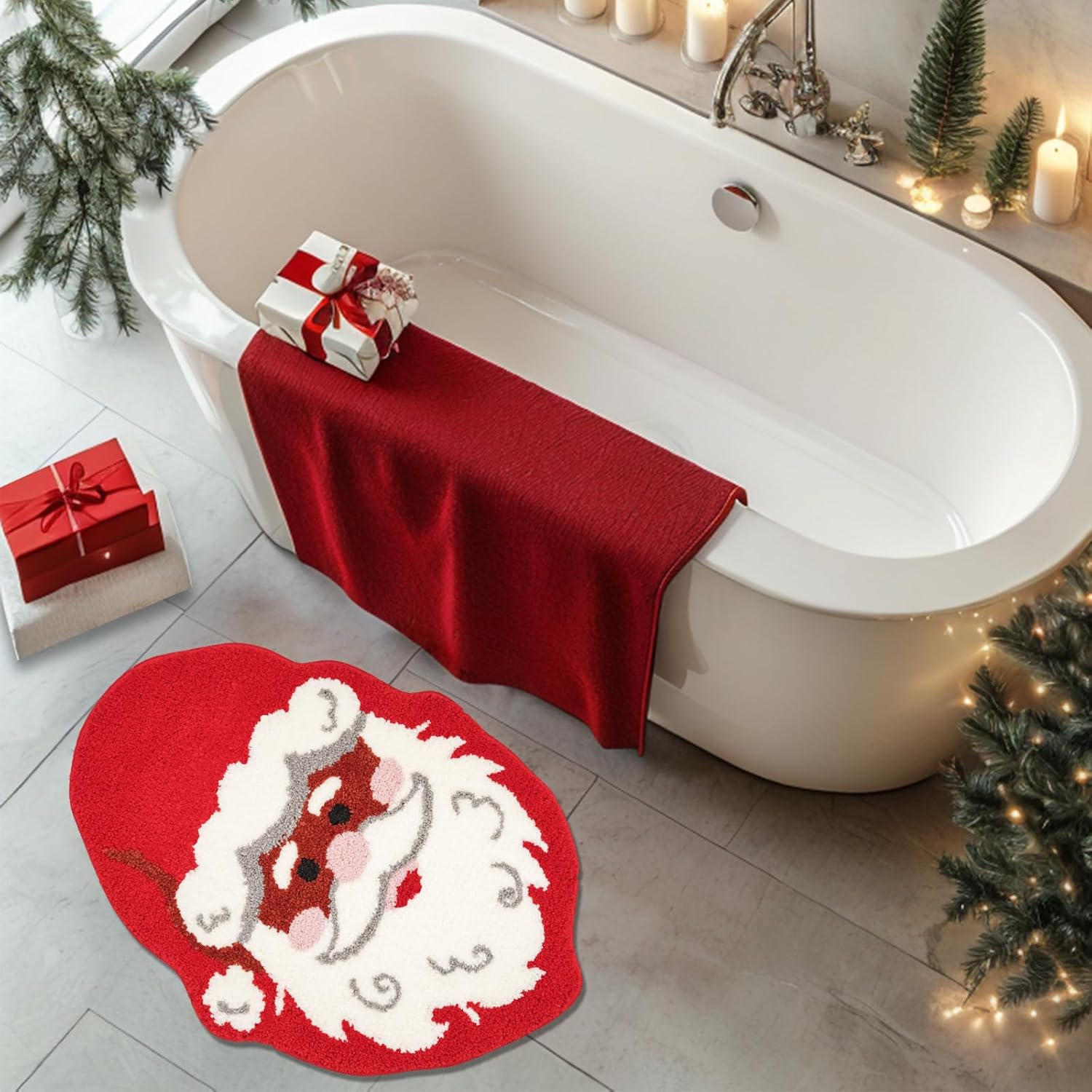 Diseño único: el tapete de baño de Navidad adopta el tema de Navidad, que resalta el ambiente festivo y es adecuado para su uso como decoración de Navidad o regalo.