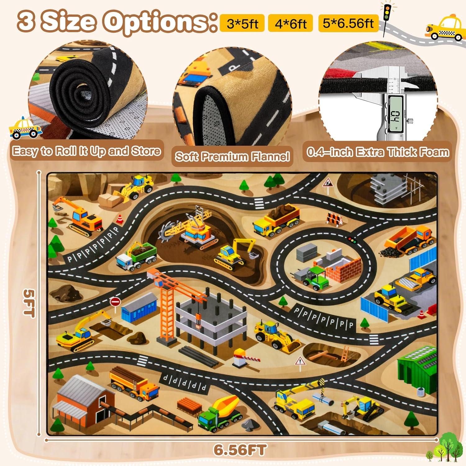 Diseño único: esta alfombra de juego de construcción es perfecta para niños que disfrutan jugando con excavadoras, mezcladores, transportistas y camiones.