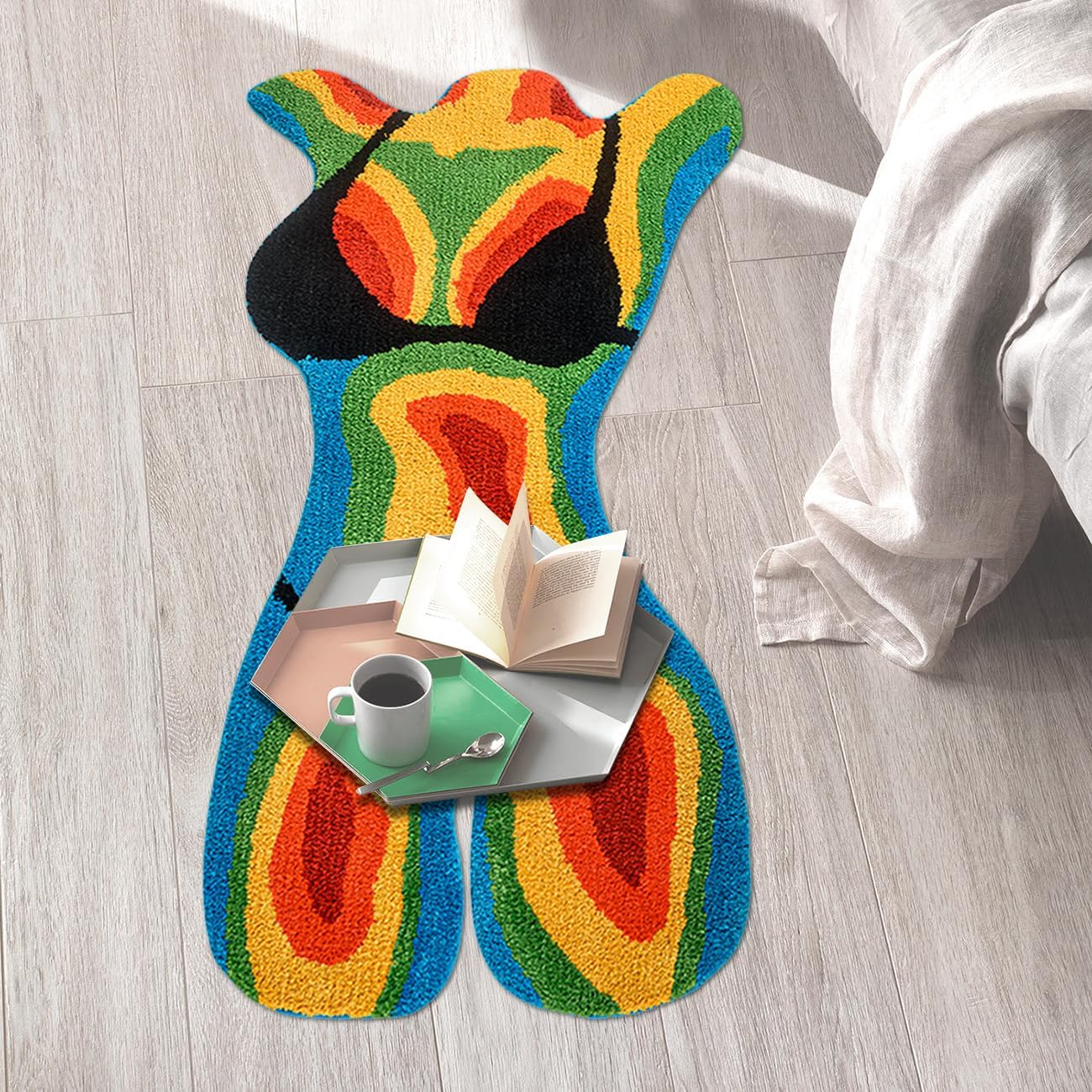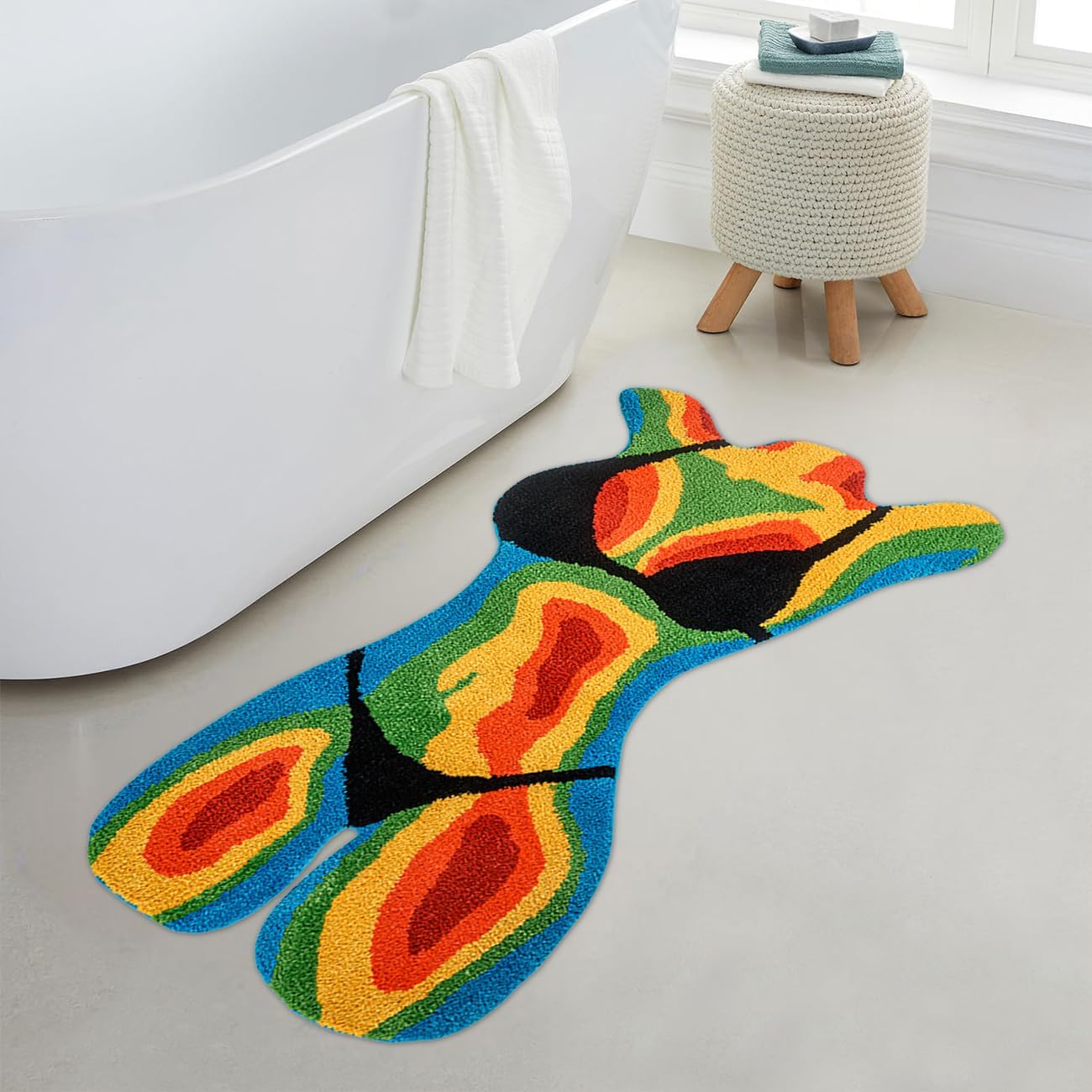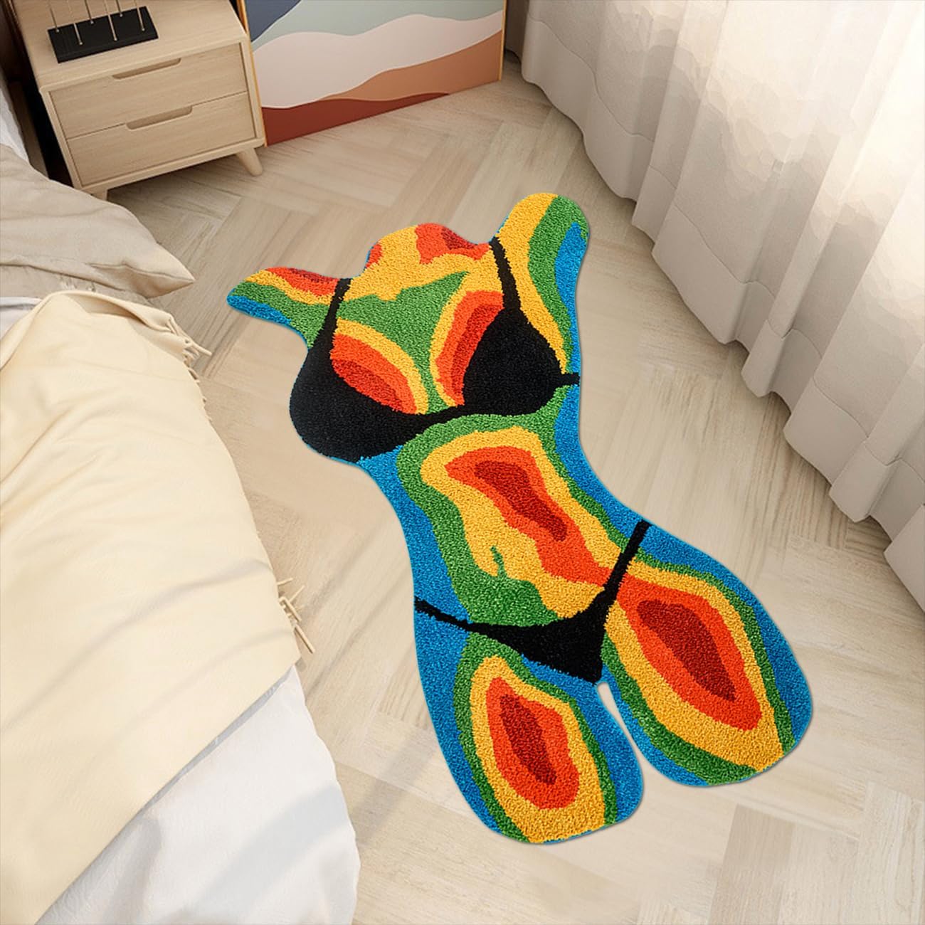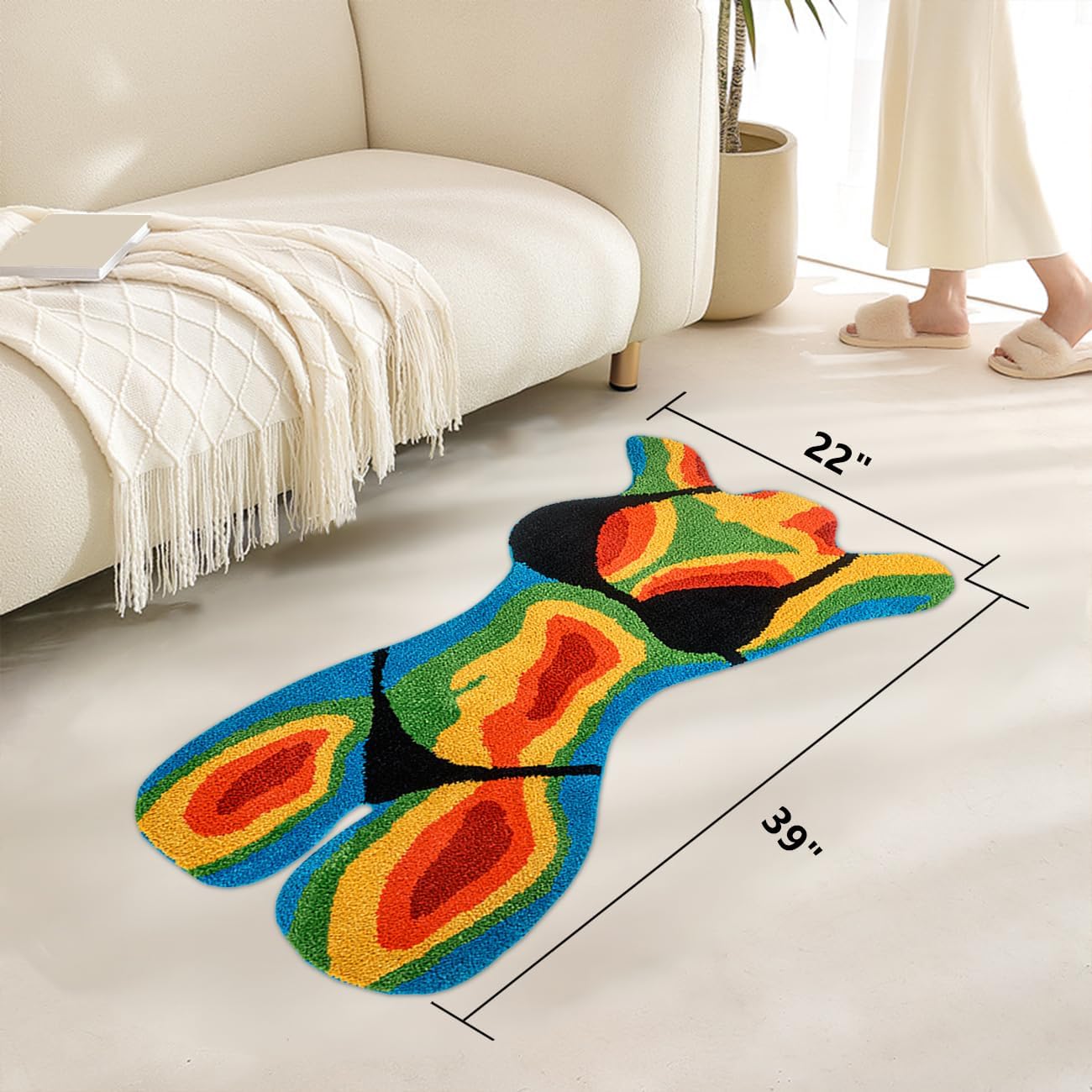 –Divertida alfombra bikini para niña– Añade un toque divertido a tu hogar con esta alfombra de bikini para niña. Disponible en dos tamaños: 1.8 x 3.3 (aprox. 100.6 cm) y 2.3 x 4 (aprox. 121.9 cm). Su diseño único aporta humor y ambiente a cualquier espacio, por lo que es una pieza destacada para aquellos que aman la decoración funky