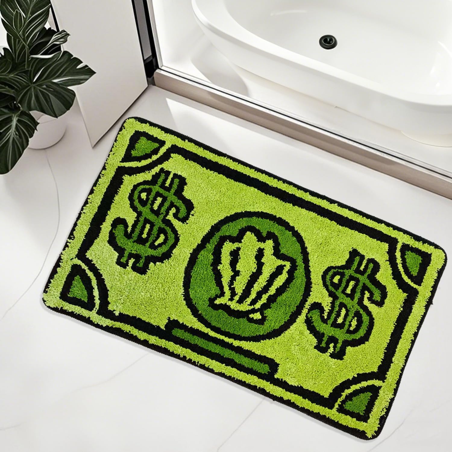 Divertida alfombra de dinero para dormitorio: añade un toque divertido a cualquier espacio con nuestra alfombra de billetes de dólar de dibujos animados. Perfecto para habitaciones de niños, dormitorios o baños, este tapete de 16 x 28 (aprox. 71.1 cm) combina humor y funcionalidad para alegrar tu decoración.