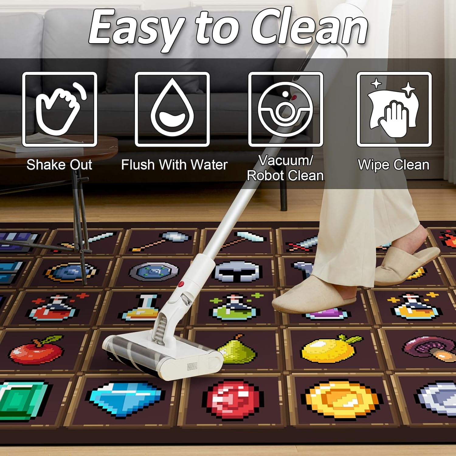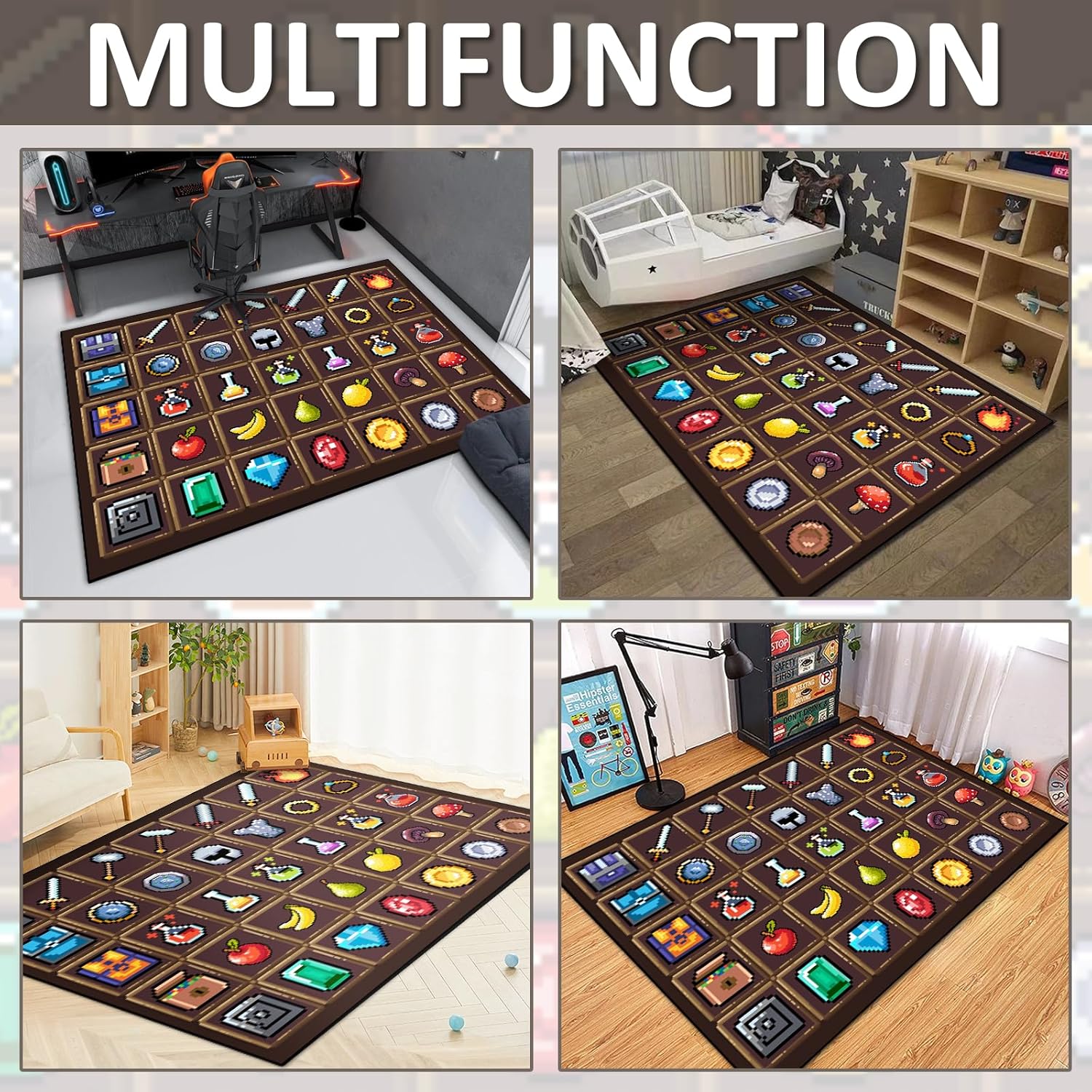 Alfombra temática Pixel Game: esta alfombra rectangular clásica cuenta con un diseño de juego de píxeles de bloques, perfecto para salas de juegos, dormitorios o espacios de estar.