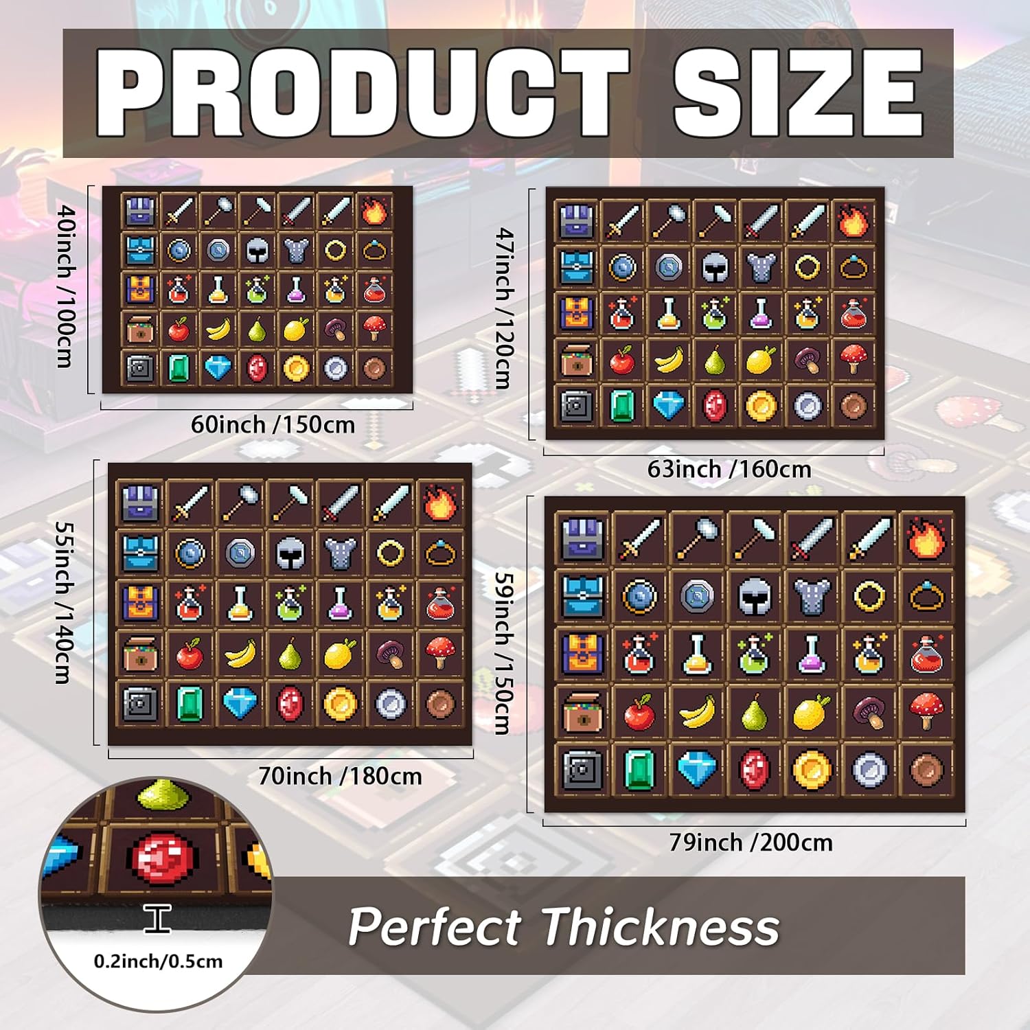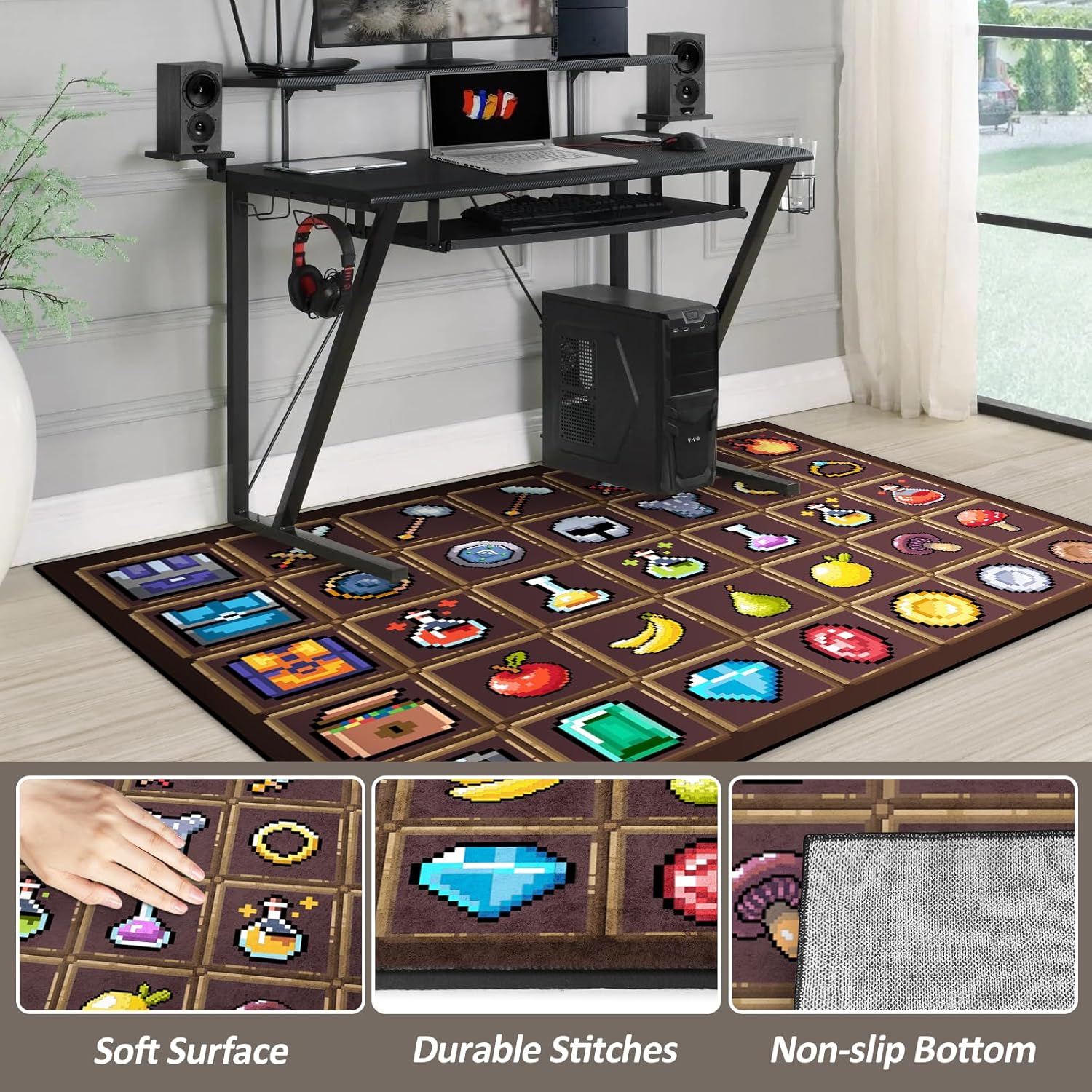 Gran regalo: las bonitas alfombras coloridas con estampado de píxeles hacen que tu habitación sea única y divertida. La alfombra es el regalo perfecto para tus amigos y familiares, especialmente para regalos para niños. Alfombra de juego Perfecta para salas de juegos, sala de videojuegos, sala de juegos de computadora.