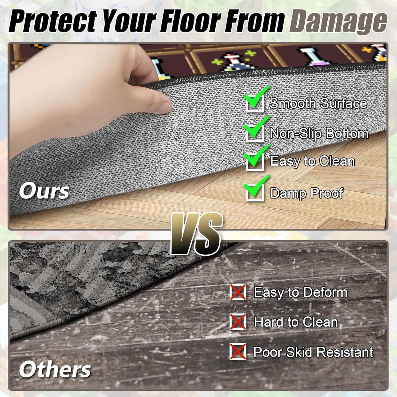 Antideslizante y seguro: la parte inferior antideslizante mejorada garantiza que la alfombra se mantenga segura en su lugar, proporcionando un ambiente seguro para familias y niños.