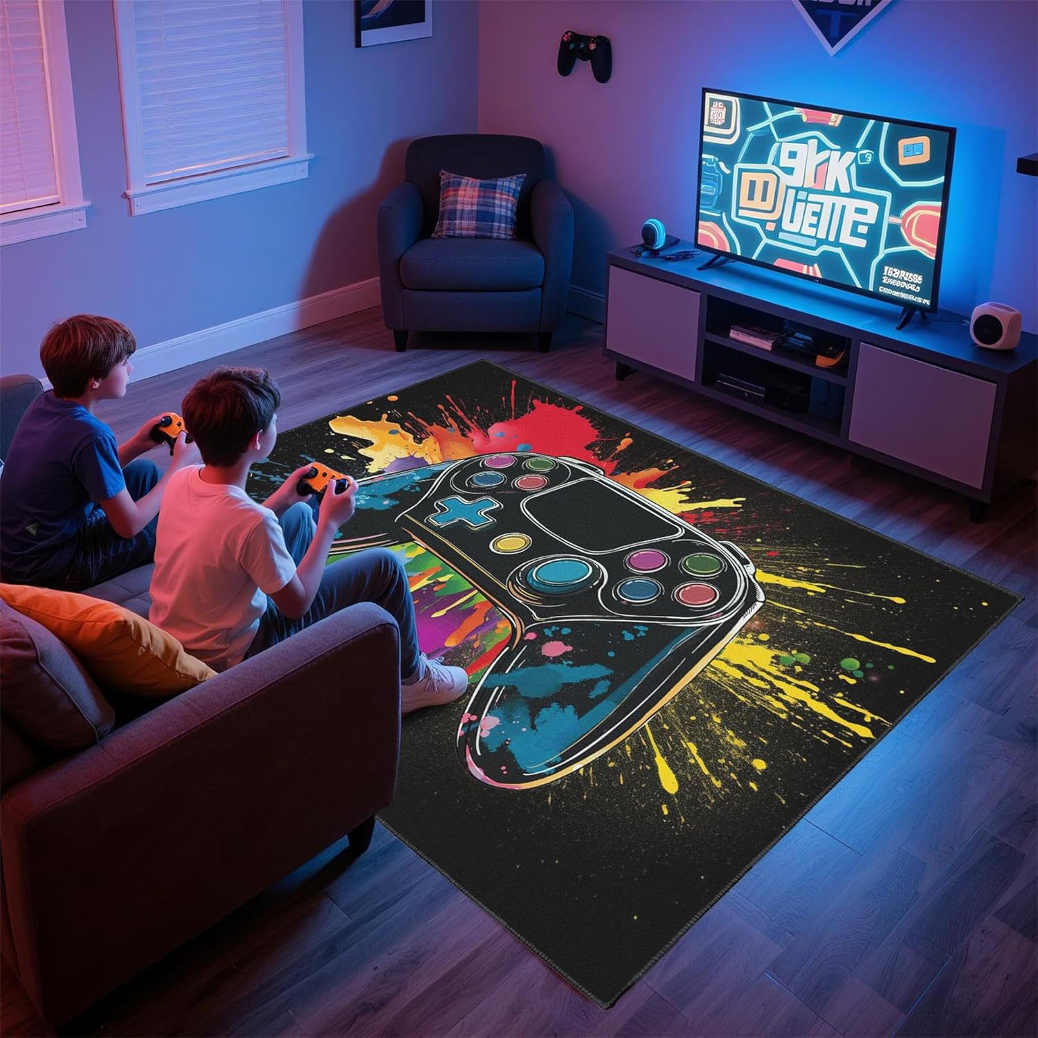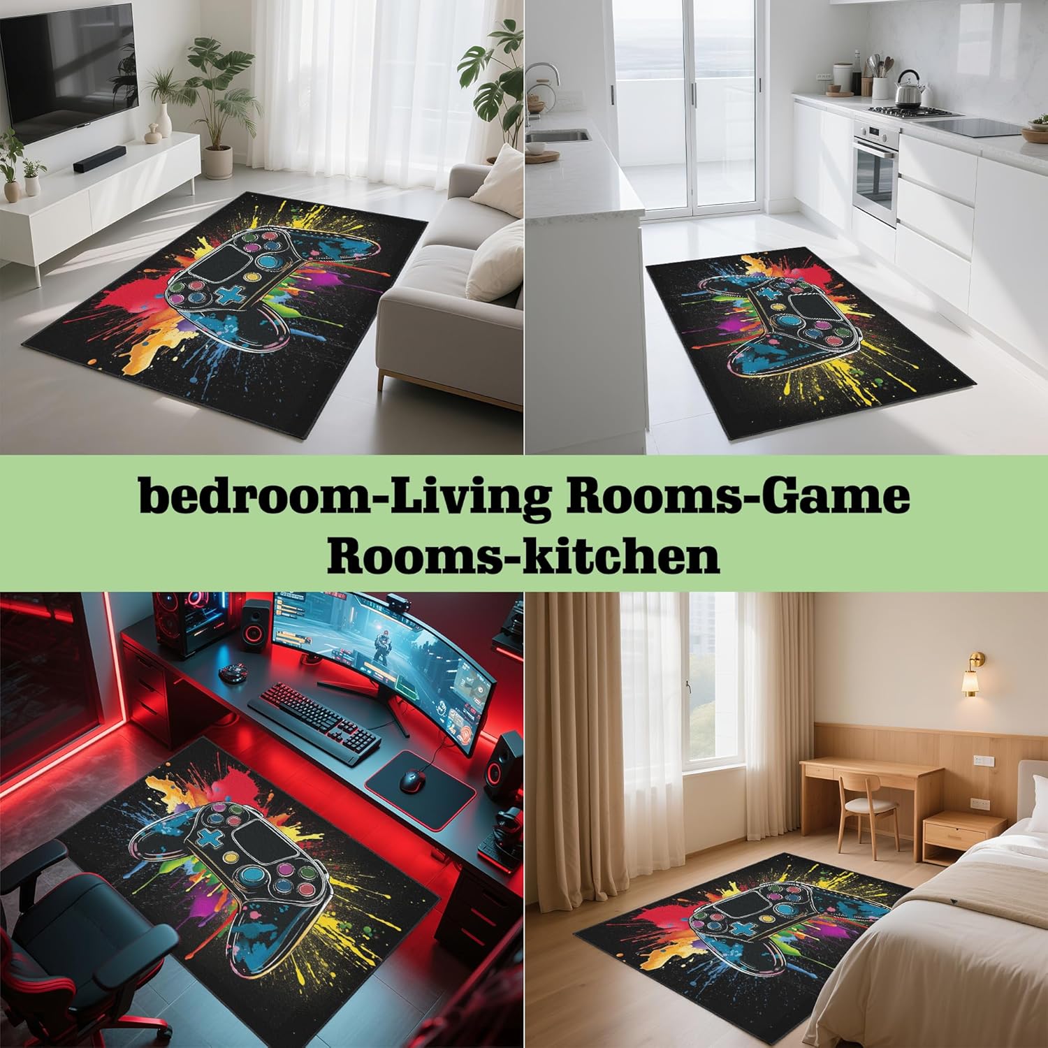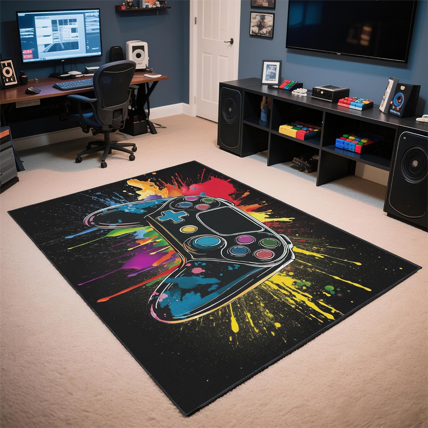 Alfombra de juegos con impresión de controlador de juegos: esta alfombra de juegos cuenta con impresiones de controlador de juegos, mejorando las habitaciones de los niños o salas de juegos como una llamativa decoración de sala de juegos. Añade un ambiente divertido a cualquier espacio de juego, mezclando estilo con funcionalidad