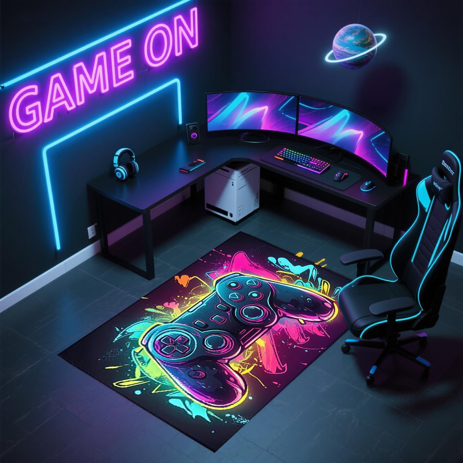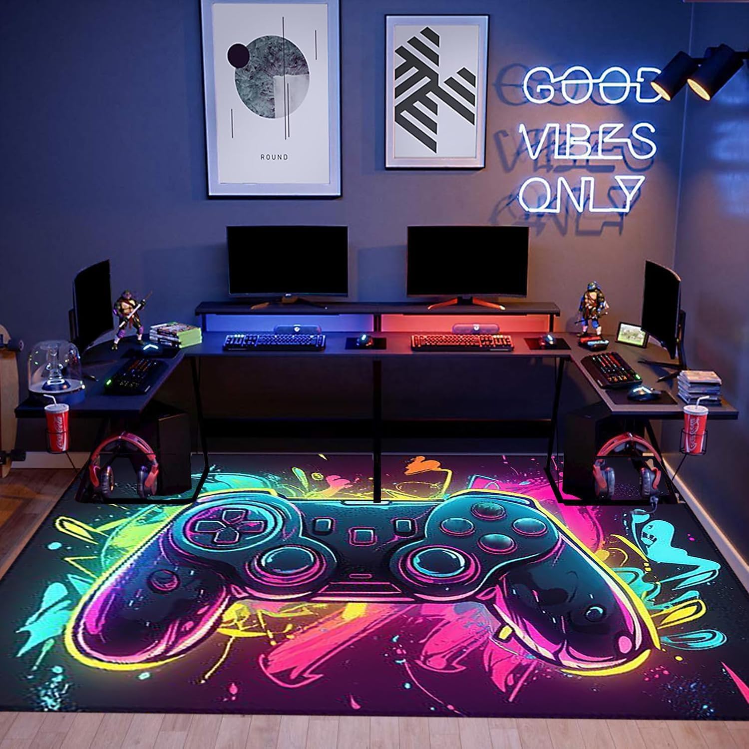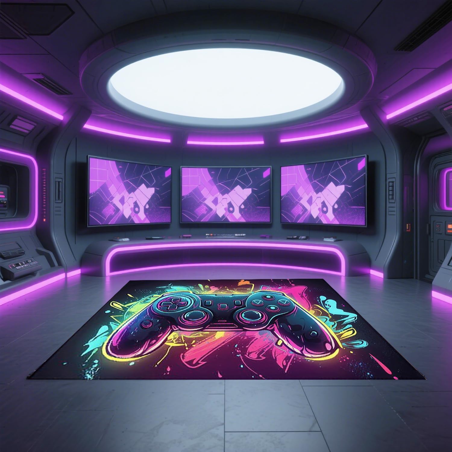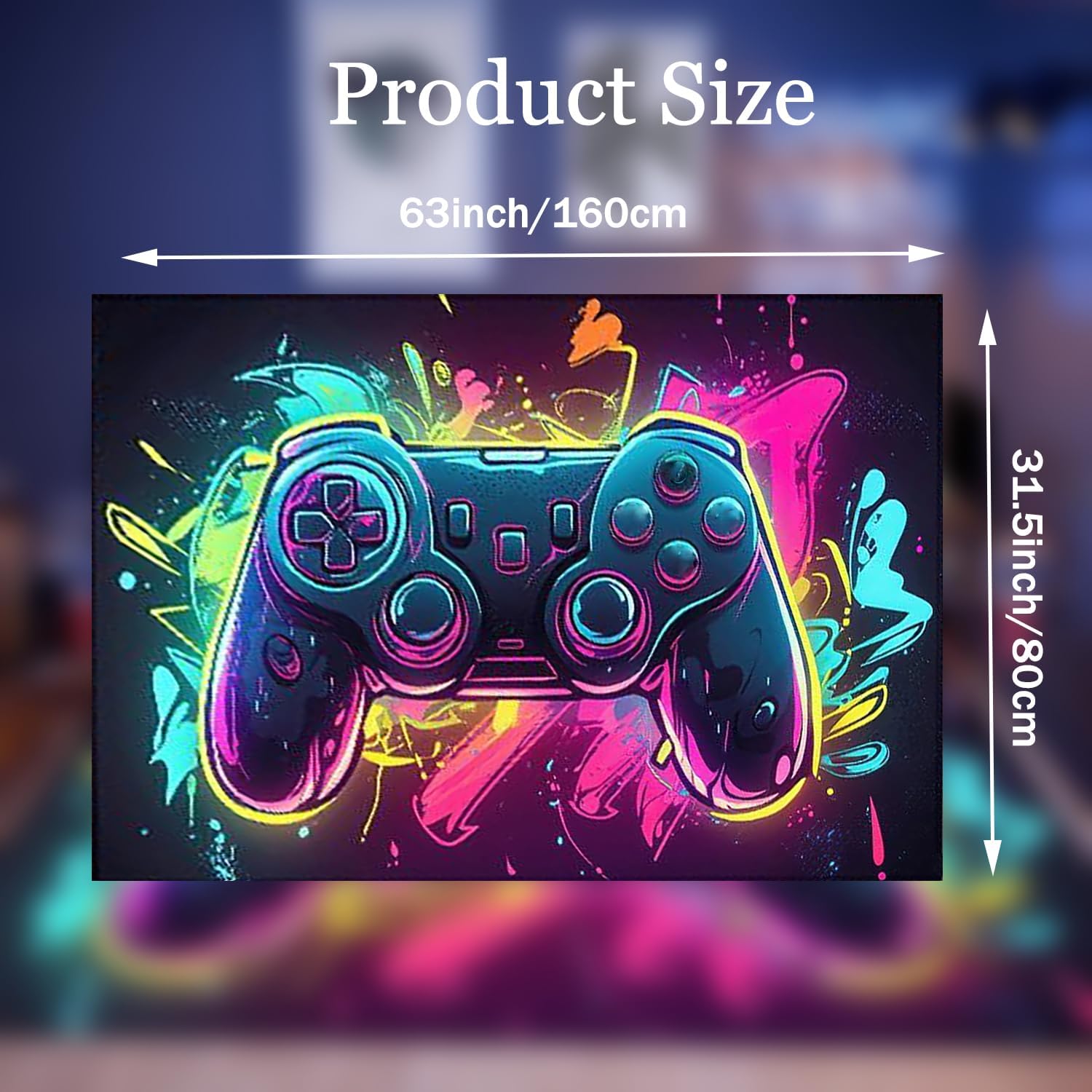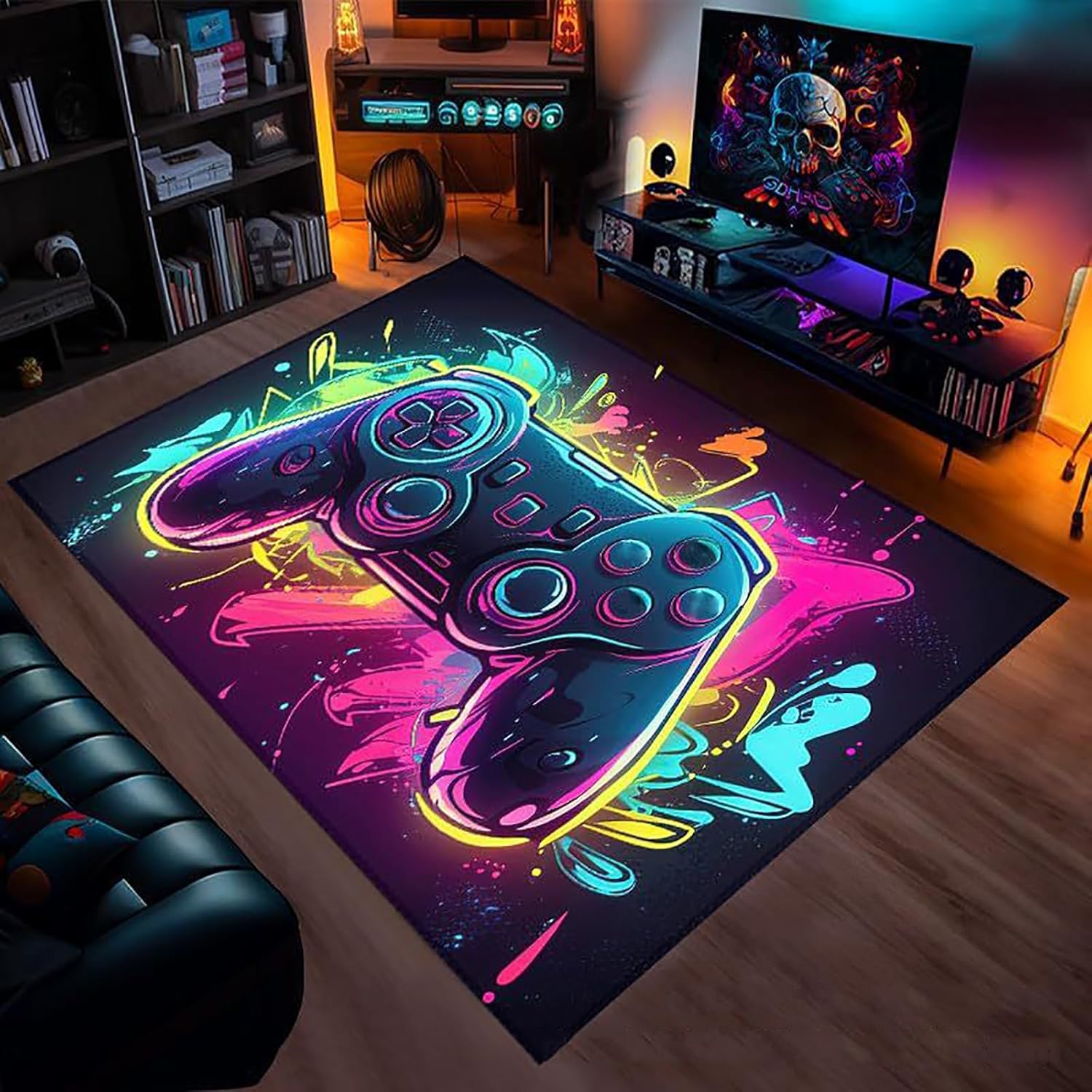 Alfombra para juegos: la alfombra de juego adopta tecnología de impresión 3D, y los gráficos del controlador de juego hacen que tu habitación sea única e interesante, logrando patrones claros, colores brillantes y diseños atrevidos. Es un accesorio de sala de juegos que a tus hijos o esposo les gustará.