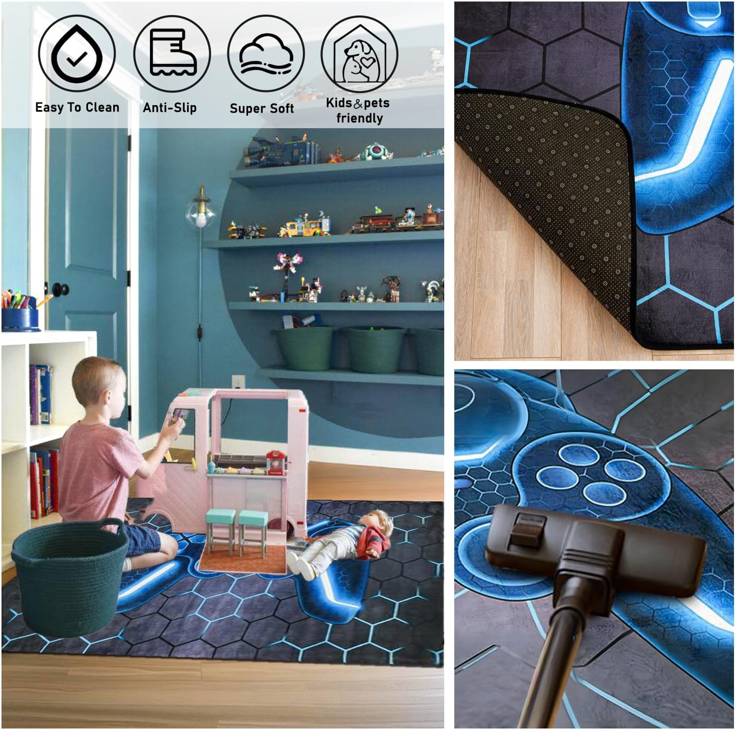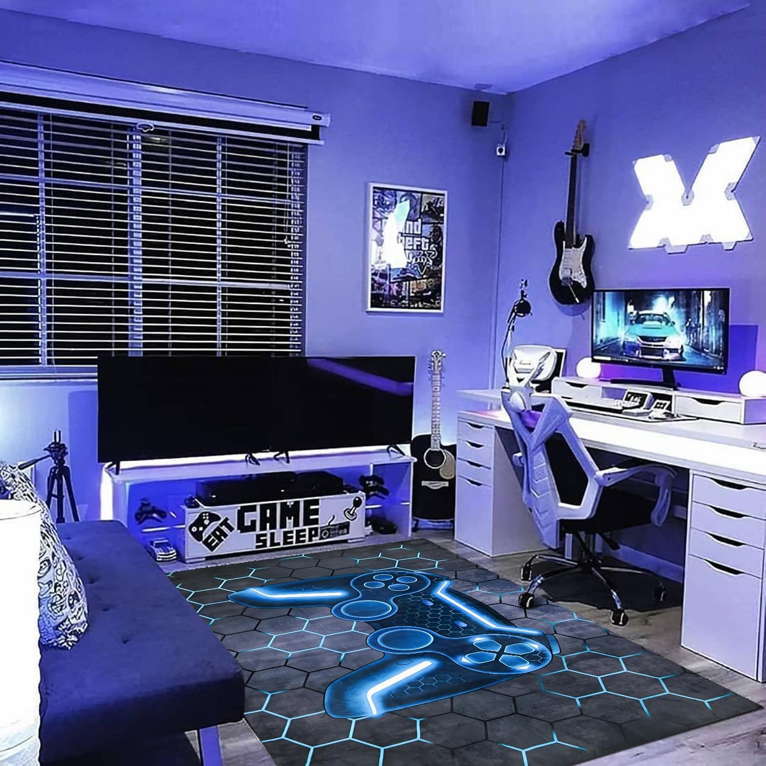 Mejora tu experiencia de juego con nuestra alfombra de juegos 3D, diseñada para habitaciones de niños, con un patrón brillante de gamepad para añadir un elemento genial a la decoración de cualquier habitación de jugadores.