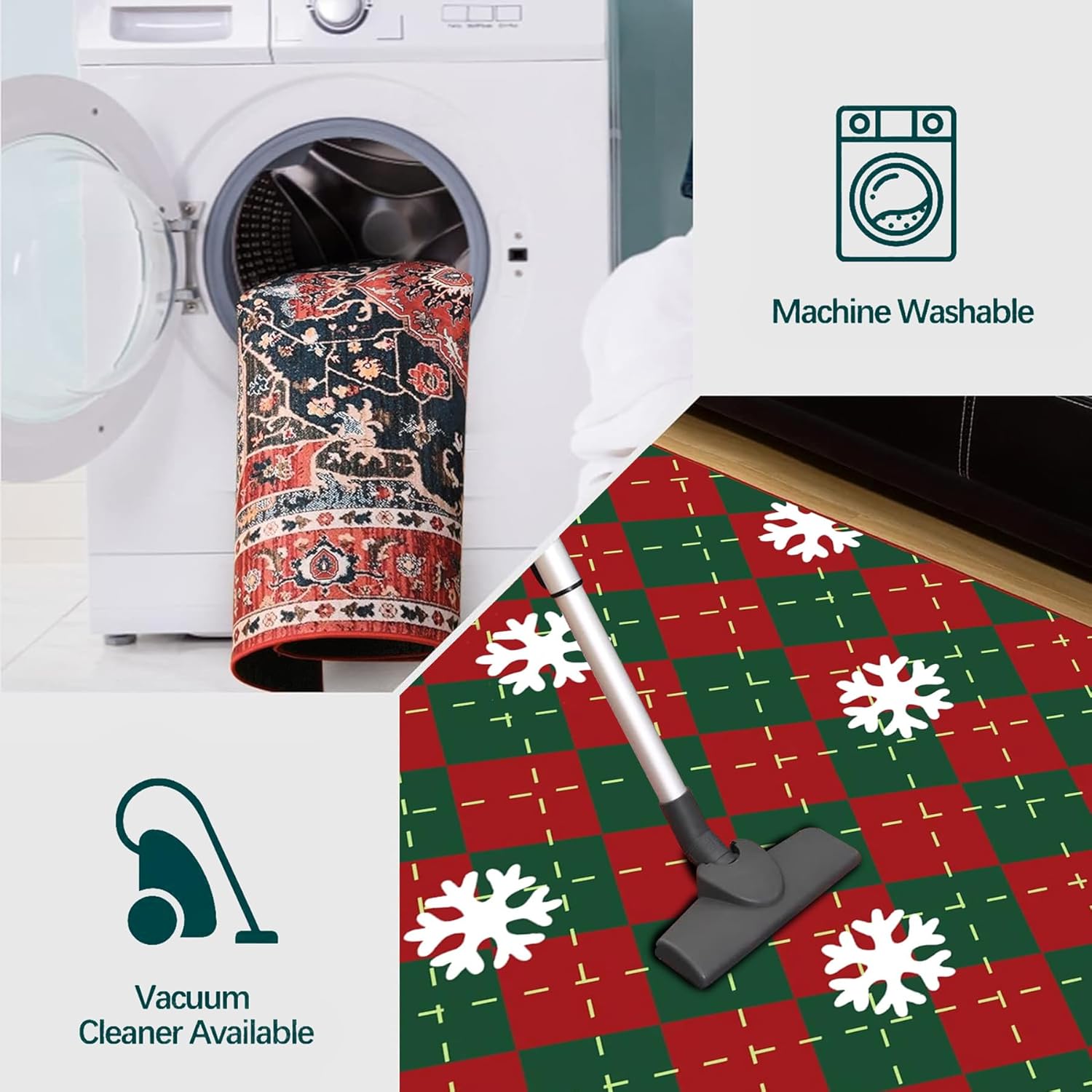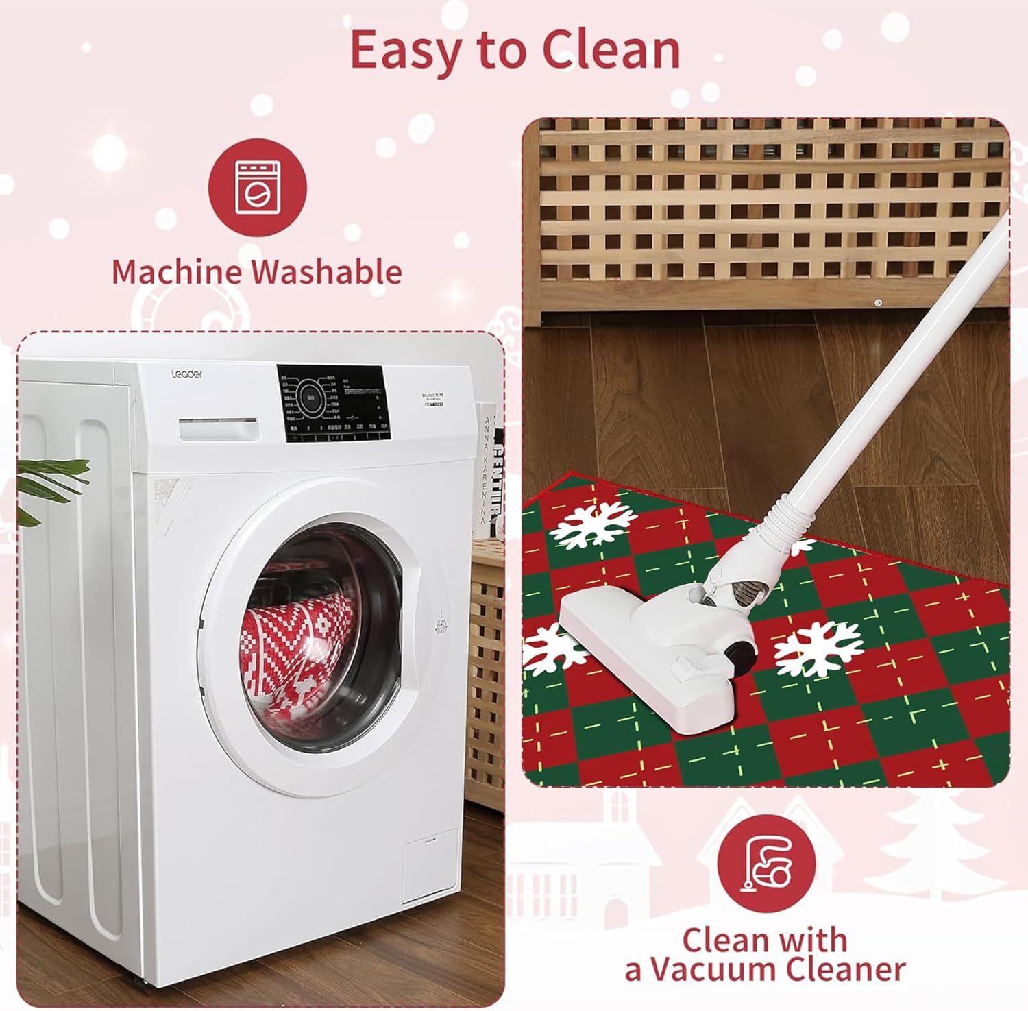 🎅【Duradero y fácil de limpiar】Hecho de artesanía de alta calidad, antideslizante y a prueba de humedad, aislamiento acústico y resistente al desgaste. Al mismo tiempo, la alfombra de Navidad también es muy resistente a las manchas y fácil de limpiar. Solo necesita aspirarse todos los días para mantenerlo limpio. Después de un uso prolongado, se puede lavar a máquina con agua de lavado a no más de 30 grados, evitar la luz solar directa y se puede utilizar durante más tiempo.
