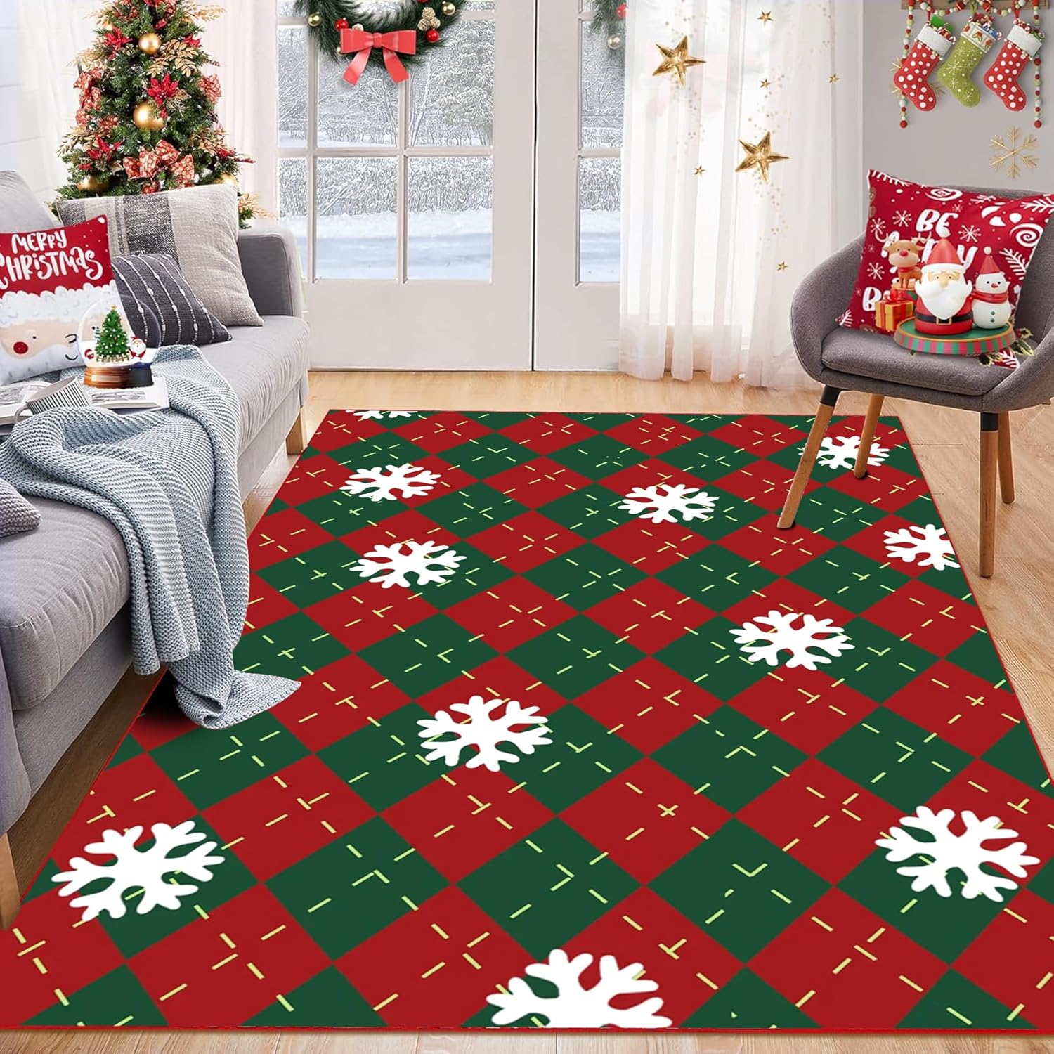 🎄【Decoración navideña】El tamaño del felpudo de Navidad es de 5 x 8 (aprox. 243.8 cm), 60 x 96 (aprox. 243.8 cm), impresión y teñido a alta temperatura, no se decolora fácilmente, con patrones clásicos navideños de colores brillantes, que harán que tu casa se vea nueva en Navidad y traerá un fuerte ambiente navideño, lo que te permite sumergirte en la calidez y alegría de la Navidad.