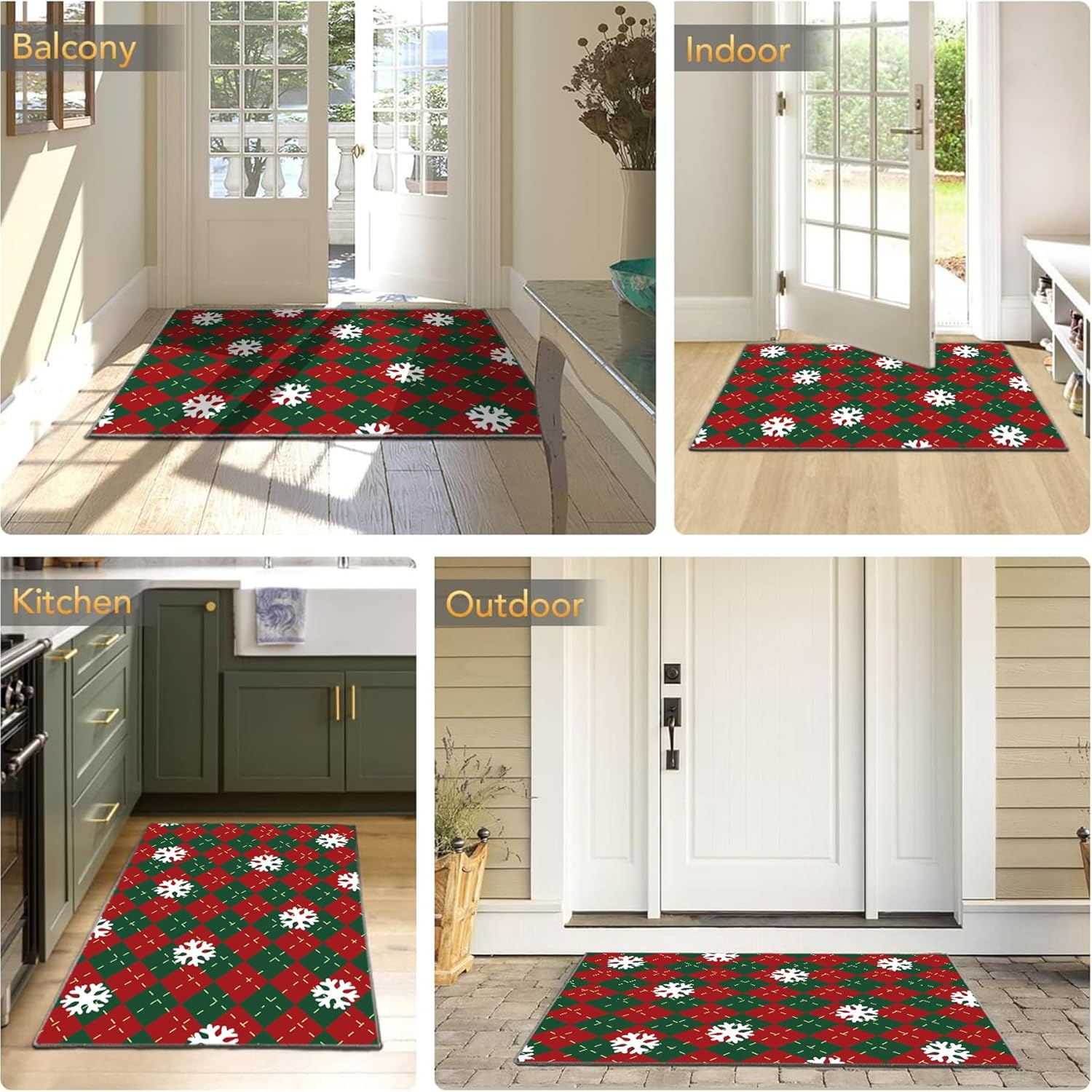 🏠【Ampliamente aplicables】Nuestras alfombras de Navidad son ampliamente utilizadas en interiores y exteriores, es una alfombra de Navidad ideal para colocar en dormitorios, salas de estar, cocinas, comedores, pasillos, baños, balcones, entradas de patio. También es adecuado para ser colocado en suelos de mármol y madera, y es un tema de Navidad, Año Nuevo y decoración de ambiente temático de fiesta.