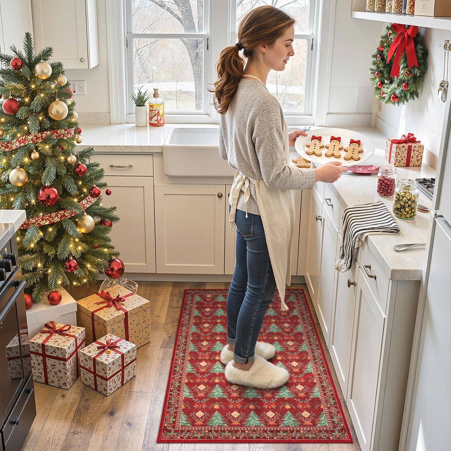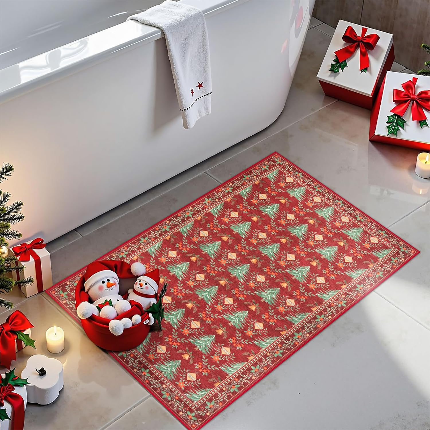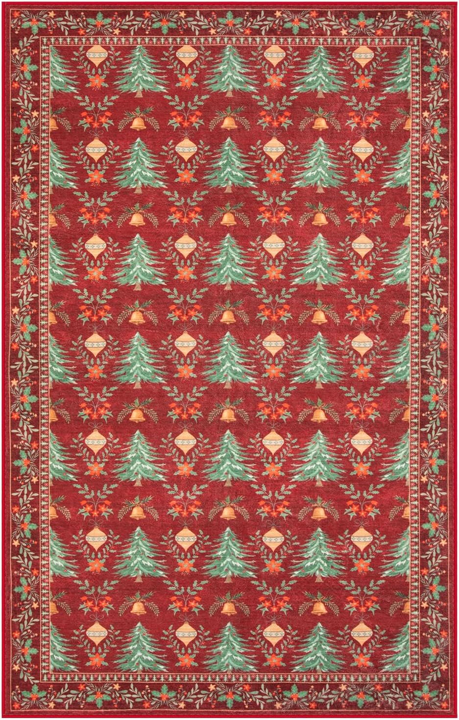 [Ultra suave y cómoda]: hecha de fibras de lana artificiales, la alfombra Yuemasi ofrece una textura de lujo que se siente acogedora y suave bajo los pies, adecuada para las vacaciones y más allá en los acogedores meses de invierno. El patrón es tan festivo con árboles, campanillas pequeñas y adornos. Y el diseño vibrante añade un toque alegre a tu decoración navideña